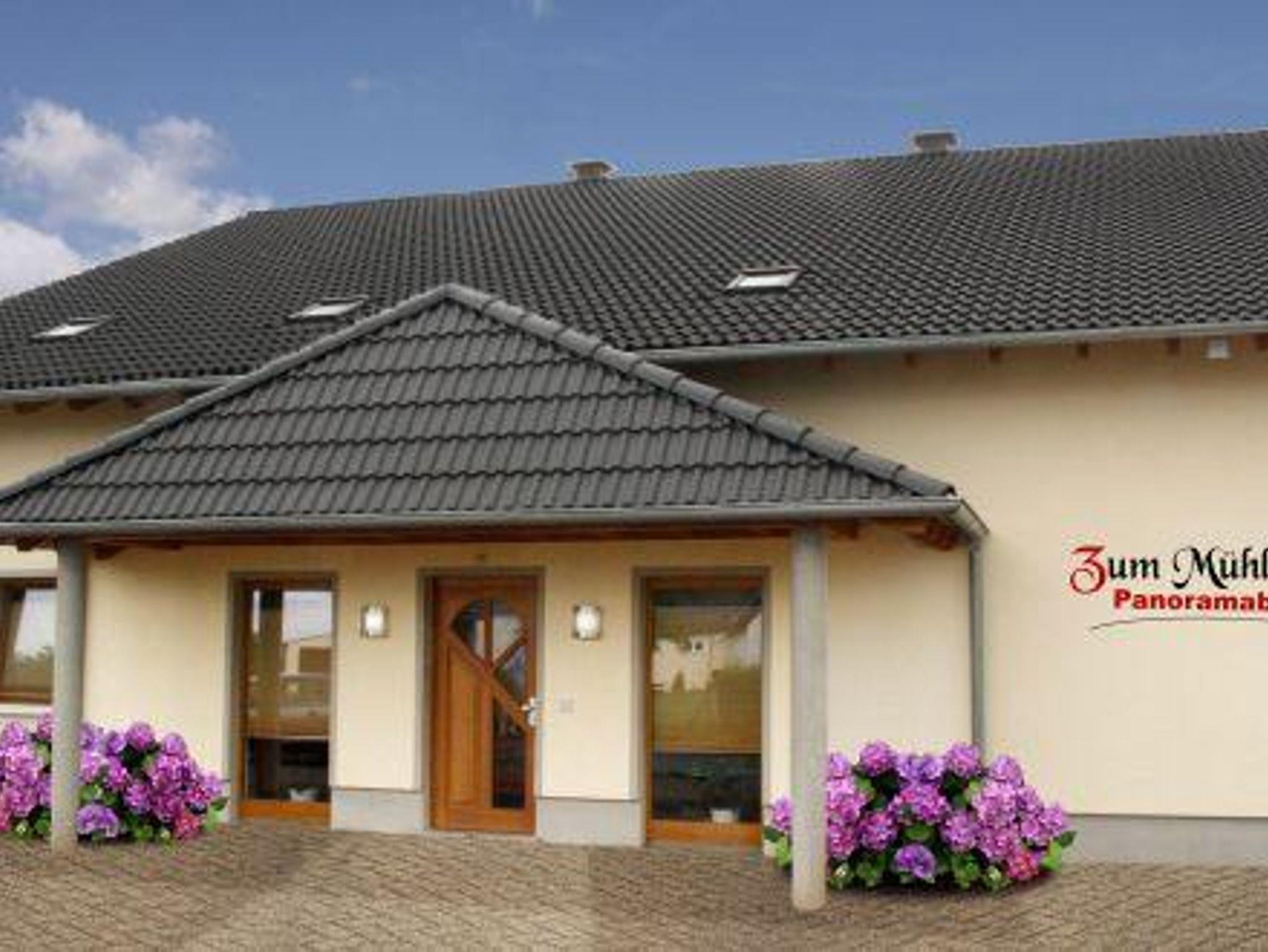 In unserem modernen Ferienhaus finden Sie in familiärer Atmosphäre Ruhe und Erholung. Wir bieten Ihnen 4 großzügig ausgestattete Wohnungen von je 65qm an. In der 1. Etage finden Sie auch ein Spielzimmer. Ein eigenes Restaurant befindet sich ca. 150 m vom Haus Panoramablick entfernt. Bettwäsche und Handtücher sind vorhanden. Die Buchung einer Halbpension ist möglich. Kostenlose Parkplätze finden Sie direkt am Haus. Wenn Sie möchten, holen wir Sie vom Flughafen Hahn, Bahnhof oder Bushaltestelle ab.