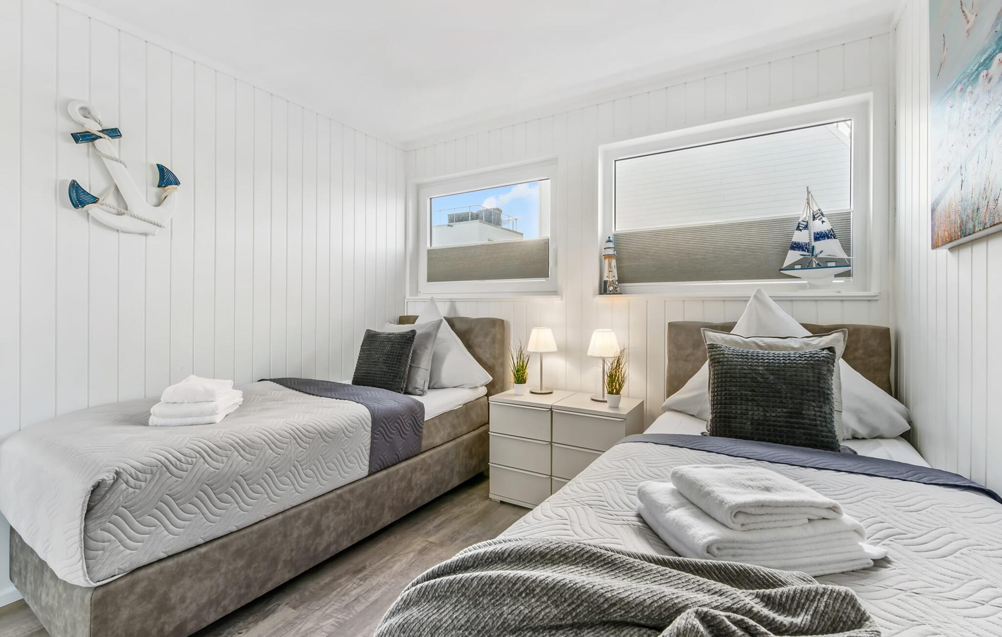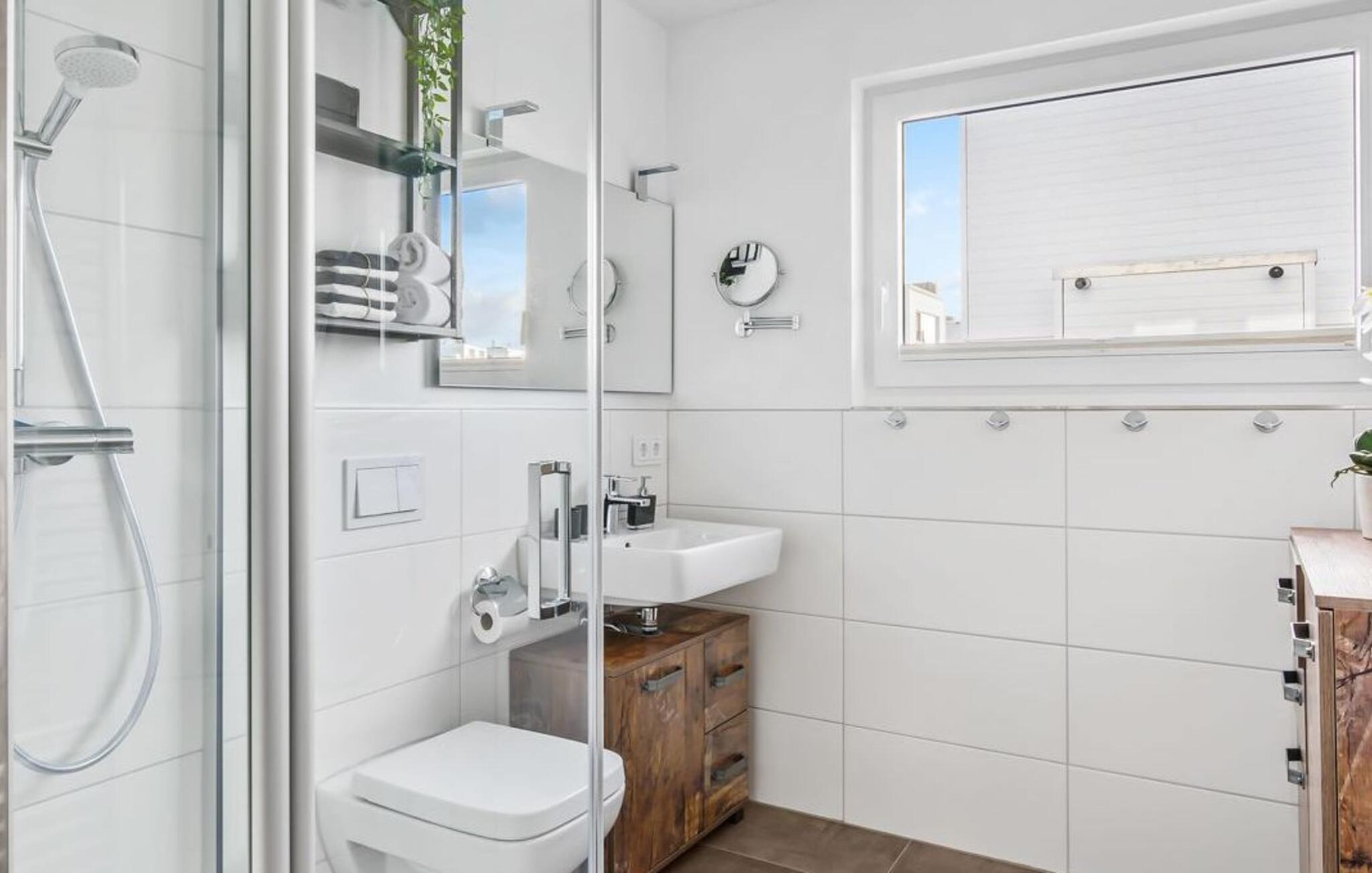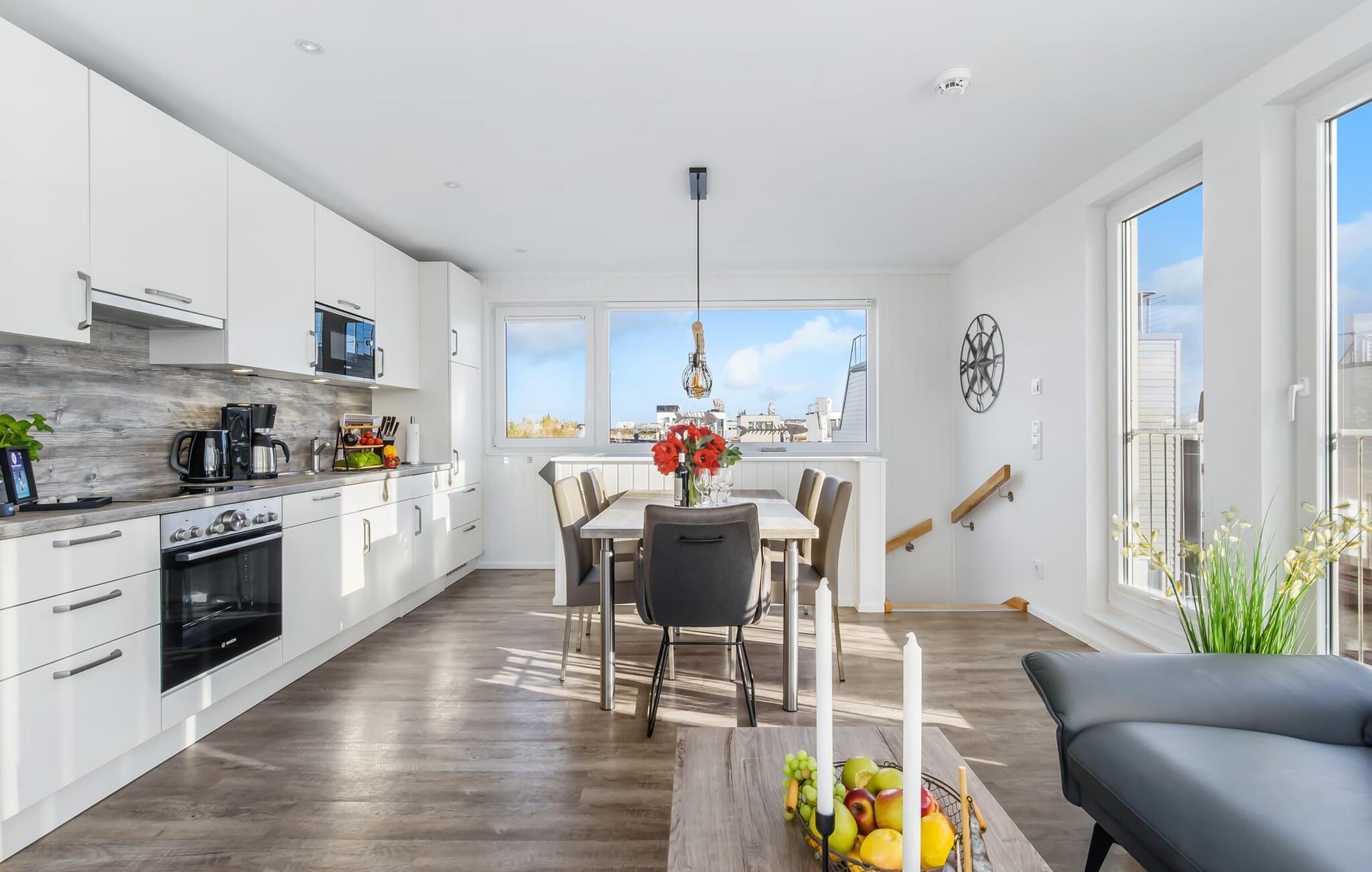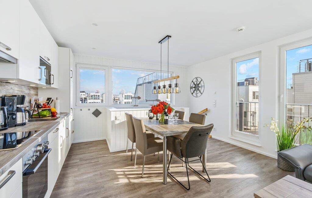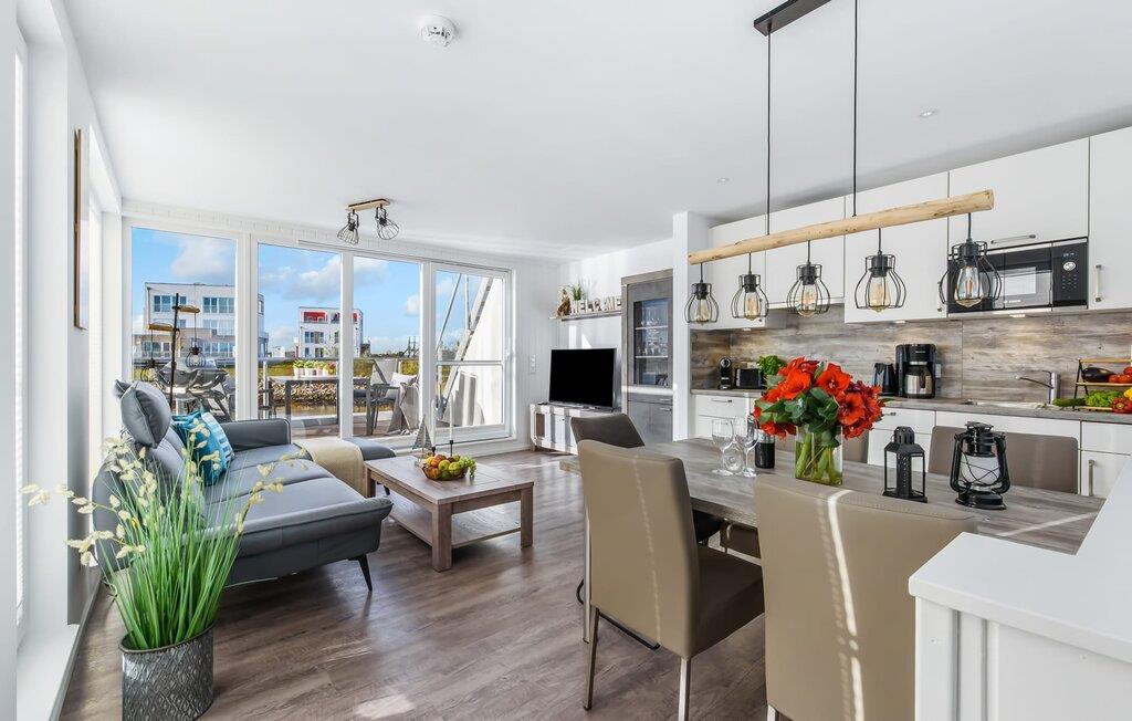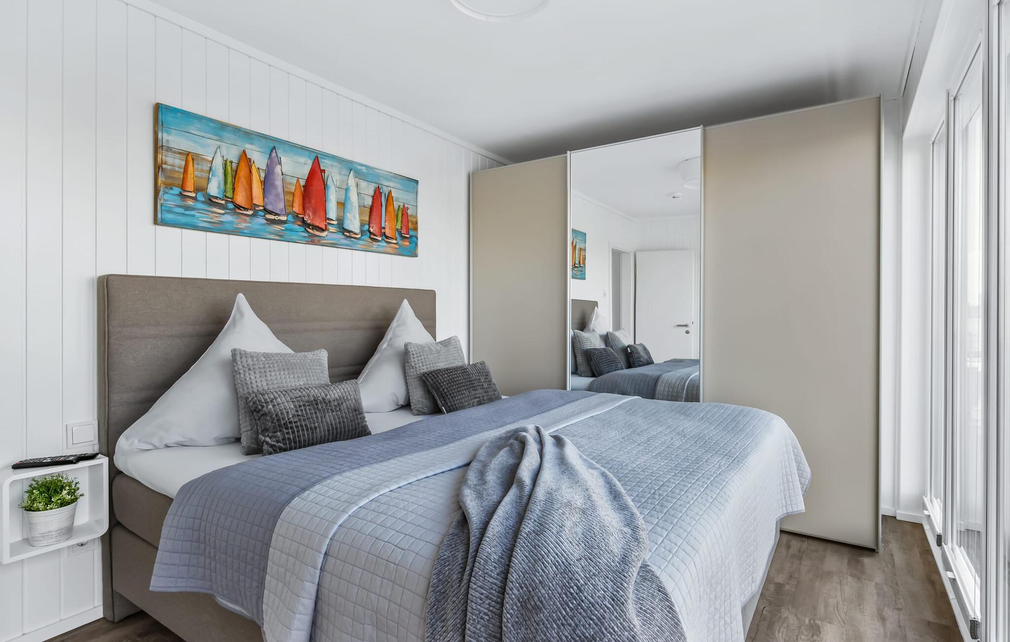 Det er svært at forestille sig SlesvigHolsten uden måger, og ingen ved med sikkerhed, om der faktisk var en mågered på det flydende hus MÖWENNEST... Det flydende hus MÖWENNEST har meget mere luksus at byde på end en rigtig mågered. Tre terrasser i tre forskellige niveauer og en privat bådplads lige ved siden af huset er blot nogle af højdepunkterne. jeres parkeringsplads er placeret direkte ved anløbsbroen og kun få meter fra ferielejligheden. Brug den tilgængelige håndkærre og rul jeres bagage ind i denne drømmende ferieidyl. Stueetagen er så at sige wellness-området på MÖWENNEST. Her ligger de to soveværelser, som begge er udstyret med boxmadrasser. I har valget mellem en dobbeltseng med TV og udgang til den første terrasse. Her kan I slappe dejligt af både inden I går i seng og efter at være vågnet. Eller I kan vælge de to enkeltsenge. Her er også et tv. Bruserummet med brusebad i gulvniveau og stort vindue lader intet tilbage at ønske, og den finske sauna overfor forkæler jer med øjeblikke af velvære i hver sæson. Gå op ad trappen til første sal, og en lille drøm venter dig: oversvømmet med lys og et vandpanorama fra hvert vindue, der får jer til at holde pause. Denne moderne stue/spisestue af høj kvalitet med inkluderet tekøkken tilbyder alt hvad I behøver for en afslappet og afslappende ferie. Perfekt køkkenudstyr, en komfortabel spiseplads og et indbydende hyggehjørne med fjernsyn omgivet af gulv til loft vinduer. Havet virker ikke. Åbn derefter skydedøren og gå ind på endnu en terrasse, som indbyder til hyggelige aftener med stilfulde udendørsmøbler og grill. Man skulle tro, at det ville være nok med hensyn til komfort, men MÖWENNEST tilbyder endnu mere. Ved at bruge den udvendige trappe på den anden terrasse kan I nå tagterrassen med en 360 graders panoramaudsigt over Slien, Østersøen og feriestedet Olpenitz ved Østersøen. Det er virkelig overvældende og en ferieoplevelse, som I sent vil glemme. Og strandstolen af høj kvalitet inviterer jer til at blive hængende, forundre, se og give slip. Vores yndlingssted: helt klart strandstolen på tagterrassen! Bemærk venligst: OstseeResort Olpenitz er meget populært, og der bygges fortsat i parken. Ikke desto mindre kan I se frem til en 5-stjernet standard og et førsteklasses ophold. Byggeaktiviteterne kommer ikke til at forstyrre jer på ferien, og derfor gives der ikke yderligere afslag i prisen.