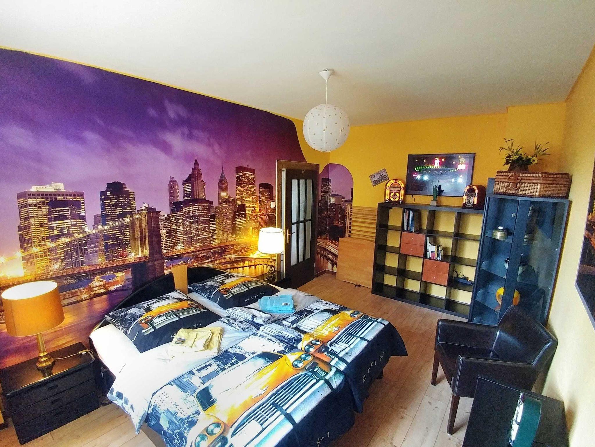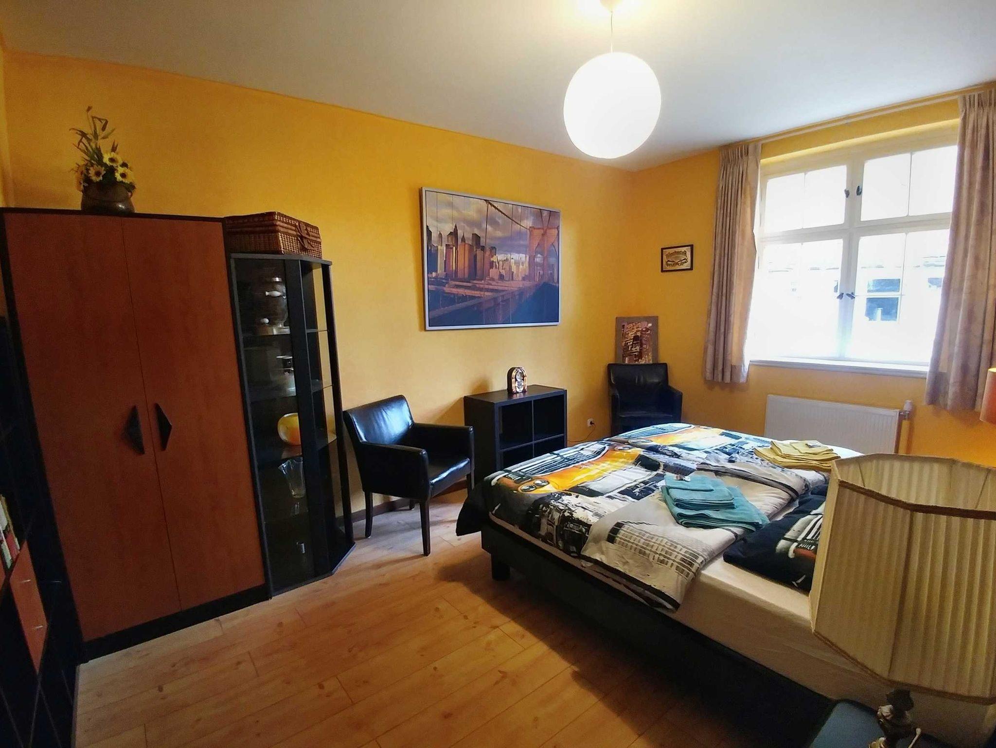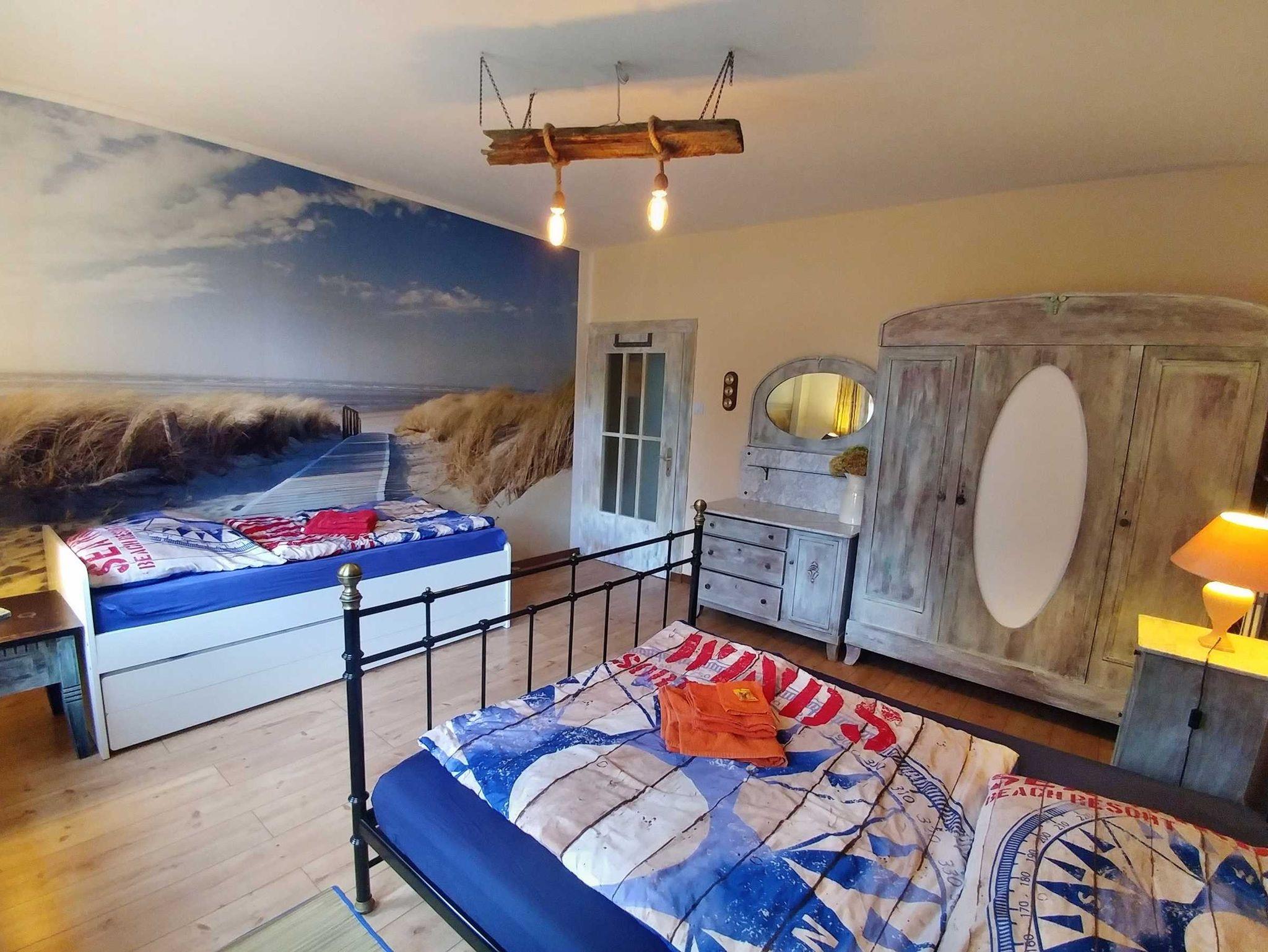 Das Große Schlafzimmer verfügt über ein Doppelbett (1,8x2m) und ein ausziehbares Kojenbett 2x (1x2m), einen 3teiligen Kleiderschrank, eine Frisierkomode sowie Nachschränkchen mit Lampen an allen Betten.