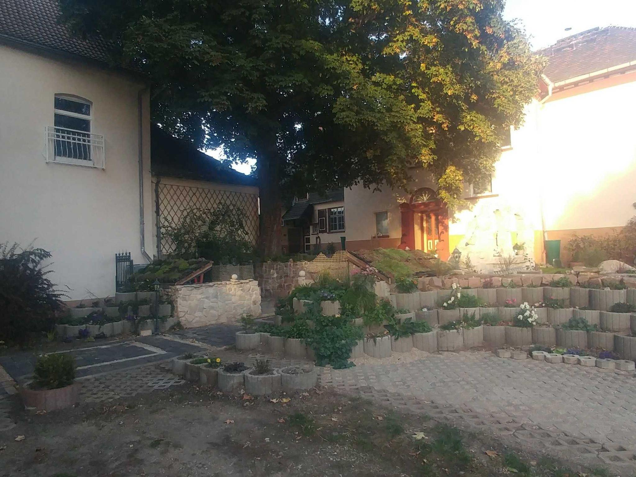 Das Grundstück bietet mit zwei Terrassen (möbiliert) und dem alten Schulhof jetzt Garten auch genügend Spielfläche für Kinder. Parkmöglichkeiten stehen auf dem Grundstück ebenfalls zur freien Verfügung.