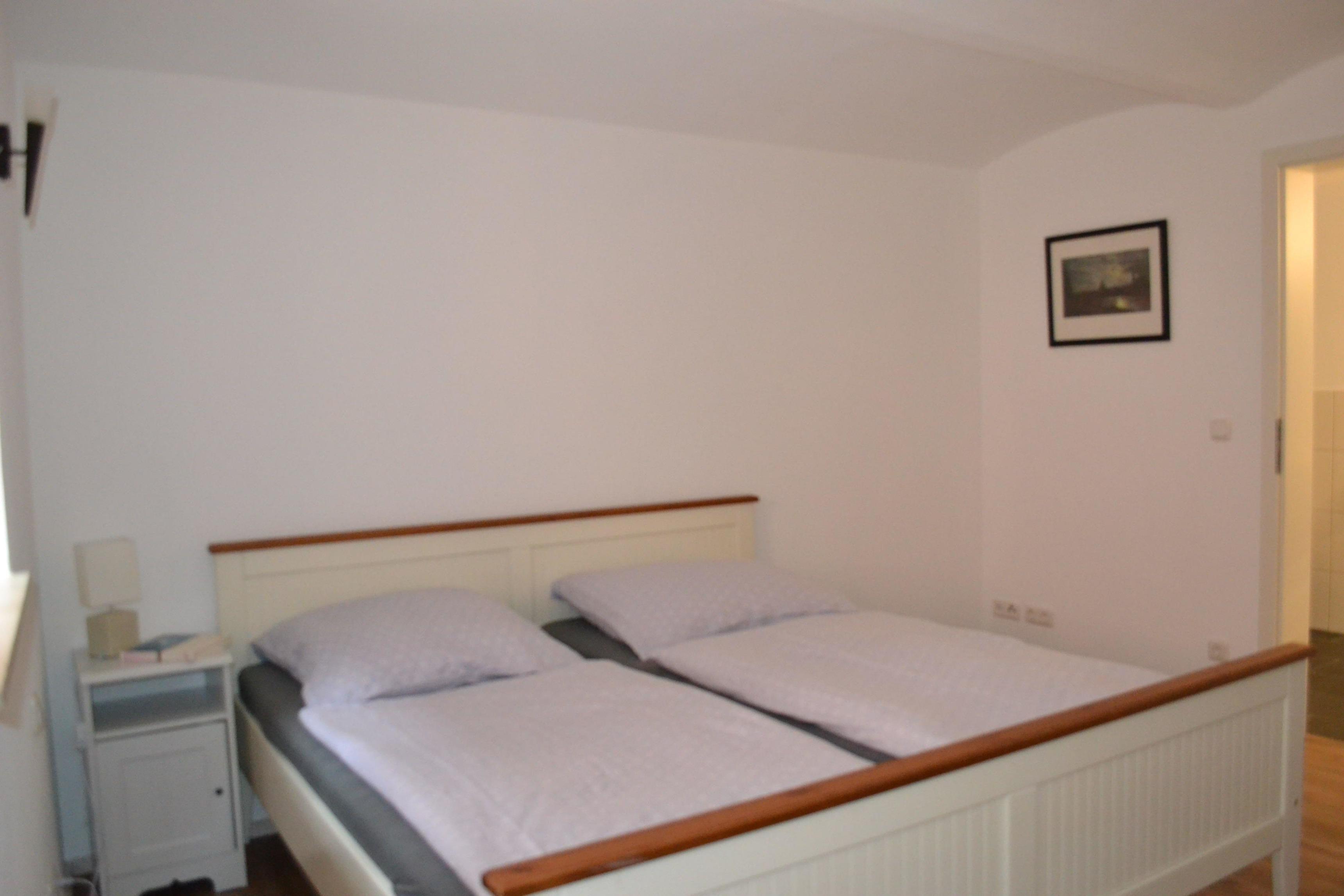 Ein großes Doppelbett mit 1,80 Breite befindet sich im Schlafzimmer, mit direkt anschließendem Duschbad mit WC. Ein separates Gäste WC ist vorhanden. Die Wohnküche ist voll ausgestattet. Ein Kinderbett und ein Hochstuhl kann bei Bedarf zur Verfügung gestellt werden. Die Wohnung besitzt Fußbodenheizung.