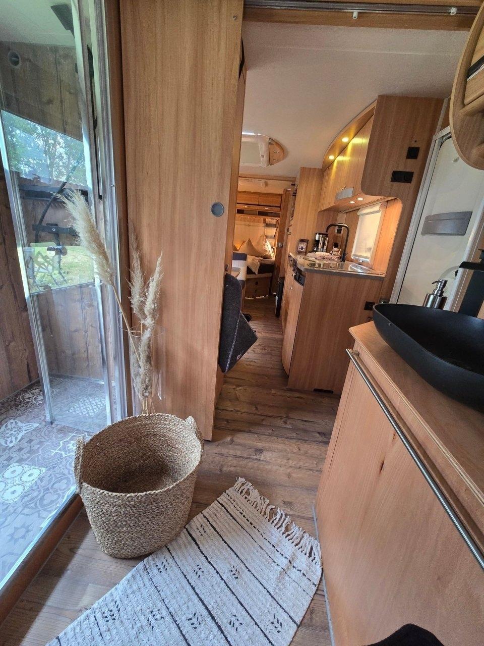 Der Wohnwagen ist ein Objekt unserer Rosenzauber Ferienwohnungen mit 5-Sterne-Zertifizierung. Wir legen höchsten Anspruch auf absolute Hygiene und Sauberkeit. Winterurlaub ist ebenfalls möglich und sehr romantisch. Der Wohnwagen kann beim Schlaf- und Badbereich abgetrennt werden.
