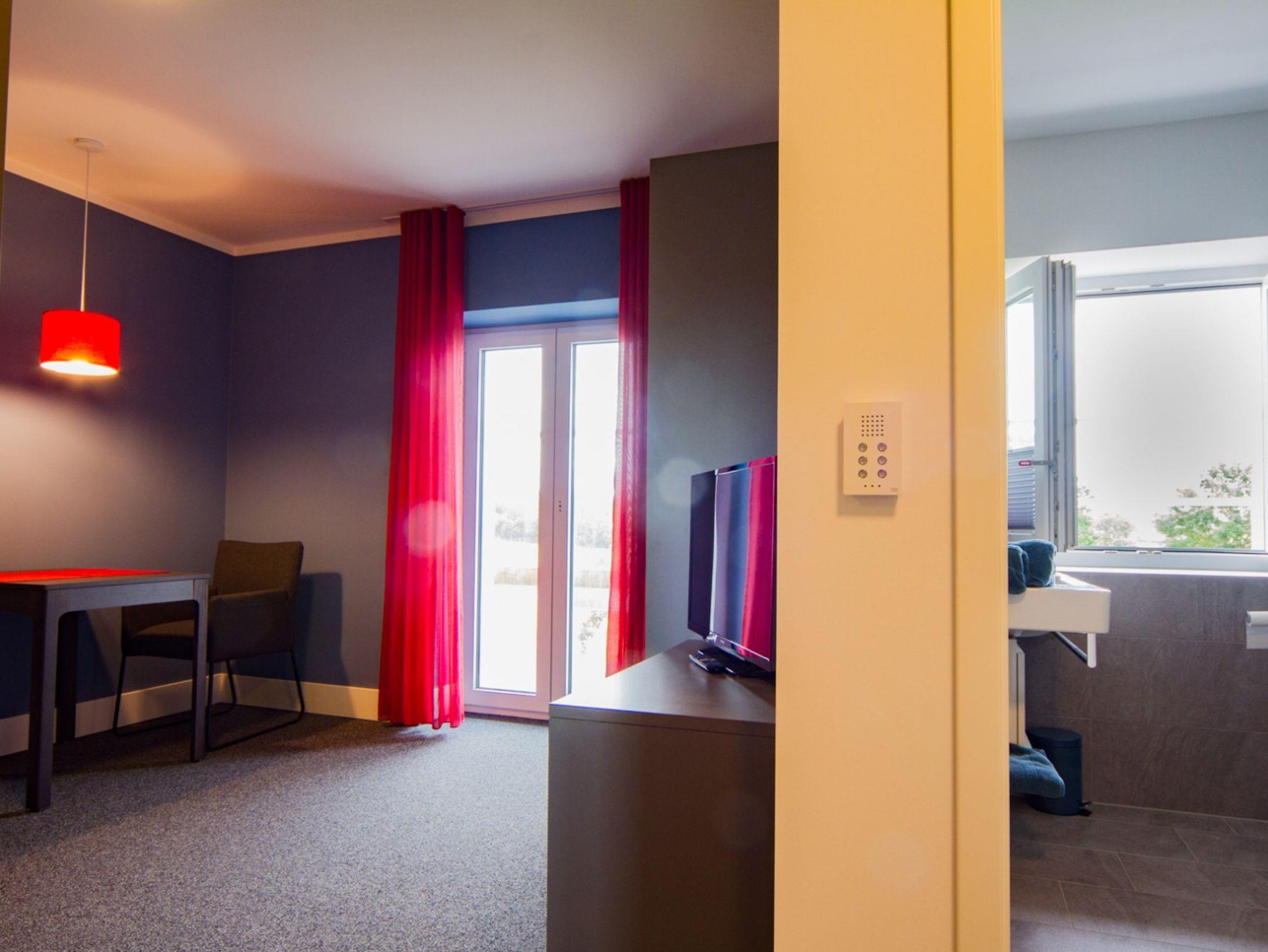 Das Appartement (Größe 23 qm) ist modern, zeitlos und mit einem Boxspringbett (100 x 200 cm), Dusche & WC, einer Küchenzeile (Teller, Besteck, Töpfe, Kaffeemaschine, Wasserkocher, sons. Küchenutensilien), Kühlschrank, SAT-TV ausgestattet und befindet sich im 1.Stock. WLAN ist kostenlos verfügbar.