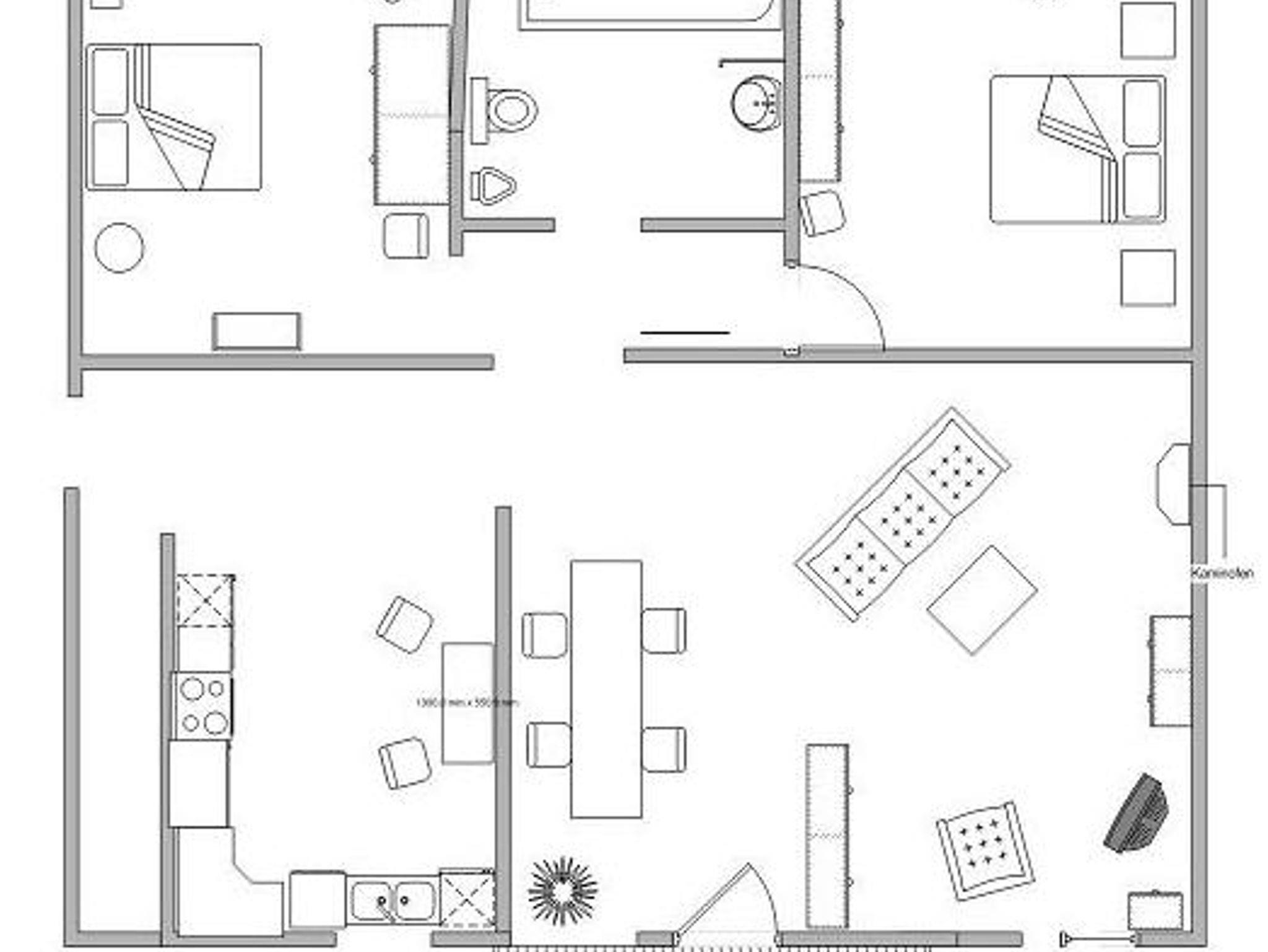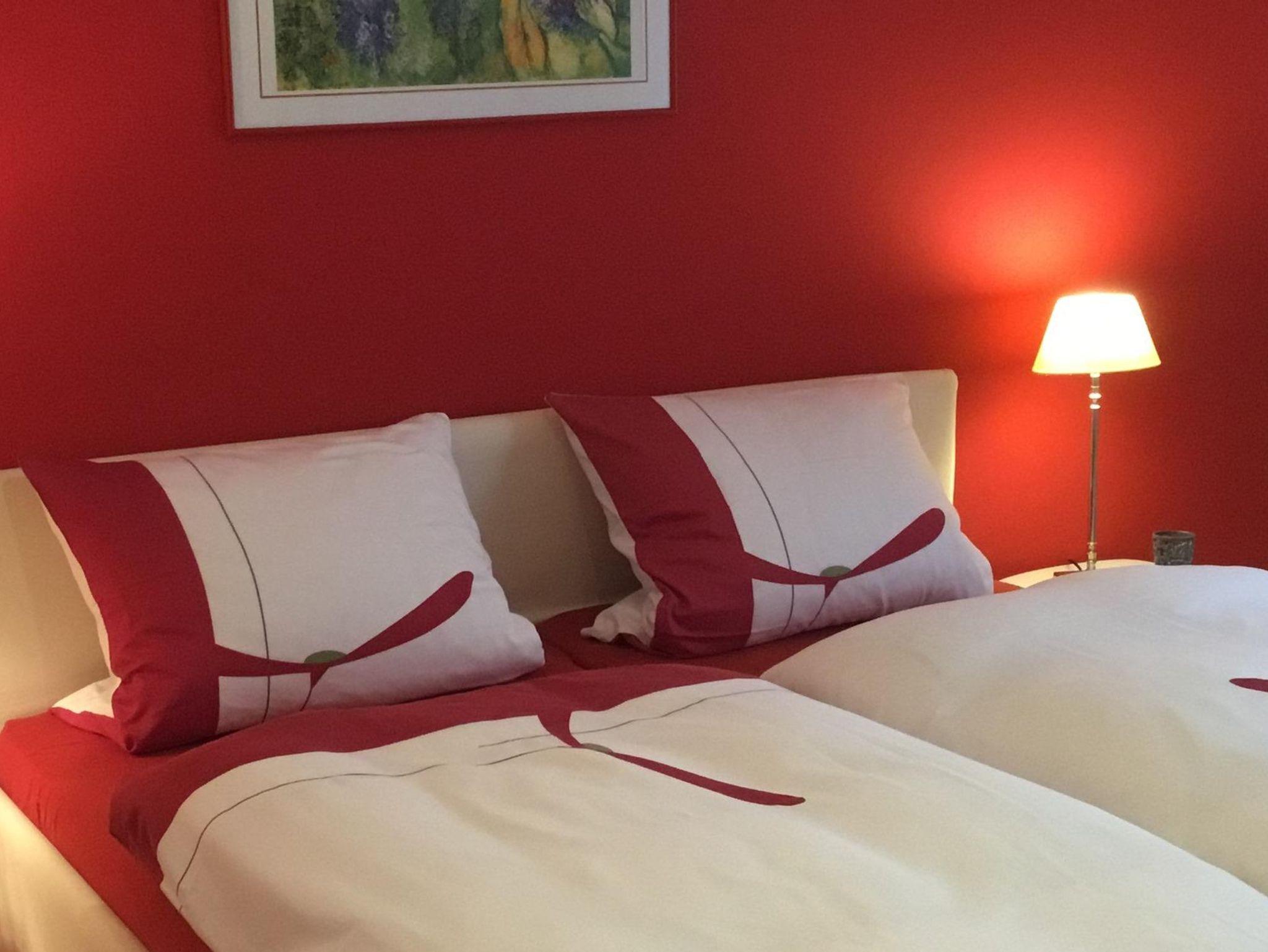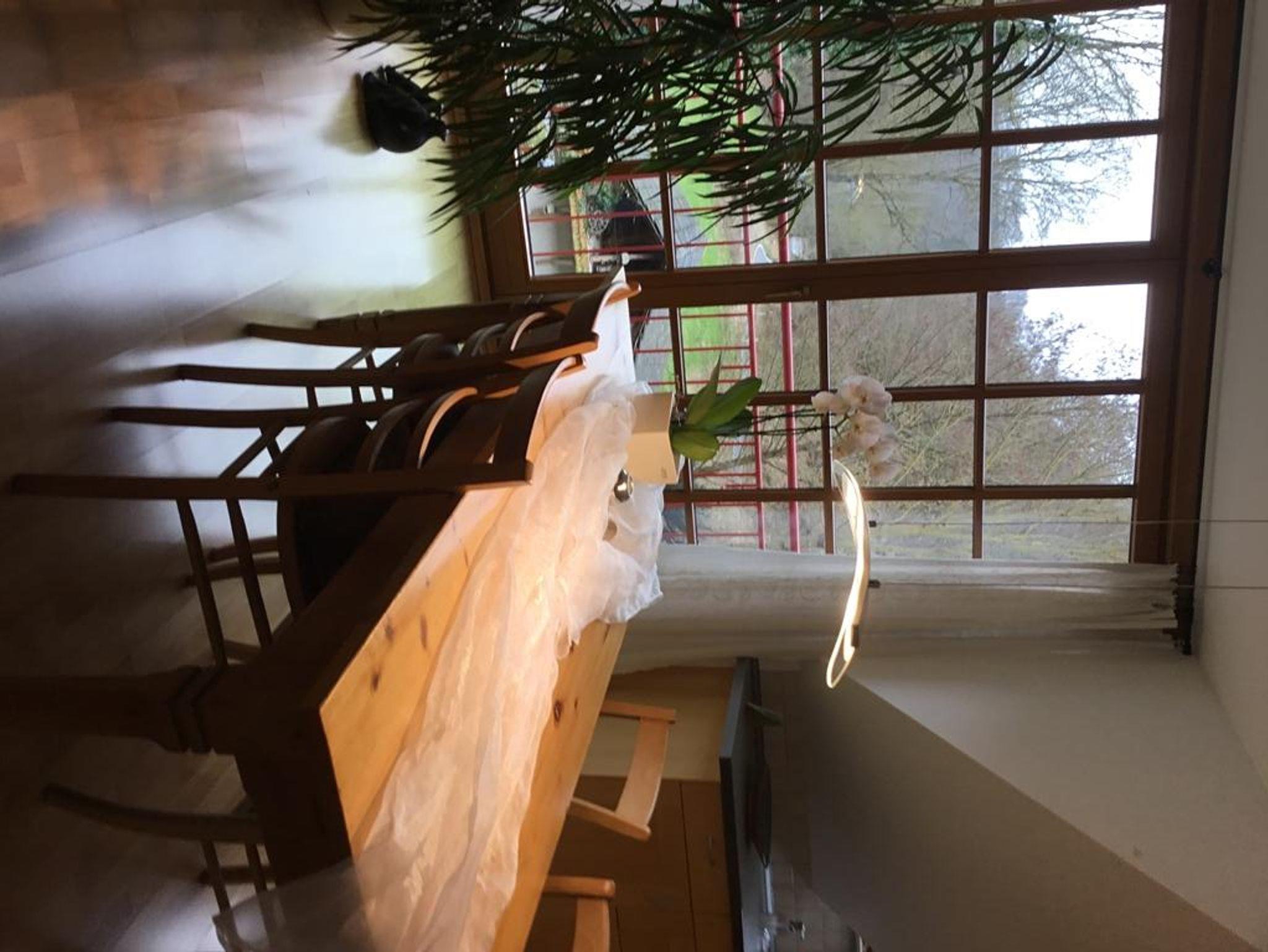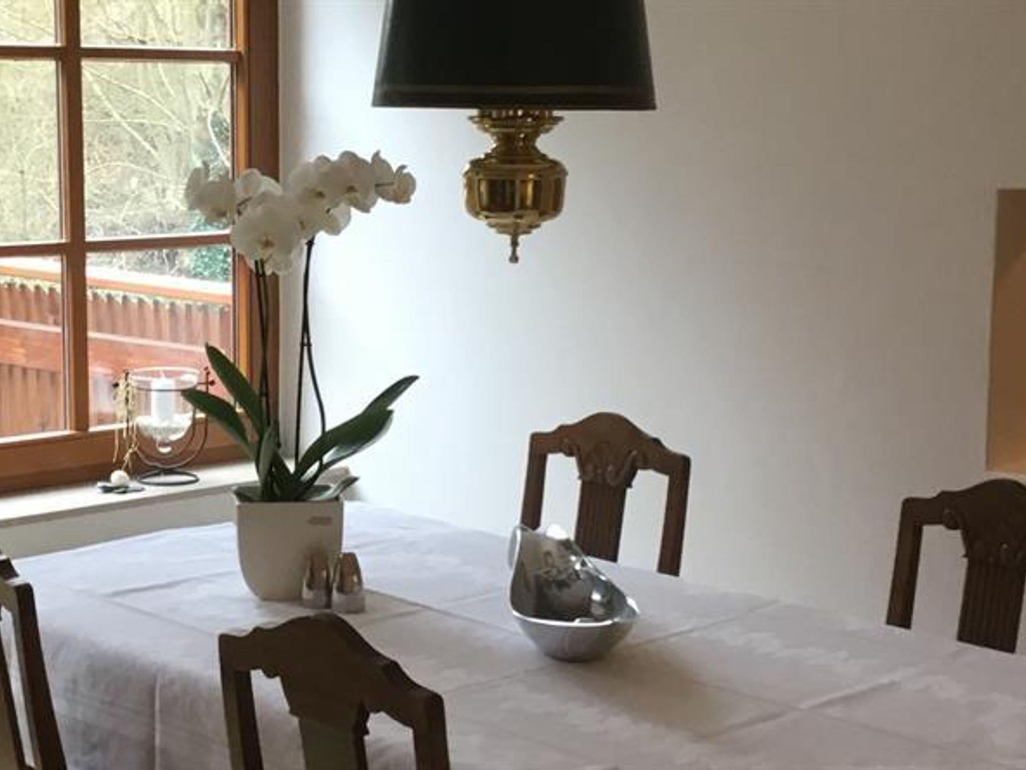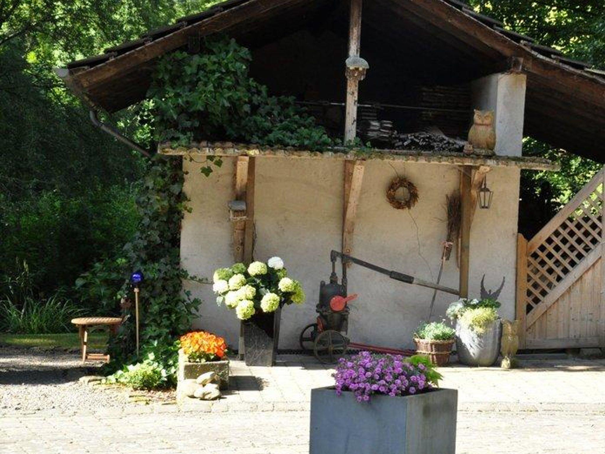 2 Schlafzimmer (Bettgröße: L200 x B180 und L200 x B180); bei Belegung eines Doppelschlafzimmers mit nur einer Person, erheben wir einen EZ-Zuschlag von 3,-- € p.P./ÜN. Großzügiger Wohn-/Essbereich mit Einbauküche, Kühlschrank mit 3-Sterne Kühlfach, Spülmaschine, Zerankochfeld, Backofen, Kaffeemaschine, Toaster, Wasserkocher, Eierkocher, Handrührgerät, Bad mit Badewanne/Dusche, WC, Fön und Kosmetikspiegel, Kaminofen (In den Monaten April - August geht der Ofen aus; er nimmt seinen Sommerurlaub!) Flachbildschirm HD (SAT-TV), DVD-Player, DVDs, Radio, Telefon (Festnetzanschluss), reichhaltiges INFO-Material zur Region, Benutzung von Waschmaschine und Trockner in separatem Wirtschaftsraum möglich, französischer Balkon, Naturgarten mit Bach, Freiflächen im Innenhof, Bachlauf direkt am Mühlengrundstück