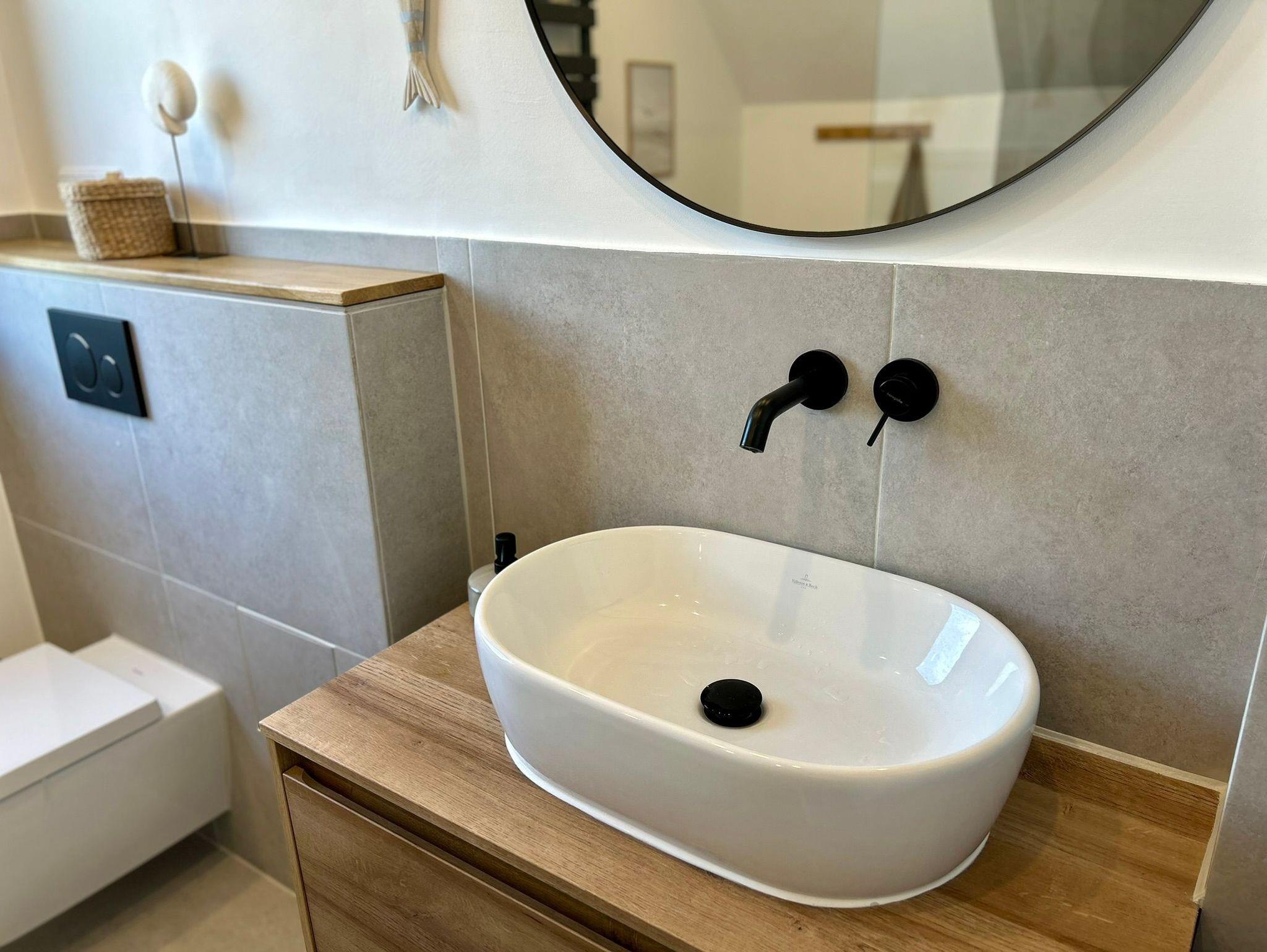 - Duschbad mit ebenerdigem Duscheinstieg und Regendusche, WC, Waschbecken, Spiegel, Föhn; Wäschepaket zubuchbar