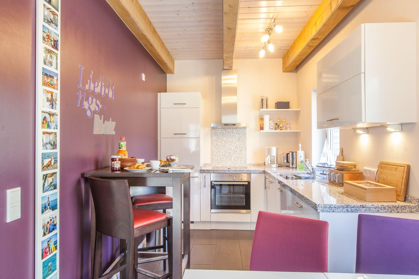 In der geschmackvollen Küche können Sie Ihre Gerichte zubereiten und im anliegenden Esszimmer zu sich nehmen.