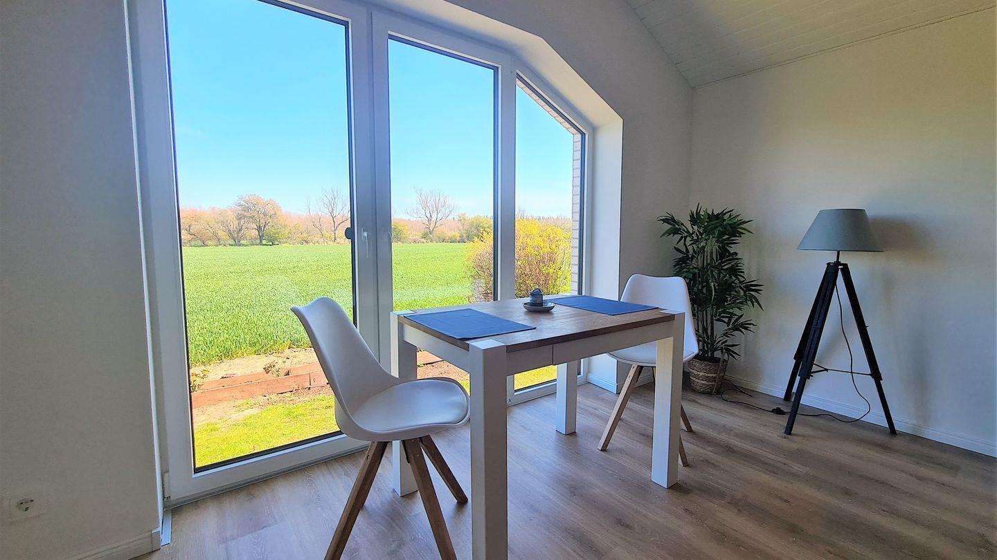 Vom großzügigen Wohn-und Essbereich haben Sie einen traumhaften Blick über das Feld und auf das Wäldchen, hinter dem sich direkt der Ostseestrand befindet. Der Besuch von Rehen und Hasen ist hier garantiert und lässt Sie immer wieder staunen, wie schön doch unsere Natur ist.