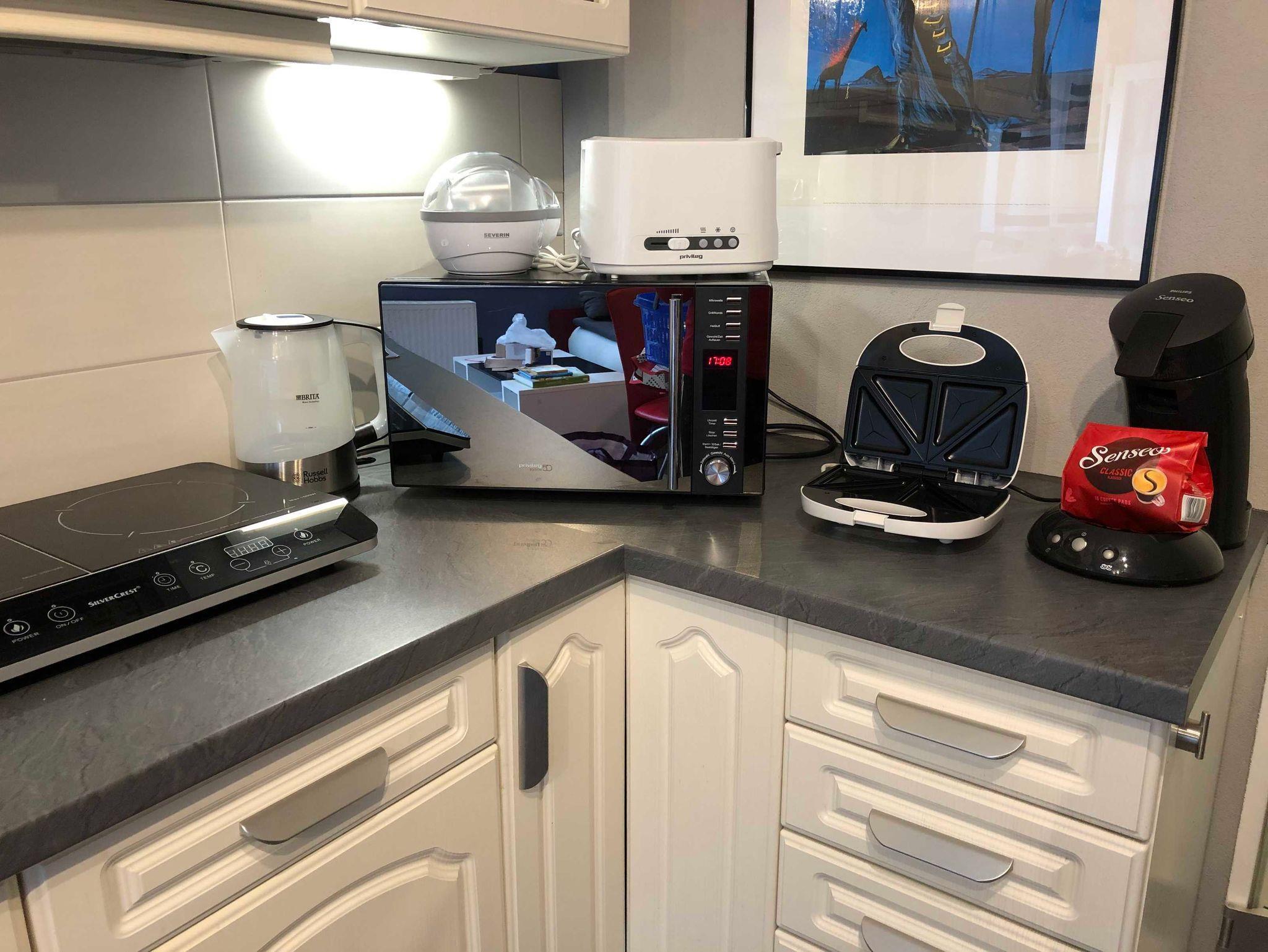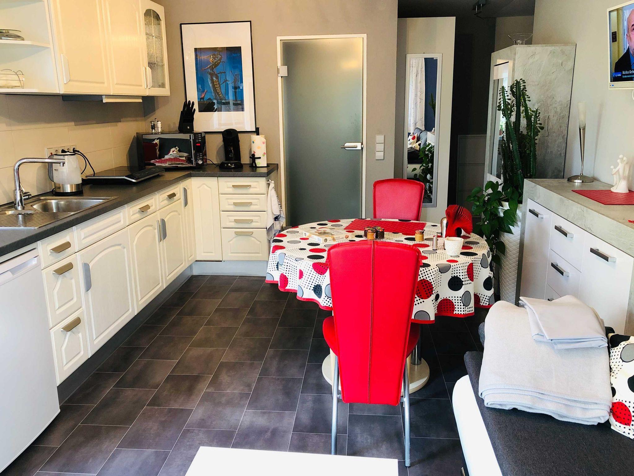 Die komfortable Küche ist komplett eingerichtet mit allem was man braucht. Wir begrüßen unsere Gäste mit einer gefüllten Obstschale, im Sommer ersatzweise mit Eiscreme, gekühlten alkoholfreien Getränken, selbstgemachte Marmelade und für ein süßes Betthupferl ist auch gesorgt. Unser Essbereich ist für bis zu 4 Personen gemütlich integriert.