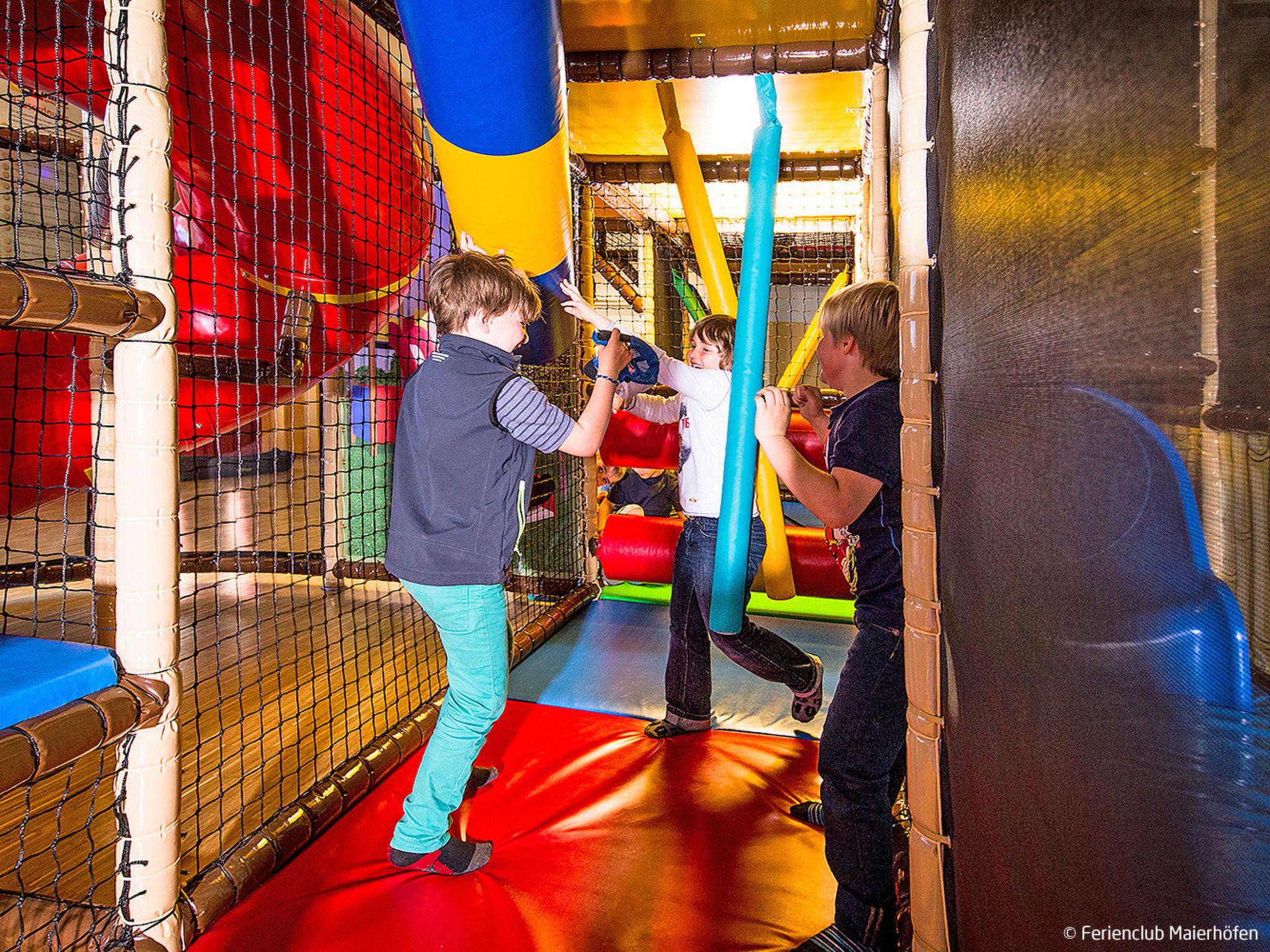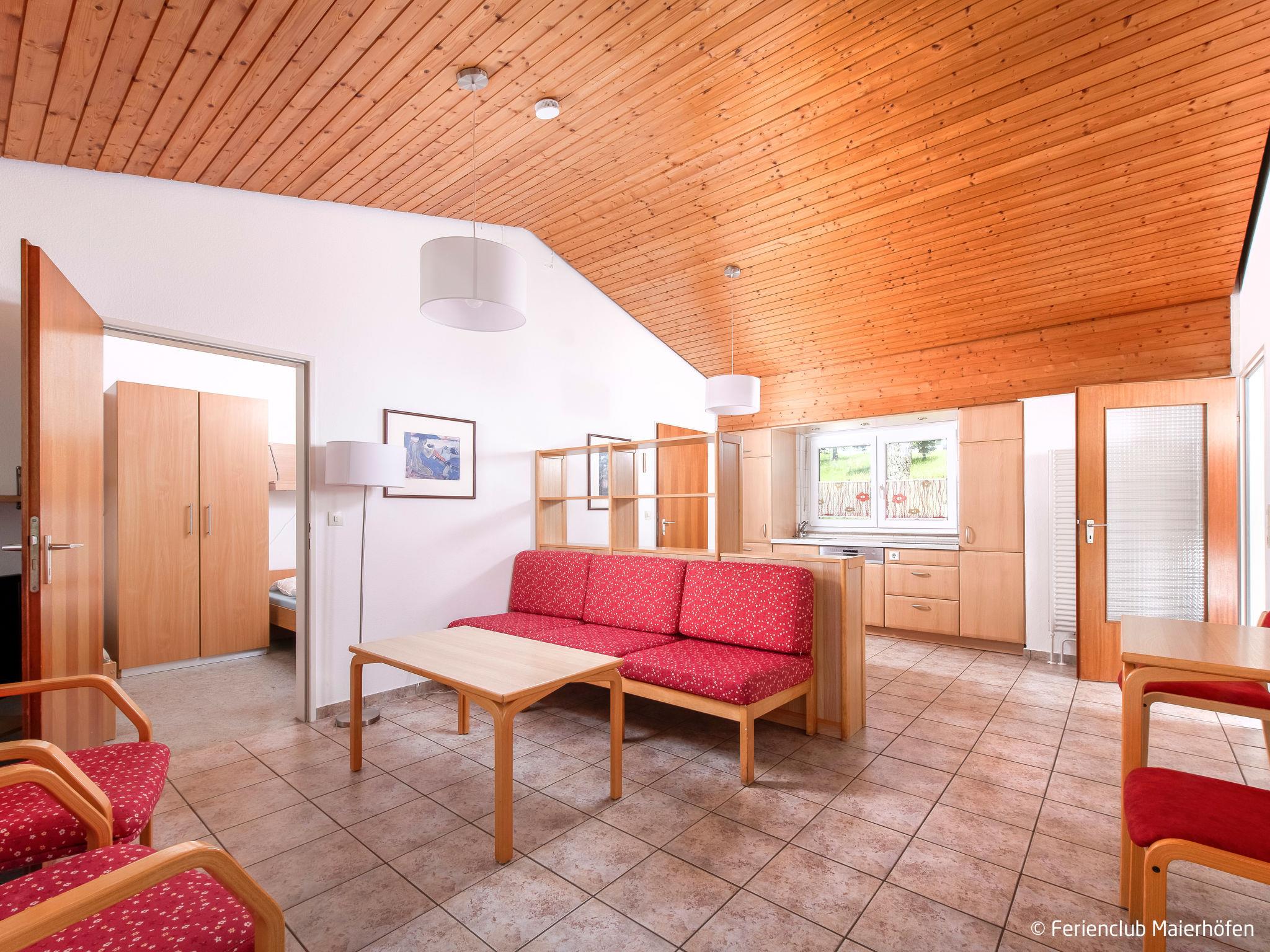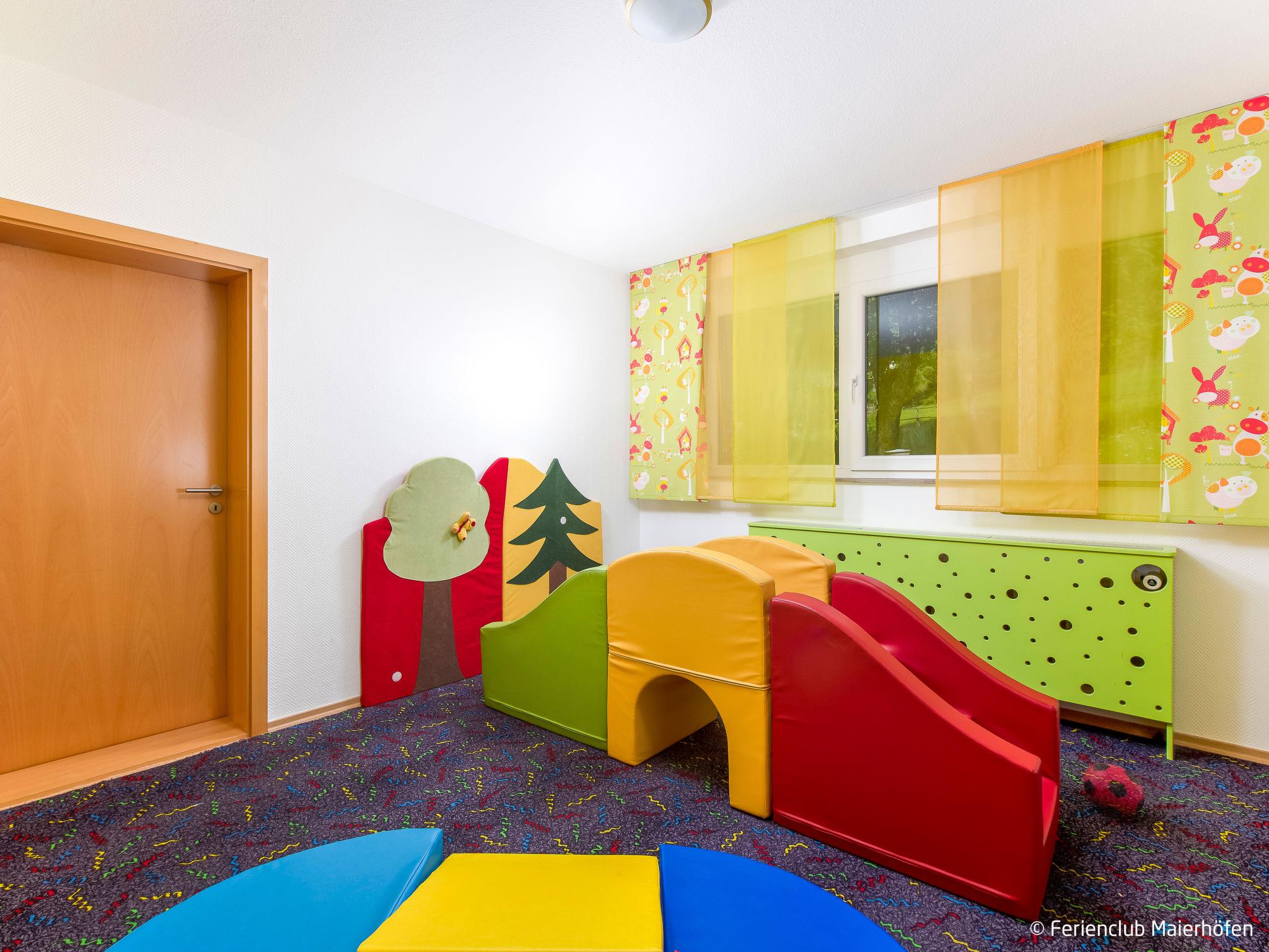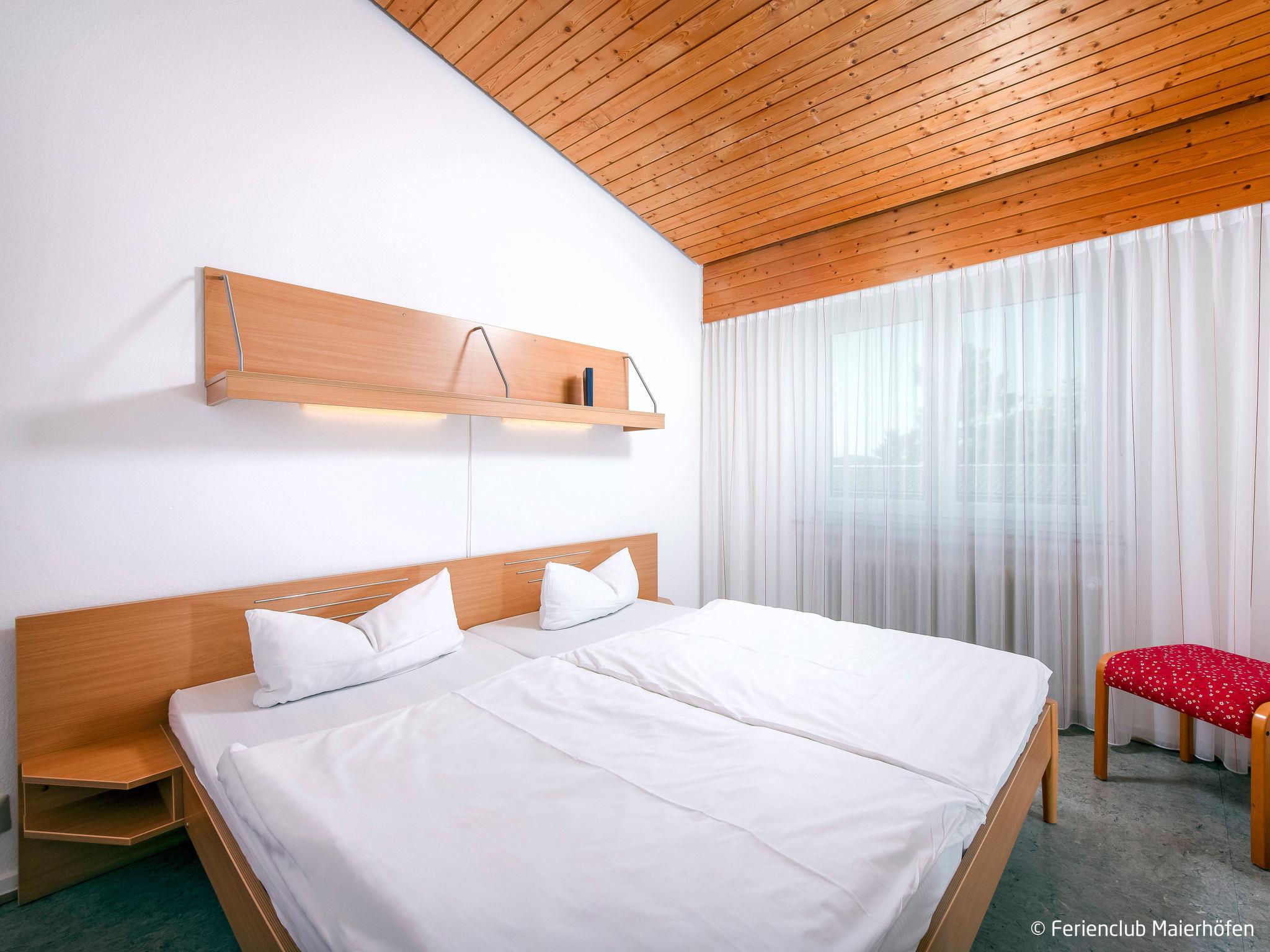 Child friendly resort "Ferienclub Maierhöfen". 115 apartments in the residence. 1.5 km from the centre of Maierhöfen, on the outskirts, on a slope. For shared use: property 45 ha, indoor pool (25 x 10 m, depth 190 cm). Children's pool, table tennis, basketball, beach volleyball, barbecue, children's playground. In the complex: reception, restaurant, bar, sauna (extra). Steam room (extra). Billiard table, table football, washing machine (extra), tumble dryer (for shared use, extra). Breakfast and half board possible (extra). Footpath to the house. Central parking spaces. Bus stop "Maierhöfen Ferienzentrum" 500 m. Please note: suitable for families. Loading and unloading of baggage is possible at the holiday house. The photograph shows a typical example.