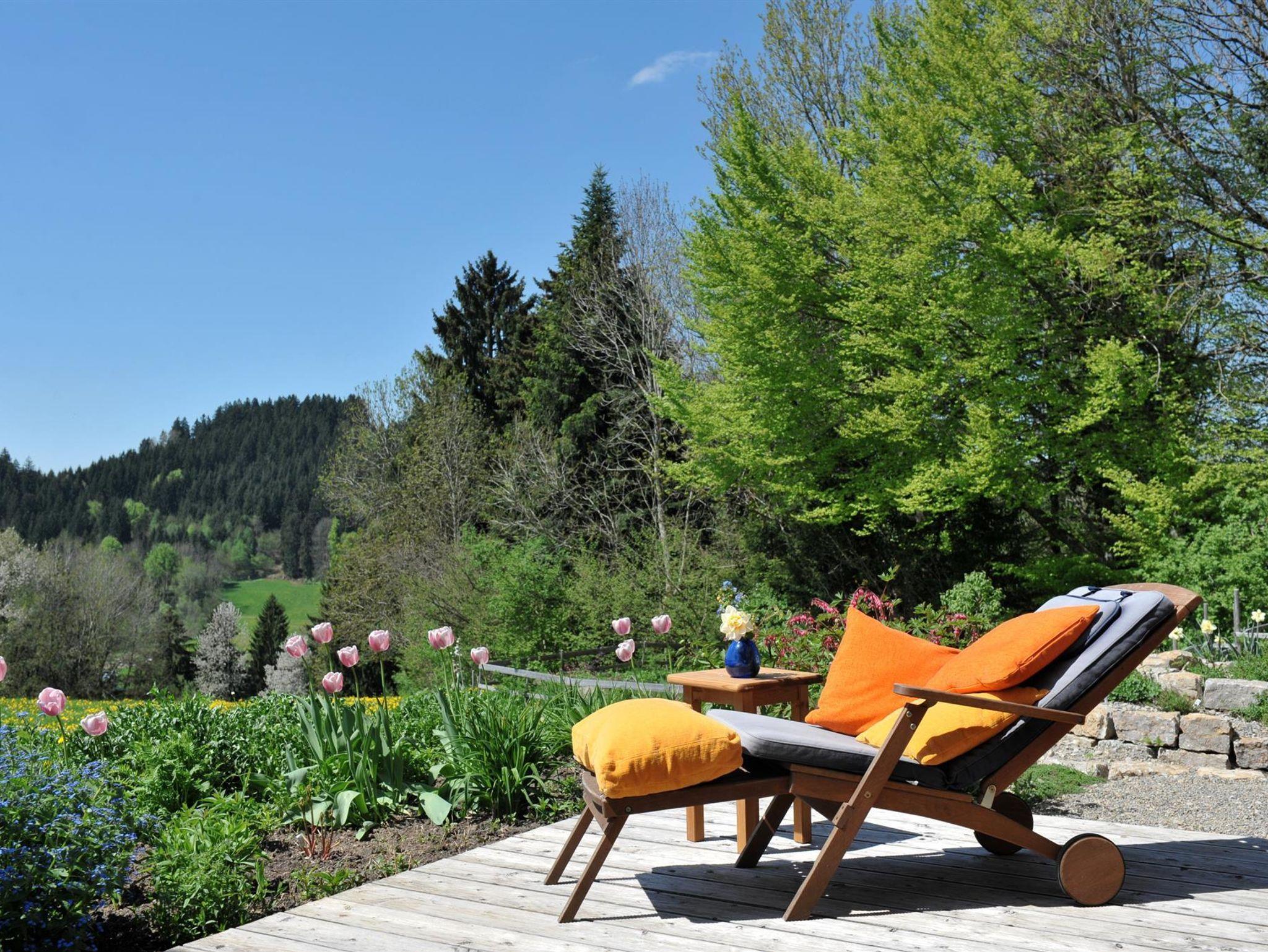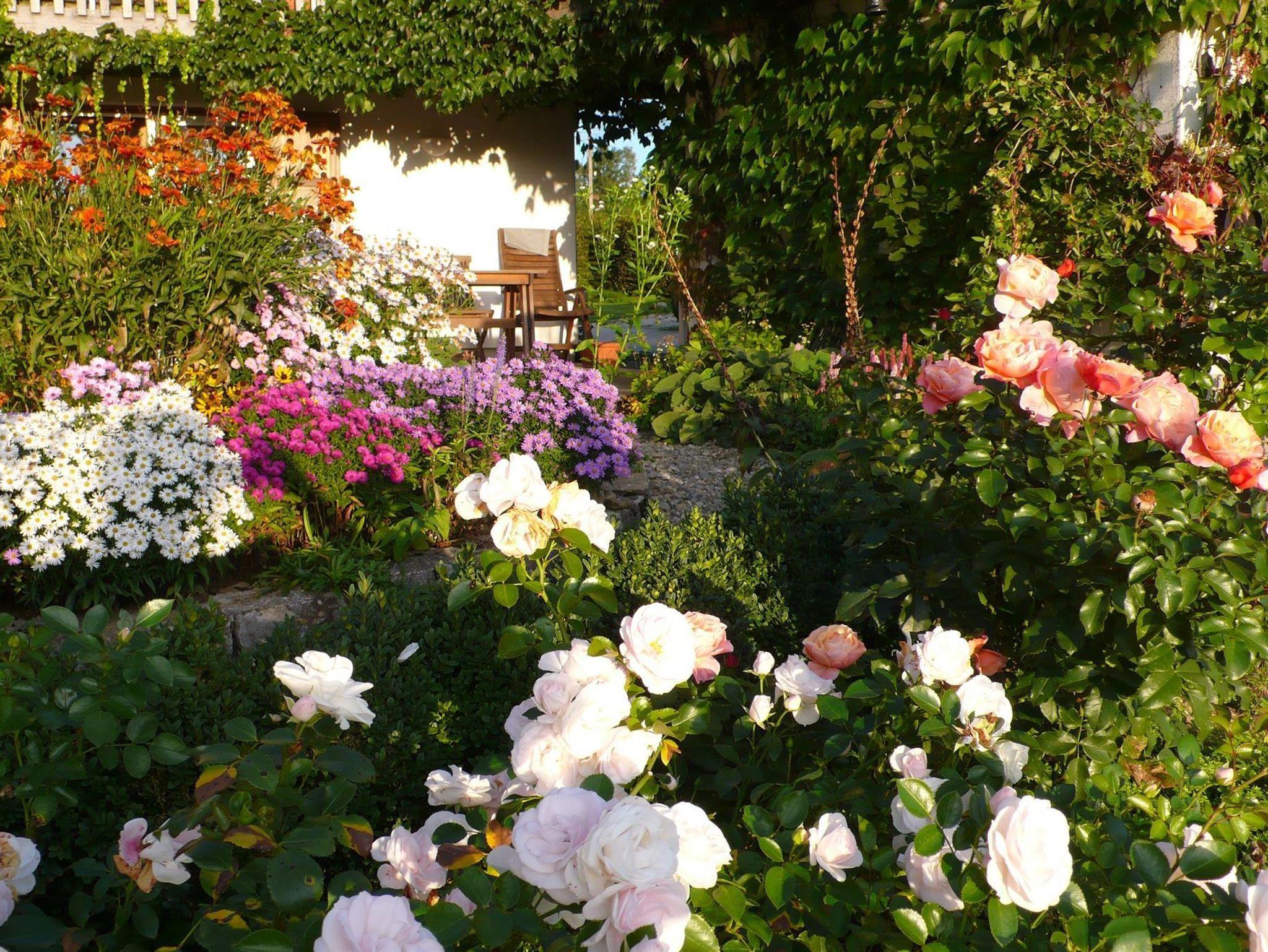 Entspannung und Ruhe beginnen mit dem Blick in die faszinierende Landschaft oder beim ersten Frühstück auf Ihrer großen Holzterrasse, umgeben von duftenden Rosen und der Farbenpracht meines Bauerngartens.