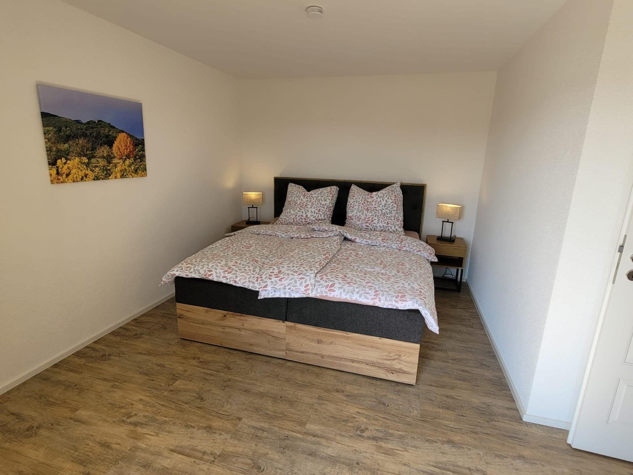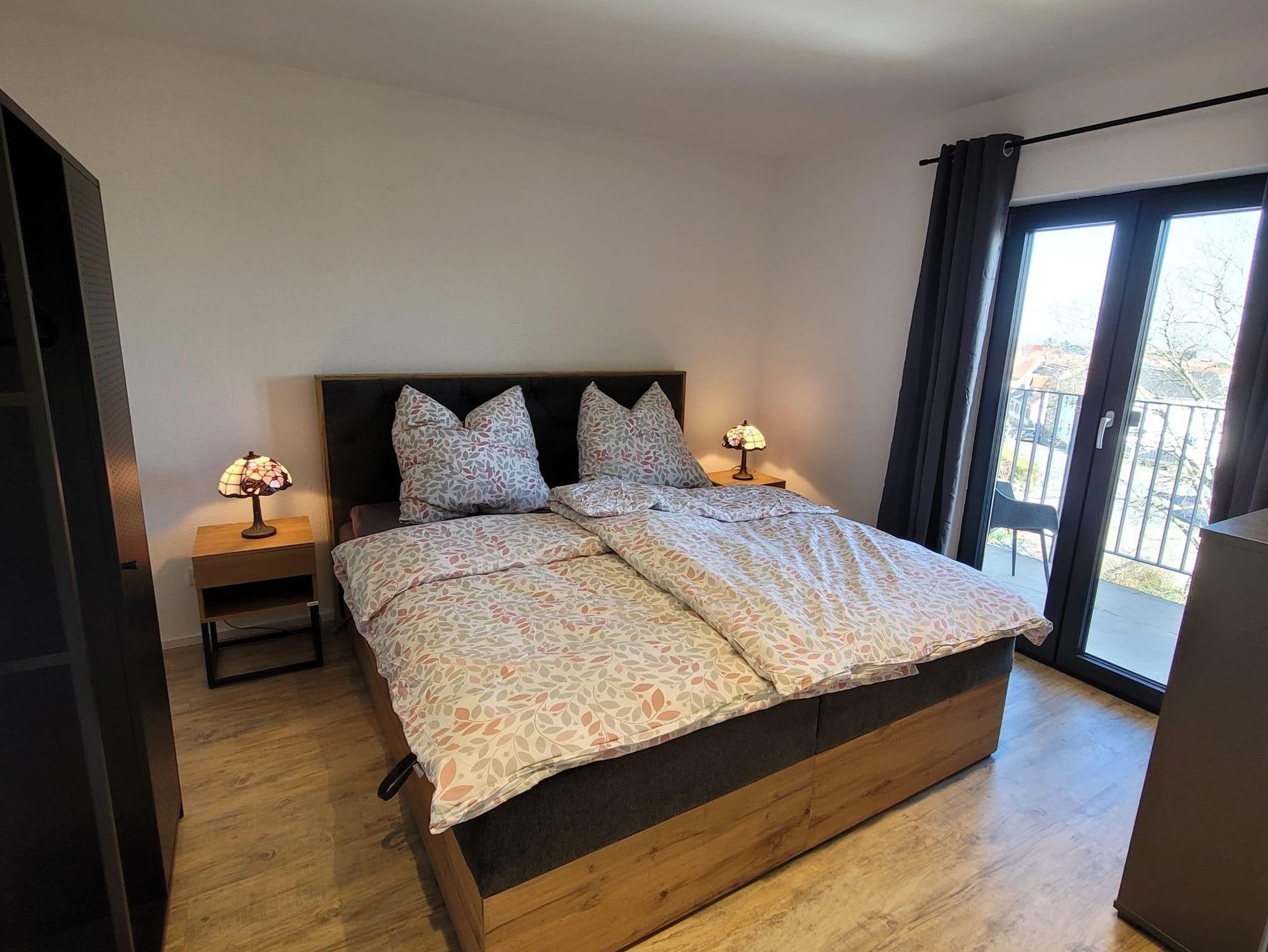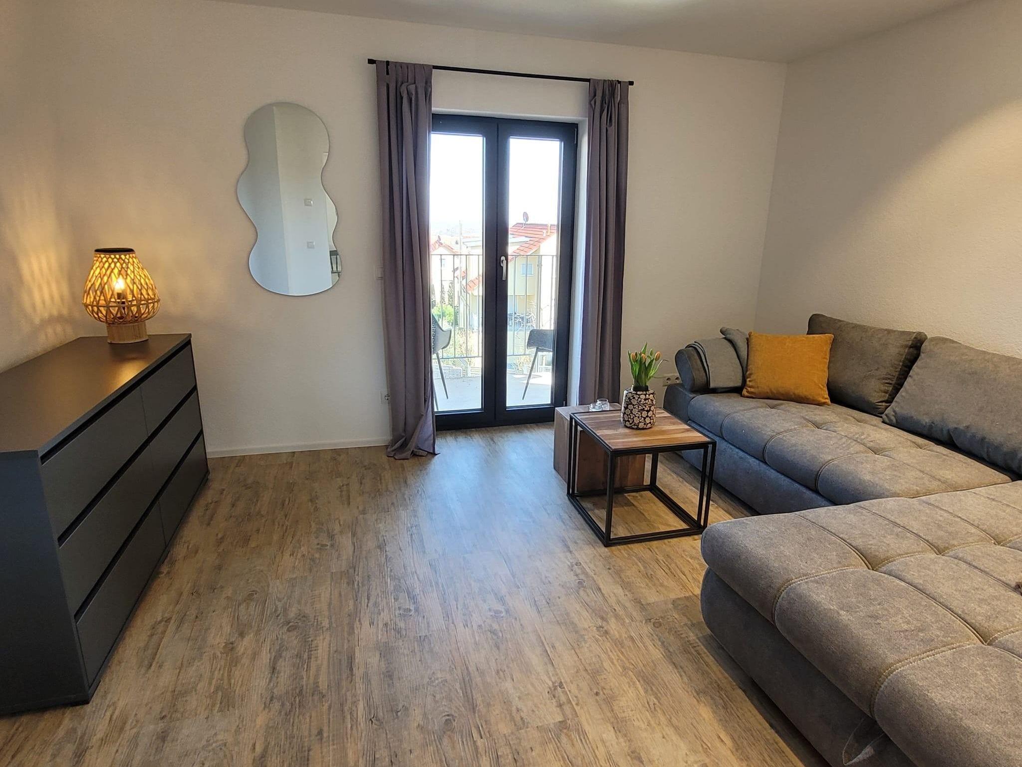 Modern und gemütliche Wohnung mit Fussbodenheizung im 1. OG nach umfassender Kernsanierung neu im März 2025 eingerichtet. C.a. 68qm zzgl. überdachte Loggia mit Blick auf den südlichen Odenwald bzw. Nordschwarzwald. 1 Wohnzimmer mit Smart-TV und Schlafsofa für 2 Personen. 1 moderne Wohnküche mit Backofen, Induktionsceranfeld, Abzugshaube, Geschirrspüler, Wasserkocher, Toaster, Senseo-Kaffeemaschine, großer Kühlschrank mit Eisfach. 2 Schlafzimmer mit Boxspringbetten (210x180). 1 Badezimmer mit Blick zum Hambacher Schloss.