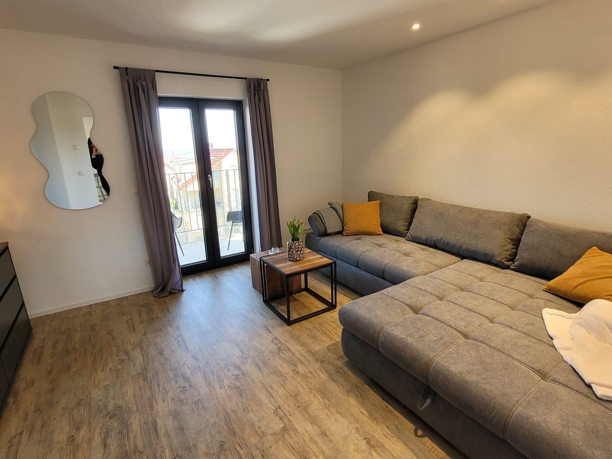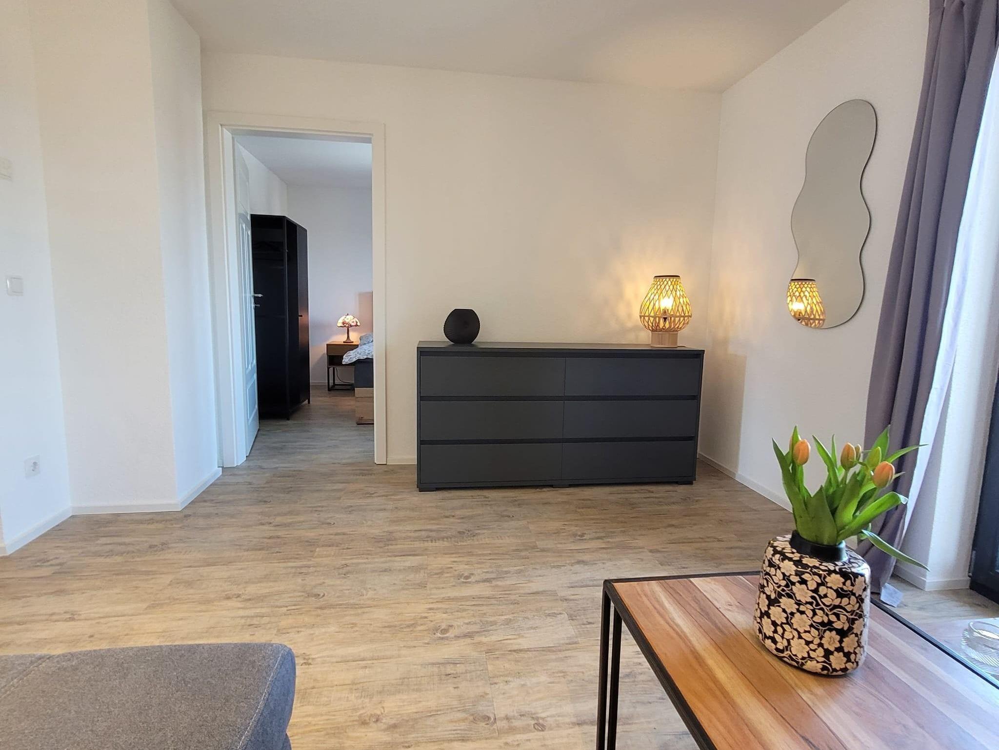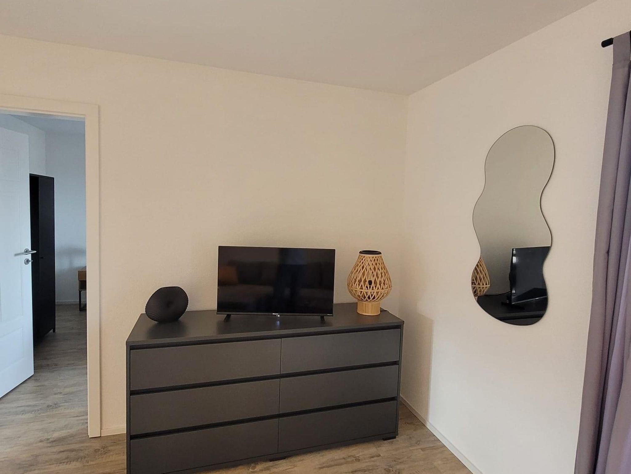 Modern und gemütliche Wohnung mit Fussbodenheizung im 1. OG nach umfassender Kernsanierung neu im März 2025 eingerichtet. C.a. 68qm zzgl. überdachte Loggia mit Blick auf den südlichen Odenwald bzw. Nordschwarzwald. 1 Wohnzimmer mit Smart-TV und Schlafsofa für 2 Personen. 1 moderne Wohnküche mit Backofen, Induktionsceranfeld, Abzugshaube, Geschirrspüler, Wasserkocher, Toaster, Senseo-Kaffeemaschine, großer Kühlschrank mit Eisfach. 2 Schlafzimmer mit Boxspringbetten (210x180). 1 Badezimmer mit Blick zum Hambacher Schloss.