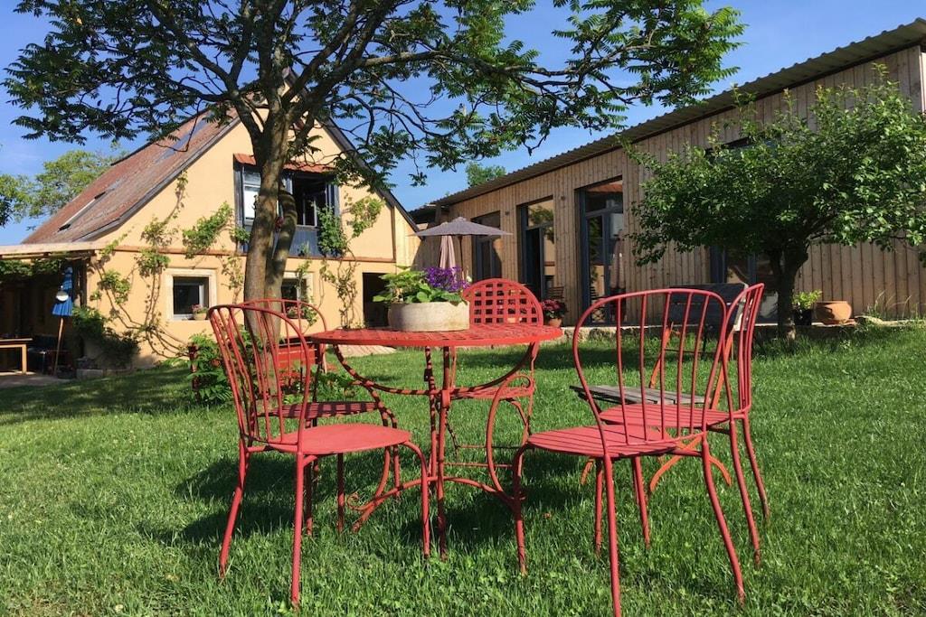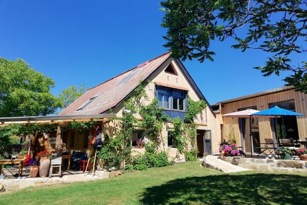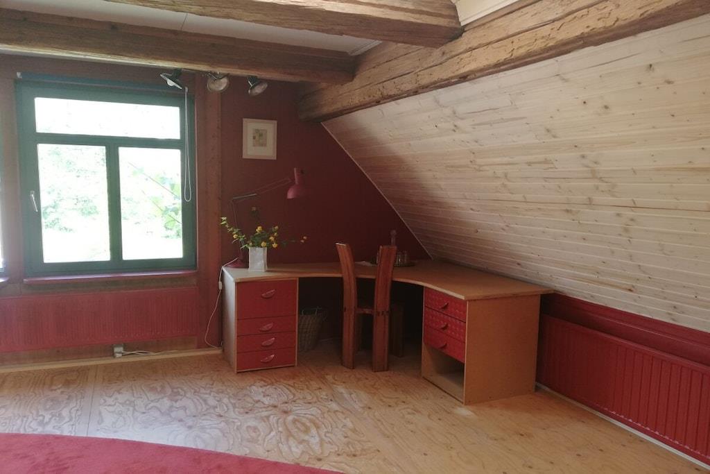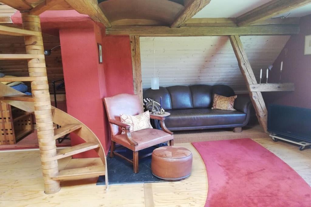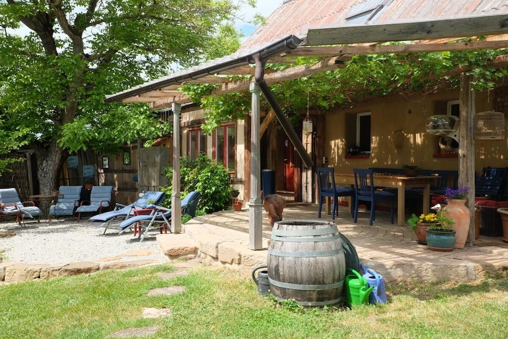 Værelserne i vores gamle hyrdehus er så unikke, at billederne taler for sig selv. Uanset om det er på den lille hems, den hyggelige maisonette, den komfortable par-terre eller det blå værelse, har hvert værelse sin egen charme. Det samme gælder køkken-stuen og de to badeværelser. Gæstehuset har to terrasser, den ene under den anden. Den ene er overdækket. En græsplæne til solbadning er placeret foran vores hyrdevogn (seng 160x200), som ligger 15 meter fra huset og kan bookes separat.
