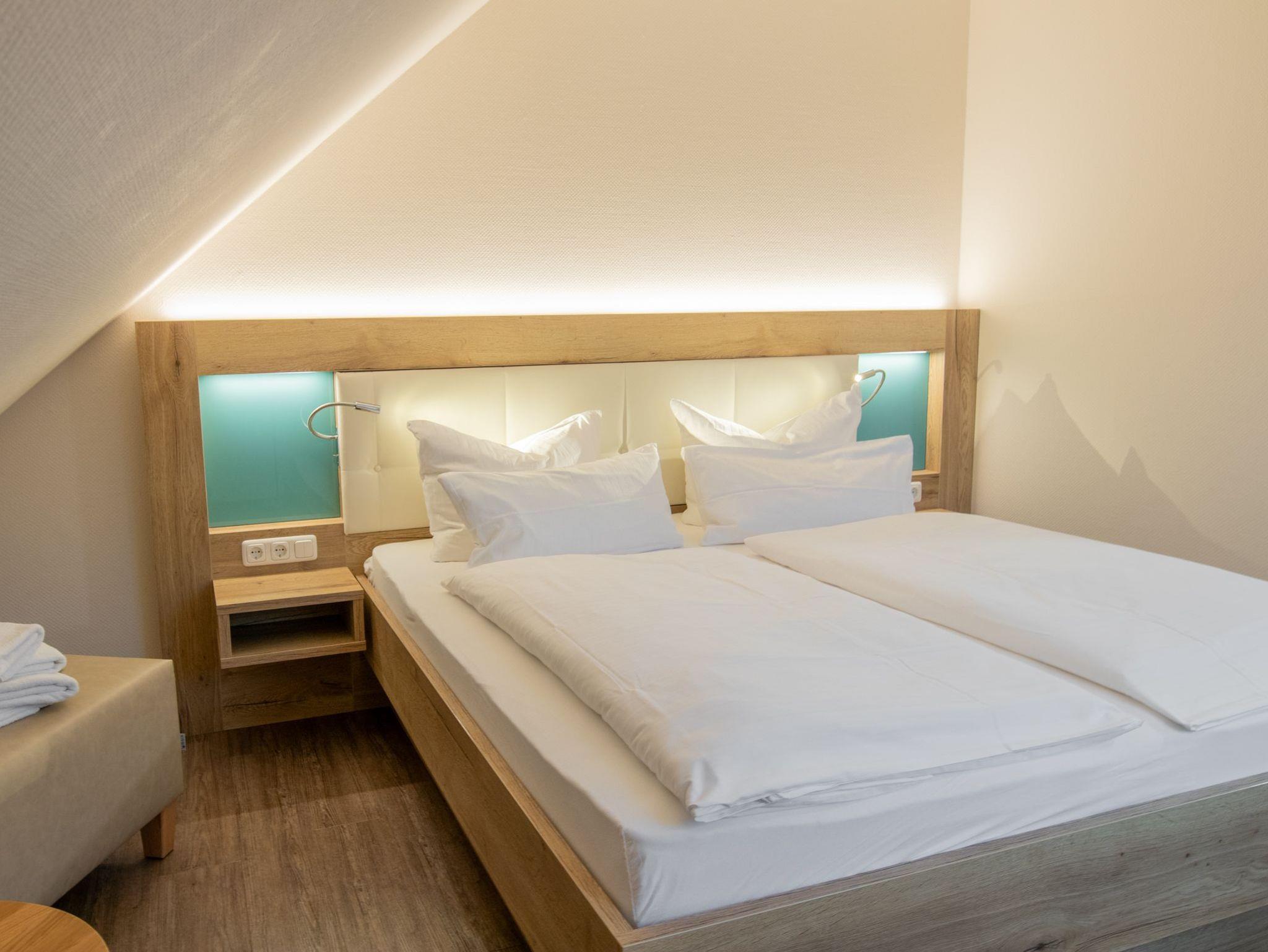 Die 22 m² großen Doppelzimmer im Hotel Lenzer Krug bieten nicht nur einen Rückzugsort, sondern auch eine kleine Oase der Ruhe. Mit liebevollen Details und einer gemütlichen Atmosphäre schaffen sie den perfekten Rahmen für entspannte Nächte und erholsame Tage. Die Zimmer, die sich im Obergeschoss bzw. Dachgeschoss befinden, zeichnen sich durch ihre charmante Dachschräge aus, die eine ganz besondere Gemütlichkeit ausstrahlt. Das komfortable Doppelbett (180x200 cm) lädt dazu ein, sich nach einem aktiven Tag zurückzulehnen und die Seele baumeln zu lassen. Der Kleiderschrank bietet genügend Stauraum für deine Urlaubsgarderobe, während der TV für den entspannten Abend sorgt. Das moderne Bad mit Dusche rundet das Wohlfühlgefühl ab und sorgt dafür, dass du dich hier rundum wohlfühlst. In jedem der gemütlichen Doppelzimmer steht dir zudem ein kleiner Kühlschrank zur Verfügung, perfekt, um erfrischende Getränke oder kleine Snacks griffbereit zu haben. Perfekt für Paare, die eine romantische Auszeit in dieser einzigartigen Umgebung genießen möchten.