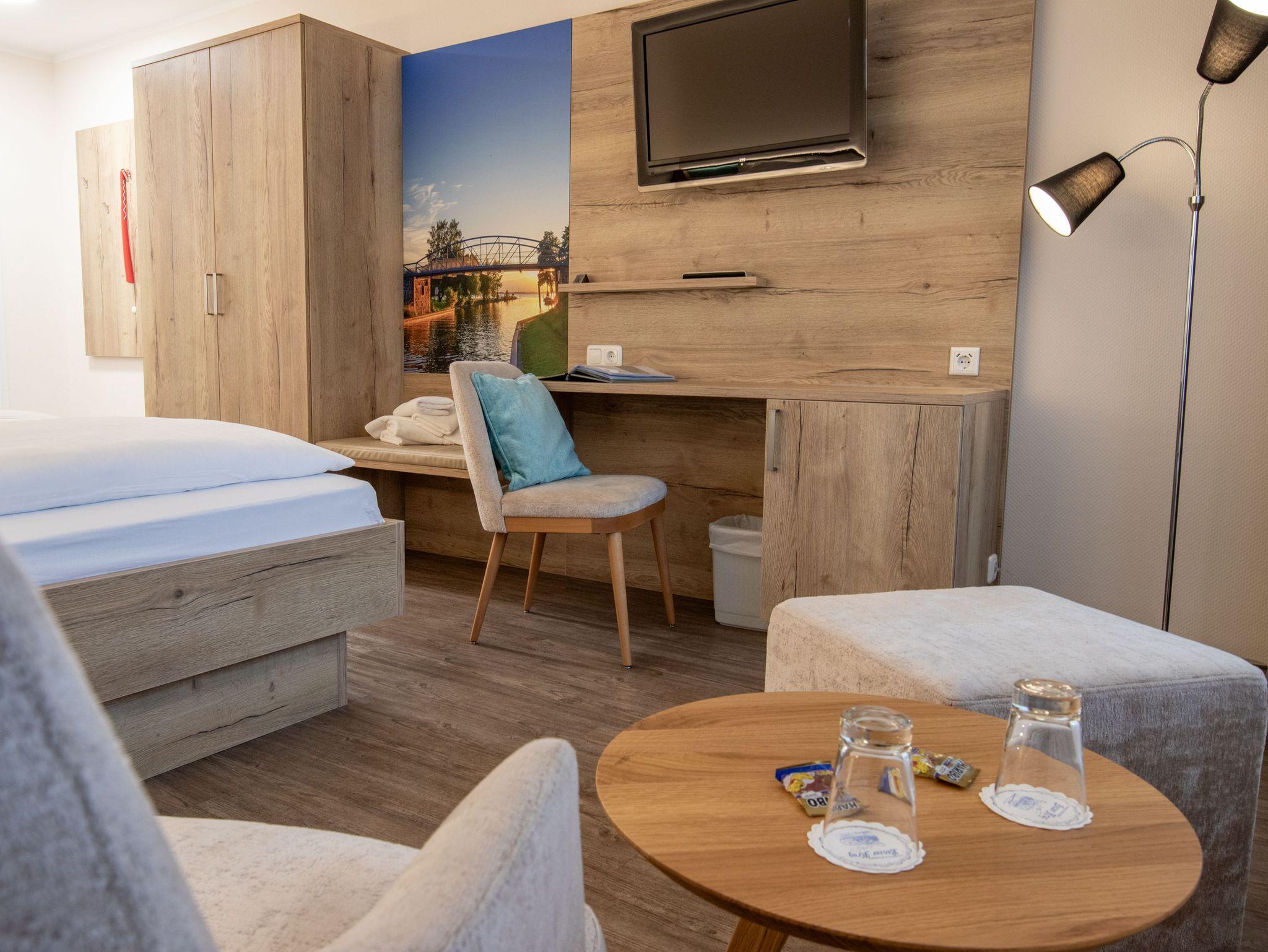 Die 22 m² großen Doppelzimmer im Hotel Lenzer Krug bieten nicht nur einen Rückzugsort, sondern auch eine kleine Oase der Ruhe. Mit liebevollen Details und einer gemütlichen Atmosphäre schaffen sie den perfekten Rahmen für entspannte Nächte und erholsame Tage. Die Zimmer, die sich im Obergeschoss bzw. Dachgeschoss befinden, zeichnen sich durch ihre charmante Dachschräge aus, die eine ganz besondere Gemütlichkeit ausstrahlt. Das komfortable Doppelbett (180x200 cm) lädt dazu ein, sich nach einem aktiven Tag zurückzulehnen und die Seele baumeln zu lassen. Der Kleiderschrank bietet genügend Stauraum für deine Urlaubsgarderobe, während der TV für den entspannten Abend sorgt. Das moderne Bad mit Dusche rundet das Wohlfühlgefühl ab und sorgt dafür, dass du dich hier rundum wohlfühlst. In jedem der gemütlichen Doppelzimmer steht dir zudem ein kleiner Kühlschrank zur Verfügung, perfekt, um erfrischende Getränke oder kleine Snacks griffbereit zu haben. Perfekt für Paare, die eine romantische Auszeit in dieser einzigartigen Umgebung genießen möchten.