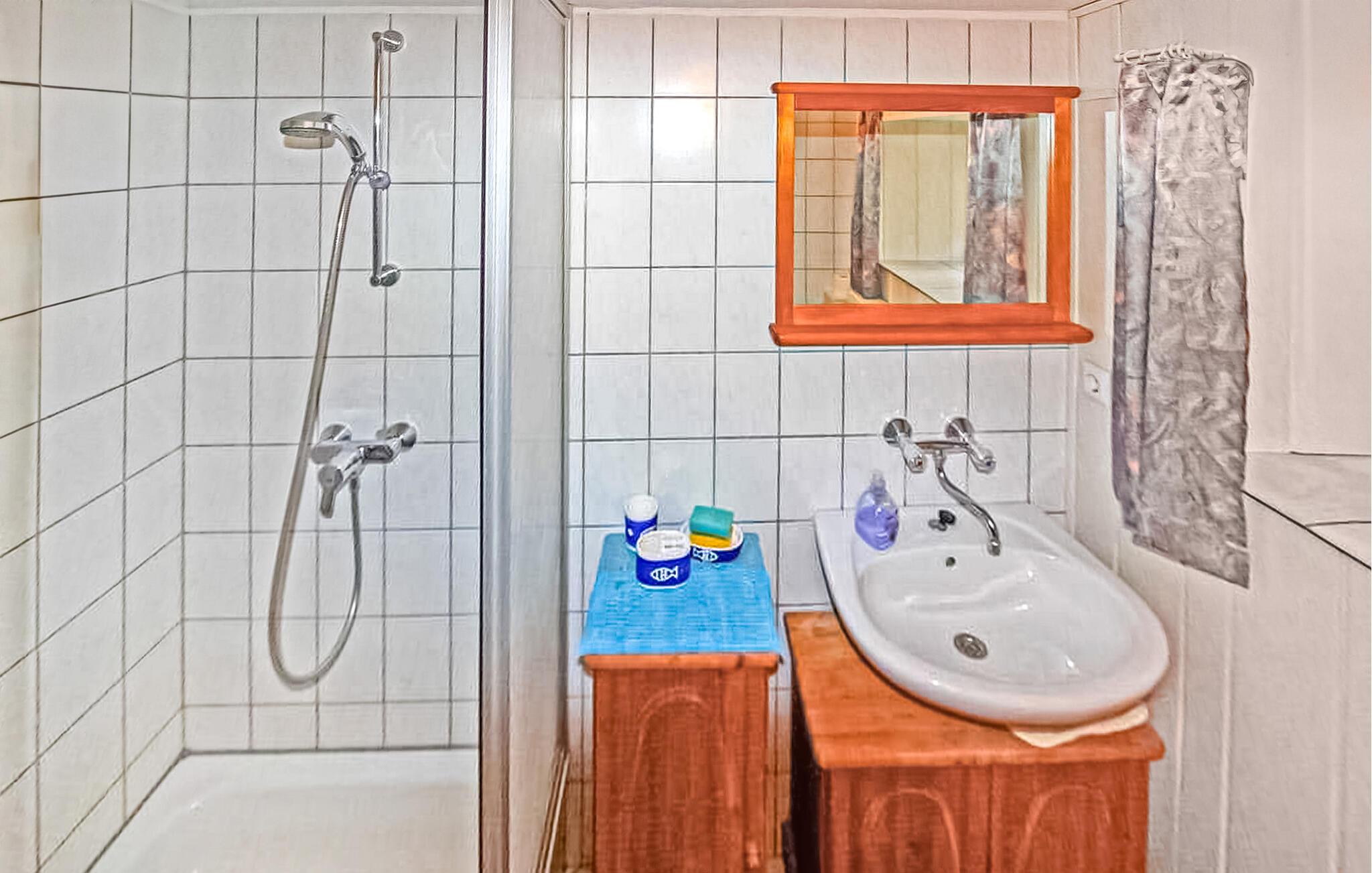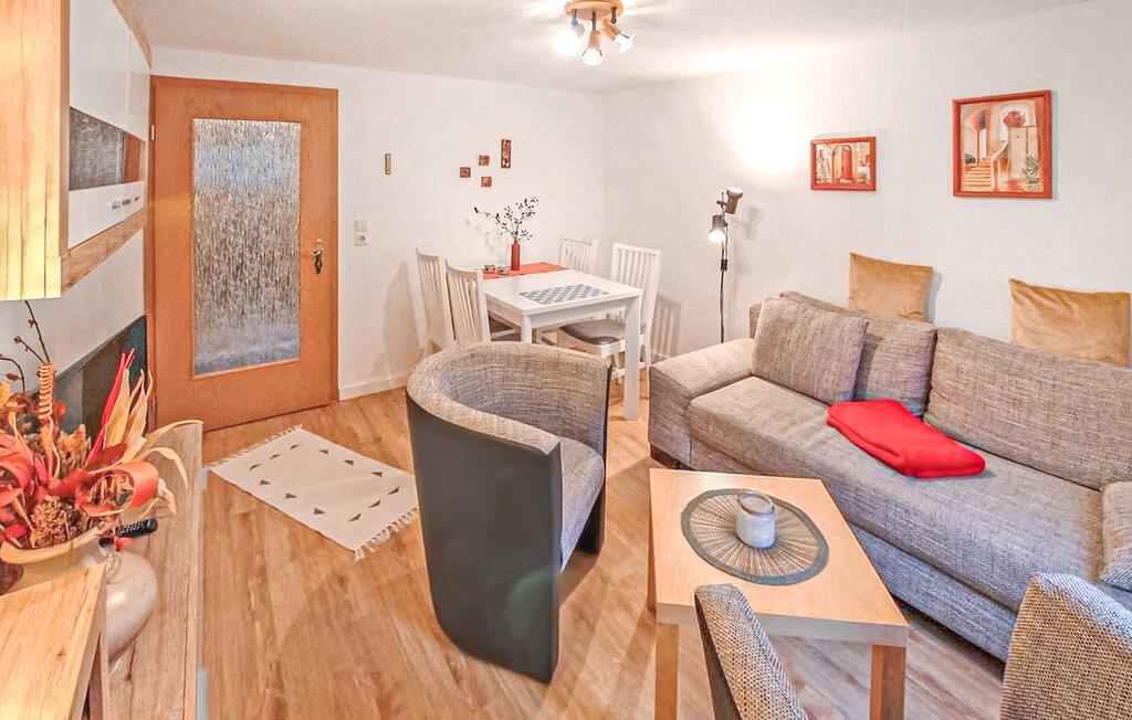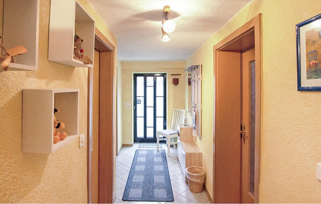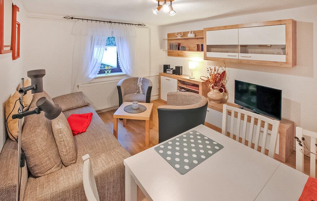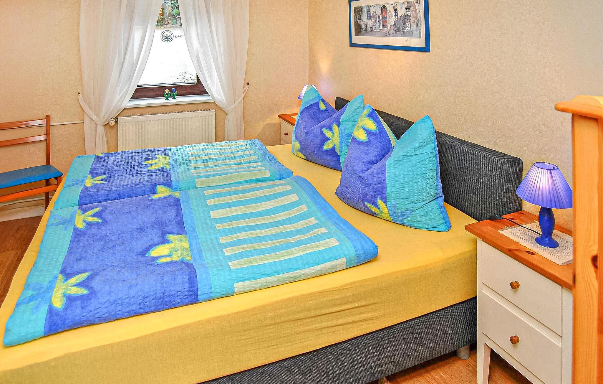 Ferielejligheden ligger i kælderen i et enfamiliehus i et roligt villakvarter, kun cirka 300 meter fra den skønne strand ved Fleesensee. Det har separat adgang. Udstyr med: Stue med polstrede møbler (sovesofa), LCD TV, radio, CD/DVD, soveværelse med dobbeltseng, endnu et soveværelse med dobbeltseng, fladskærms TV, vask, køkken (elkomfur med ovn, mikroovn, køleskab med fryserum, spiseplads, diverse køkkenmaskiner), bad/toilet, centralvarme. Tilgængelig: WiFi, udendørs opholdsområde, cykelkælder, grill og parkeringsplads. Den samlede pris inkluderer sengelinned, håndklæder, slutrengøring, vand og energi.