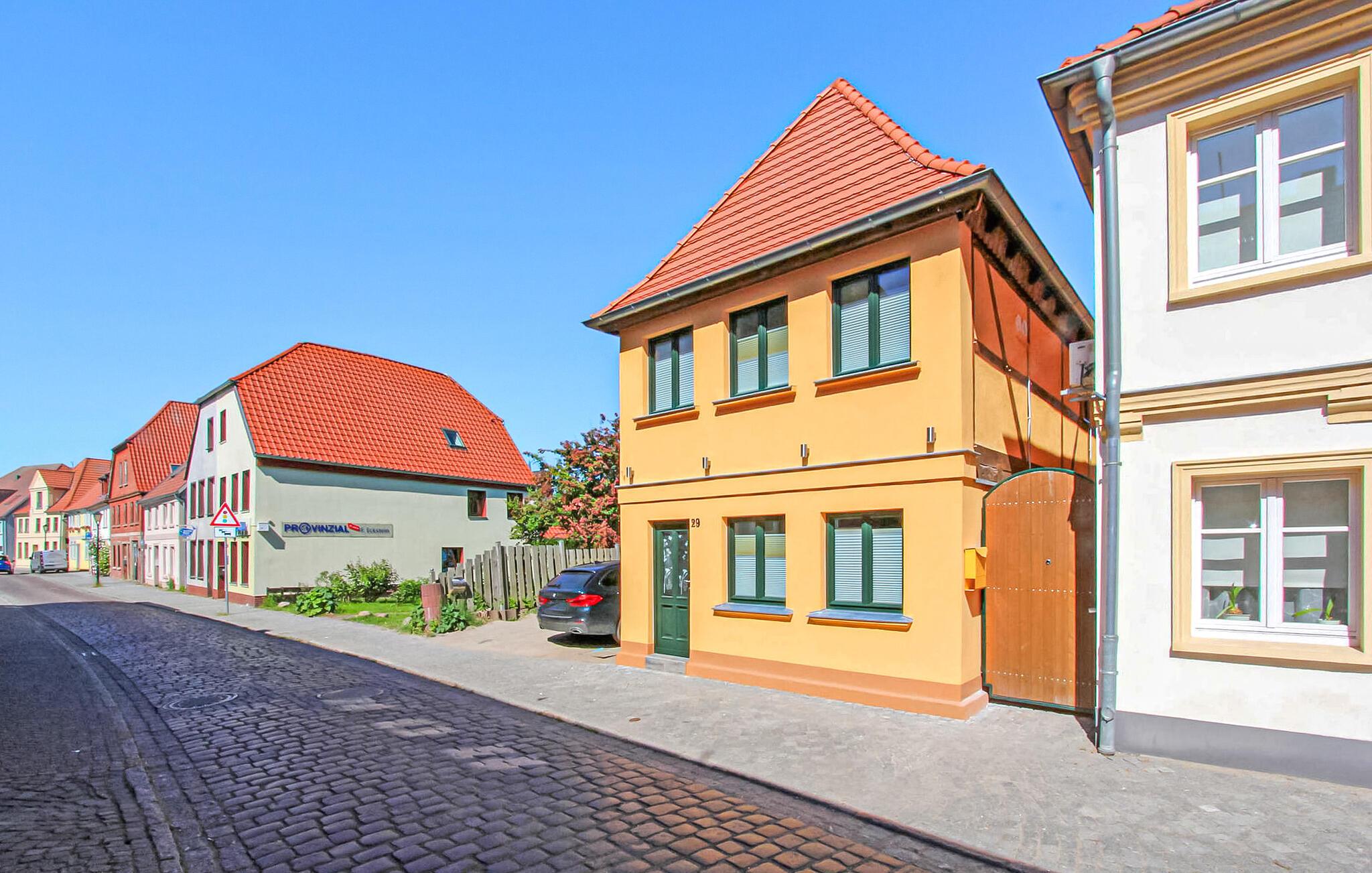 En af tre cirka 40 m² store lejligheder til højst 3 personer, placeret separat i stueetagen og første sal i et rækkehus midt i Malchows gamle bydel. Den historiske bygning fra det 18. århundrede blev gennem flere år gennemgribende renoveret og fuldstændig omudstyret. Første indflytning sommeren 2021. Restauranter, caféer og indkøbsmuligheder er inden for få hundrede meter. Det særlige ved den gamle bydel i Malchow; Det er en ø omgivet af søen Malchower og søen Fleesen. En offentlig adgang til søen med et lille opholdsområde ligger lige ved siden af huset.