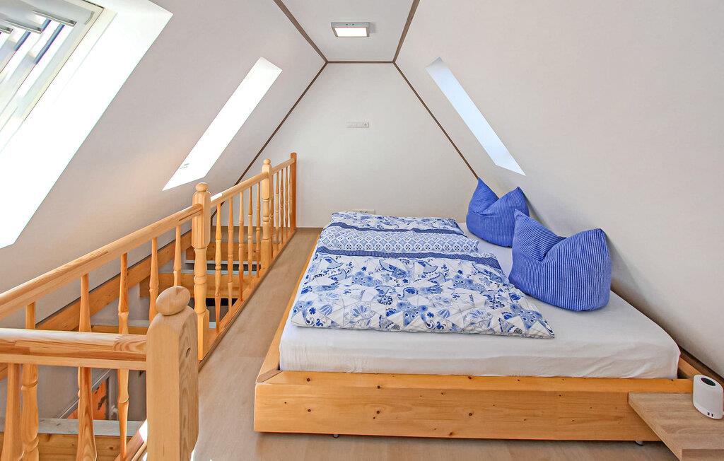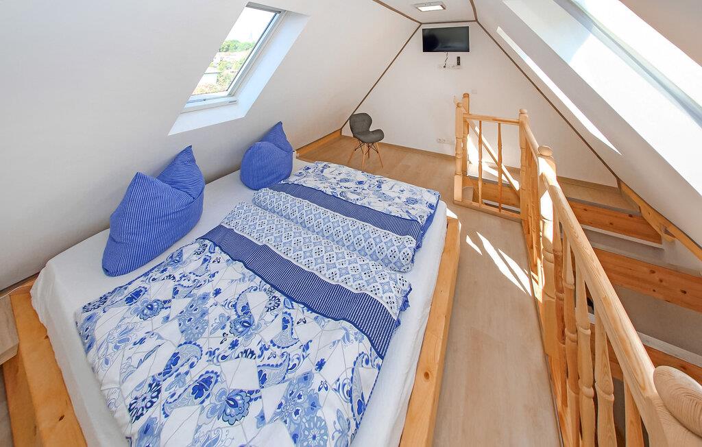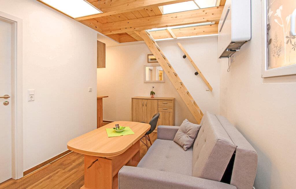 Denne lejlighed ligger på første sal. Det har et opholdsområde (polstrede møbler, skrivebord, smart-tv), et åbent soveområde på loftet med en dobbeltseng og tv (adgang via en stejl, pladsbesparende trappe), et åbent tekøkken (elkomfur, køleskab, spisestue). område, diverse køkkenmaskiner) og et badeværelse med brus/toilet. Der er også moderne aircondition, automatiske vinduer, gratis trådløs internetadgang og et internetaktiveret smart-tv.