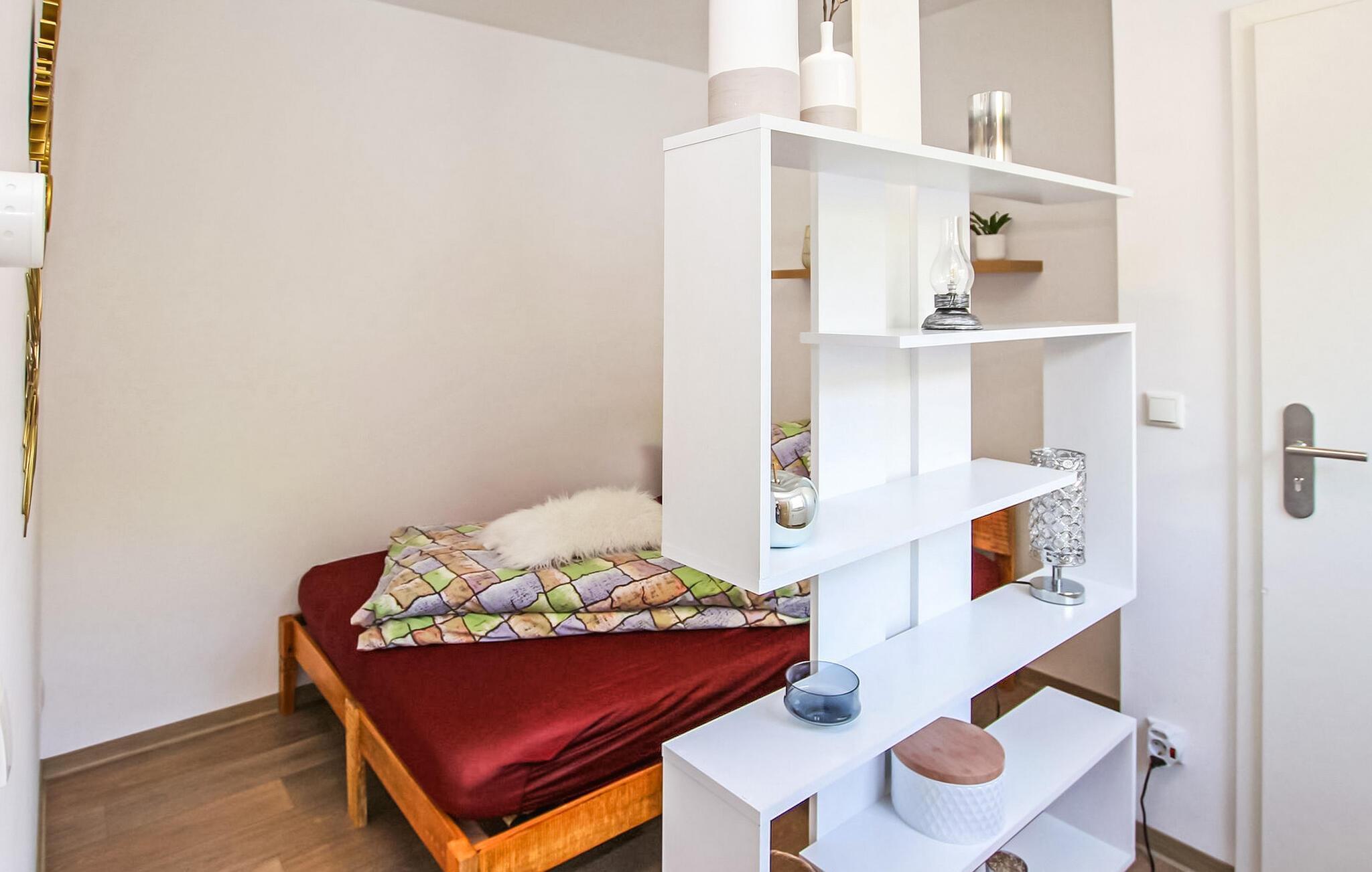 De to smagfuldt og moderne indrettede, centralt opvarmede ikke-ryger lejligheder kan nås via en offentlig trappe og en fælles gang, der fører ind til endnu en gang med separate indgangsdøre. Den cirka 35 kvadratmeter store lejlighed med plads til op til 3 personer har kombineret stue og soveværelse (sovesofa til 1 person, spisebord, fladskærms-tv, dobbeltseng - optisk adskilt) med åbent køkken (elkomfur med ovn, køleskab med bl.a. fryser mulighed, kaffemaskine, brødrister, kedel), et badeværelse (brusebakke, toilet, hårtørrer) og et cykelrum. Gratis WiFi og babyudstyr (barneseng, høj stol, potte) er også tilgængelige efter anmodning. Gratis offentlige parkeringspladser er tilgængelige ca. 250 - 500 m væk, du kan parkere kort på gaden til af- og pålæsning. Den samlede pris inkluderer slutrengøring, sengelinned, håndklæder, el og vand. Betales på stedet: turistskat. Kæledyr er ikke tilladt i denne ejendom.