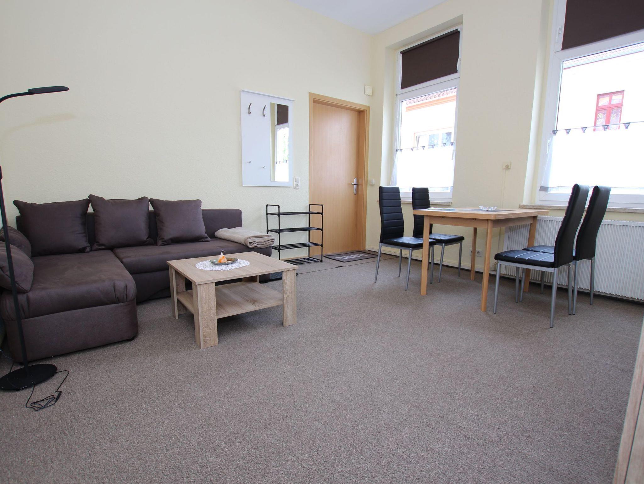 Die Ferienwohnung befindet sich in einem Haus mit 3 Wohnungen im Erdgeschoss und hat eine Größe von 40 m². Der gemütlich eingerichtete Wohnraum mit Sofaecke (Aufbettung für 3. Person), Couchtisch, TV, Radio, CD-Spieler und Esstisch mit Stühlen lädt zum Verweilen ein. Die Küche ist zum Wohnzimmer offen und modern ausgestattet mit Cerankochfeld, Backofen, Mikrowelle, Toaster, Wasserkocher, Kaffeemaschine und Kleinutensilien. Das Bad ist gefliest und mit einer Dusche, Waschtisch und WC ausgestattet. Im separaten Schlafzimmer mit dem Boxspringbett (1,80 m x 2,00 m), Nachttischen und dem Kleiderschrank finden Sie Nachtruhe. WLAN ist vorhanden. Im umzäunten Innenhof befindet sich eine Sitzecke mit Gartenmöbeln, Sonnenschirm und Grill. Diese Sitzecke wird gemeinschaftlich genutzt mit anderen Gästen des Hauses. Für wohlige Wärme sorgt eine Speicherheizung, die über ein Thermostat regelbar ist. Heizung/Strom werden nach Verbrauch berechnet.
