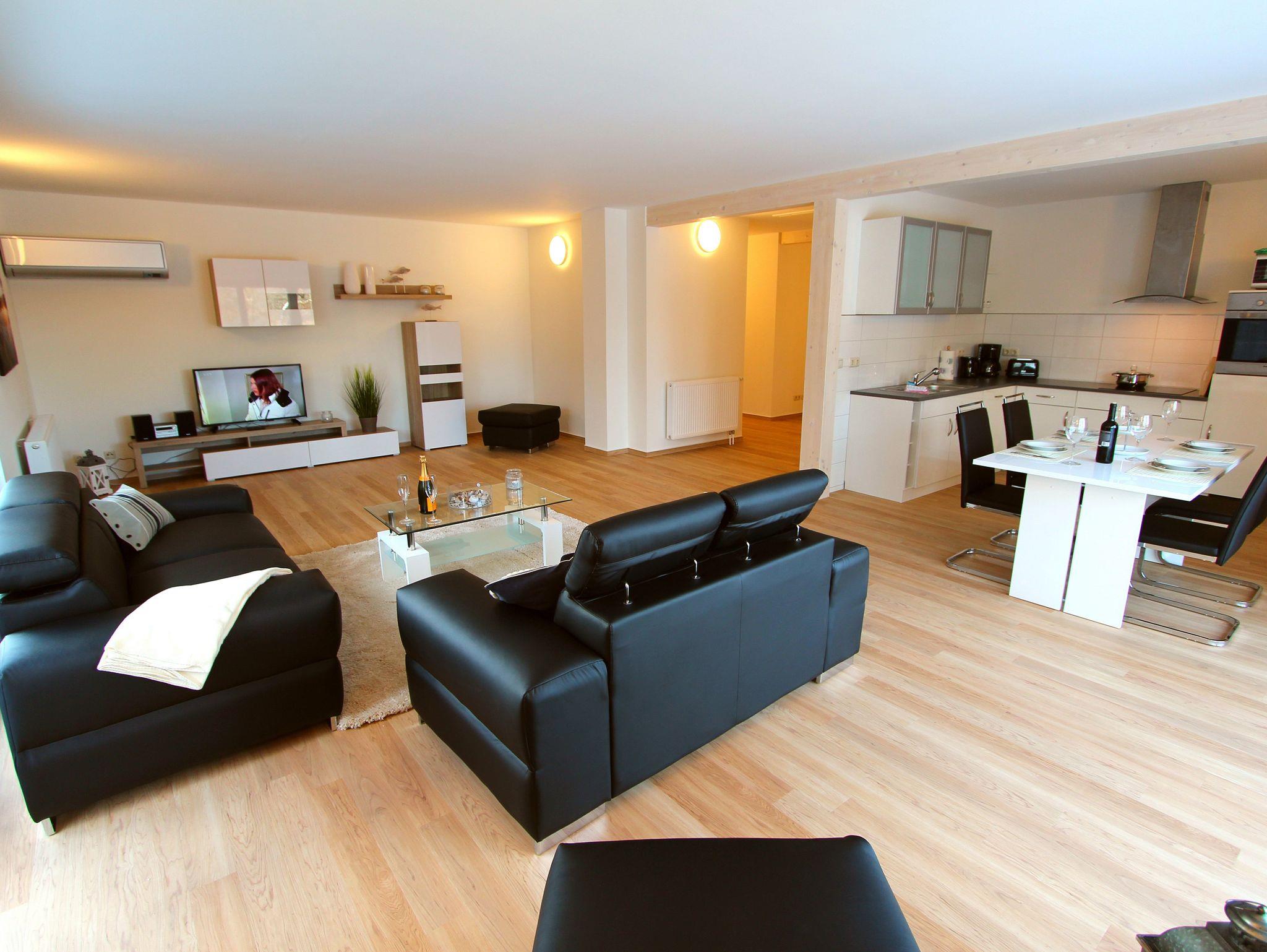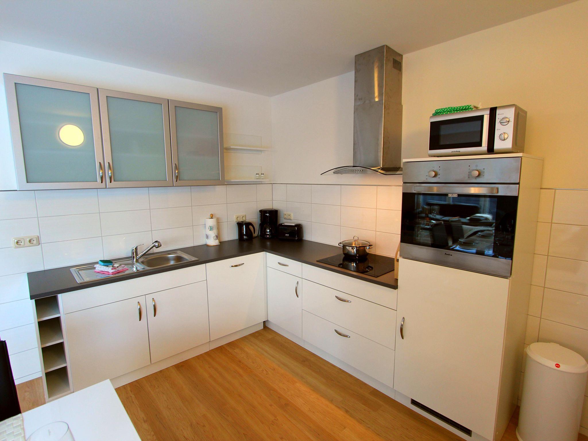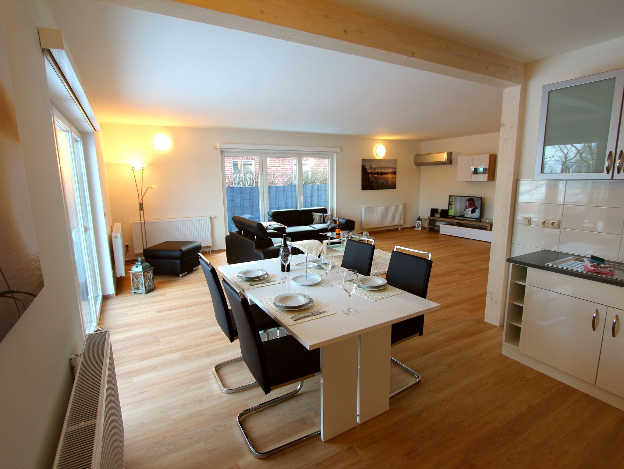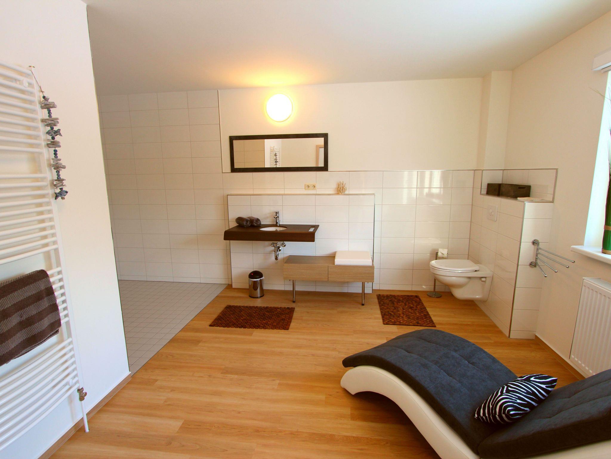 Die Ferienwohnung verfügt über 2 gemütliche Schlafzimmer, in denen Sie erholsame Nächte verbringen können. Die barrierefreien Zugänge und Ausstattungen ermöglichen auch Gästen mit eingeschränkter Mobilität einen komfortablen Aufenthalt. Zudem stehen Ihnen 2 moderne Badezimmer zur Verfügung, die mit allen Annehmlichkeiten ausgestattet sind und Ihnen den Komfort bieten, den Sie sich wünschen. Der großzügige Wohn- und Essbereich lädt zum Verweilen und Entspannen ein. Hier können Sie gemütliche Stunden verbringen und gemeinsame Mahlzeiten genießen. Die offene Küche ist voll ausgestattet und bietet Ihnen alle Annehmlichkeiten, um Ihre Lieblingsgerichte zuzubereiten.