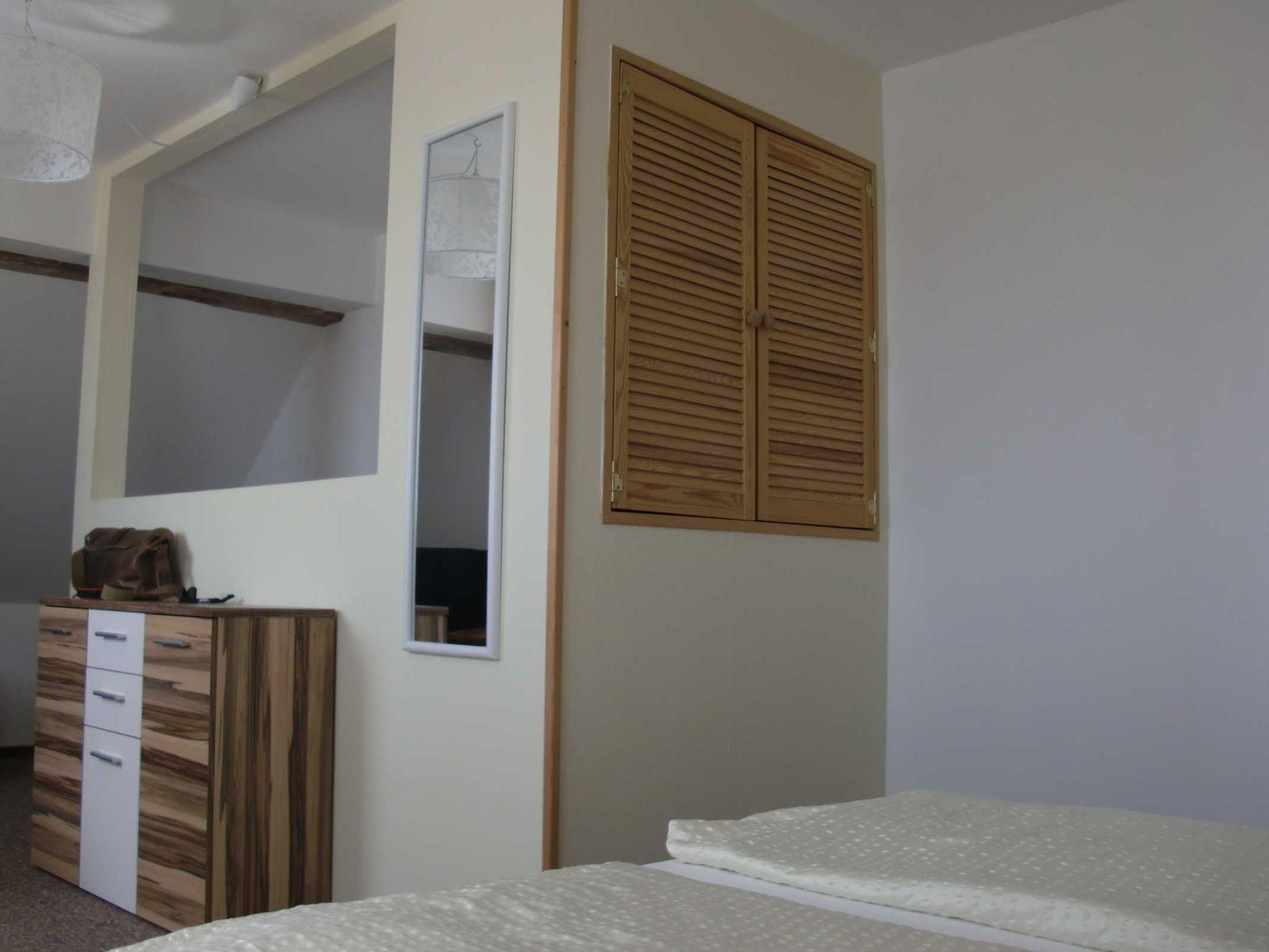 2012 wurde die Wohnung fertiggestellt. Sie ist ein kompletter Neubau. Im Erdgeschoß befindet sich der Wohn- und Essbereich sowie die offene Küche und das Bad. Der Wohnbereich verfügt über Sat-TV und Radio. In der oberen Etage befindet sich das Schlafzimmer mit einem gemütlichen Doppelbett. Alle Räume verfügen über Tageslicht. Zur Wohnung gehört eine großzüge Terrasse mit Grillmöglichkeit und eine Liegewiese sowie ein umzäunter Abstellplatz für das Fahrzeug. Ein Zustellbett für ein Kind im Alter bis 7 Jahre ist möglich.