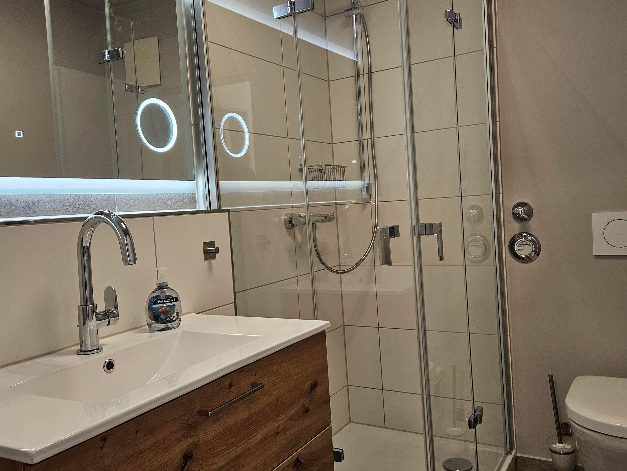 Die Ferienwohnung Ekengrund ist ca. 45 m² groß und verfügt über ein Wohnzimmer mit einer Schlafcouch und einer offenen Küche, ein separates Schlafzimmer mit einem Doppelbett (durchgehende Matratze), ein Badezimmer mit Dusche und WC sowie einen Balkon. In der 2024 neu eingebauten Küche stehen Ihnen neben Kaffeemaschine, Wasserkocher, Toaster und Mikrowelle auch ein Backofen und ein Geschirrspüler zur Verfügung.