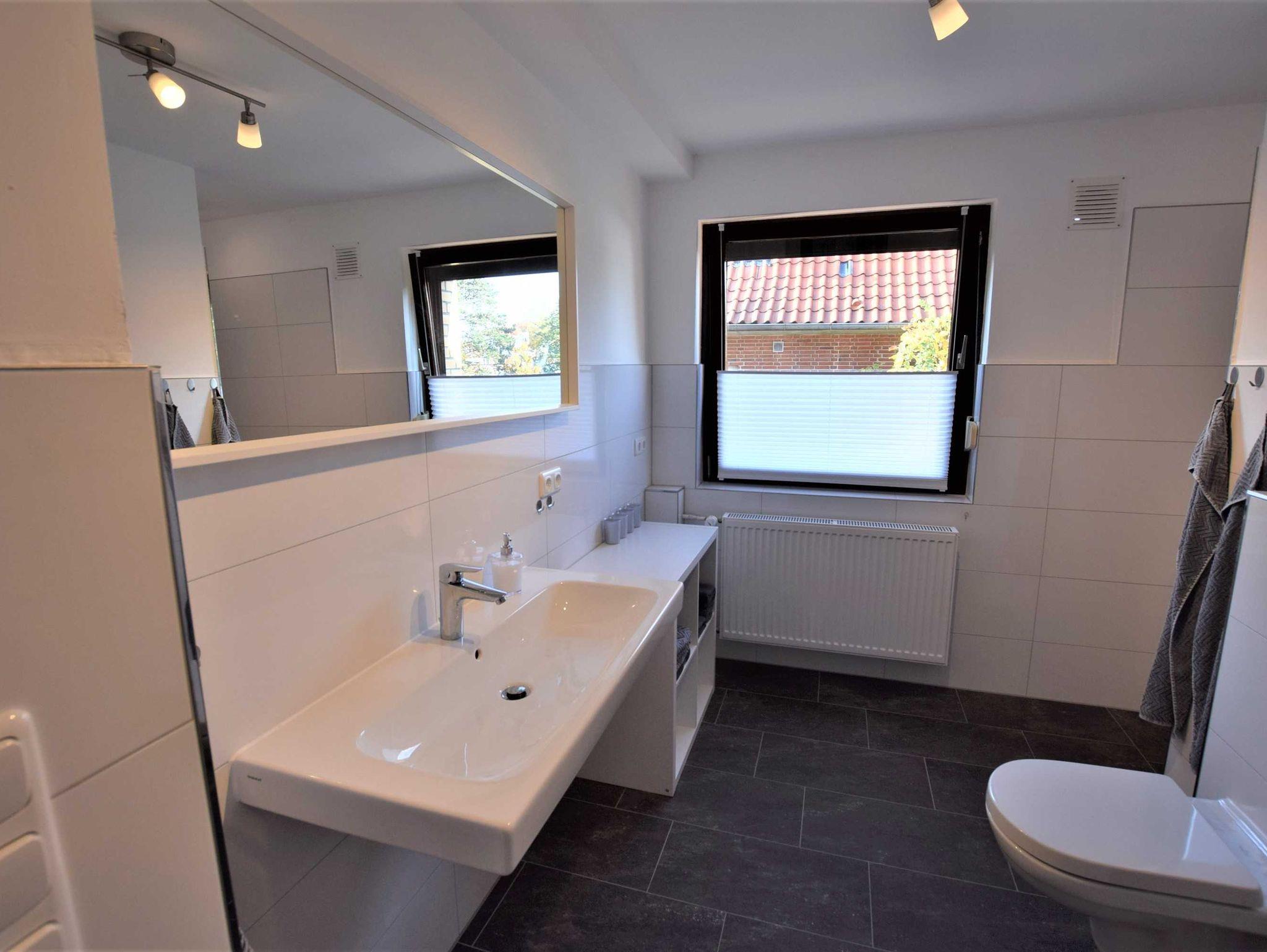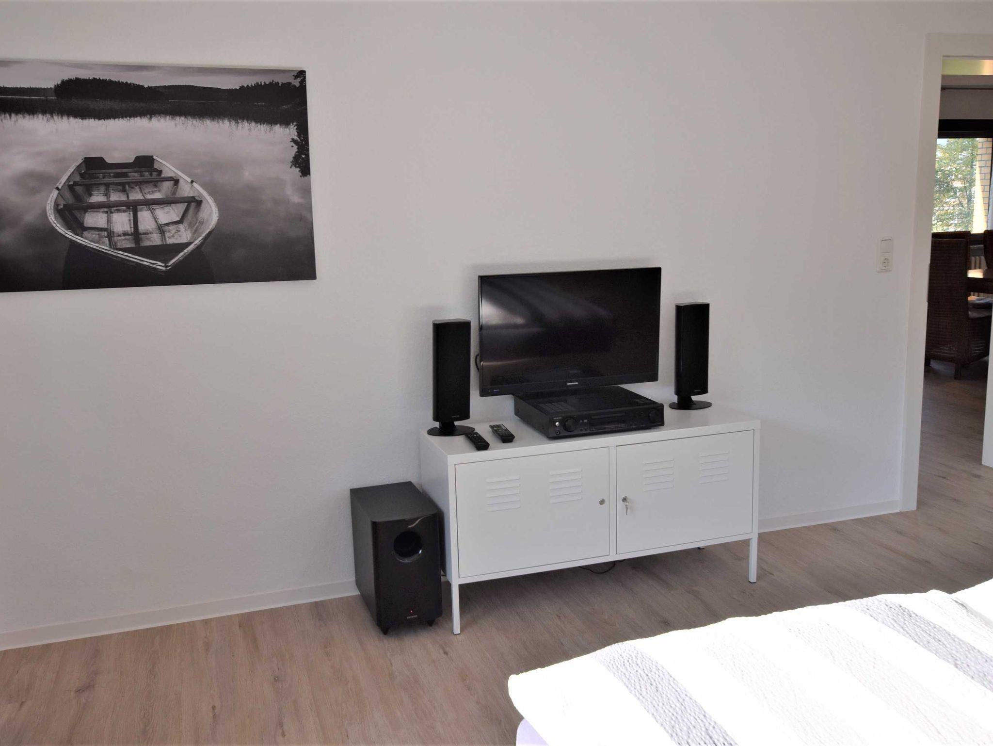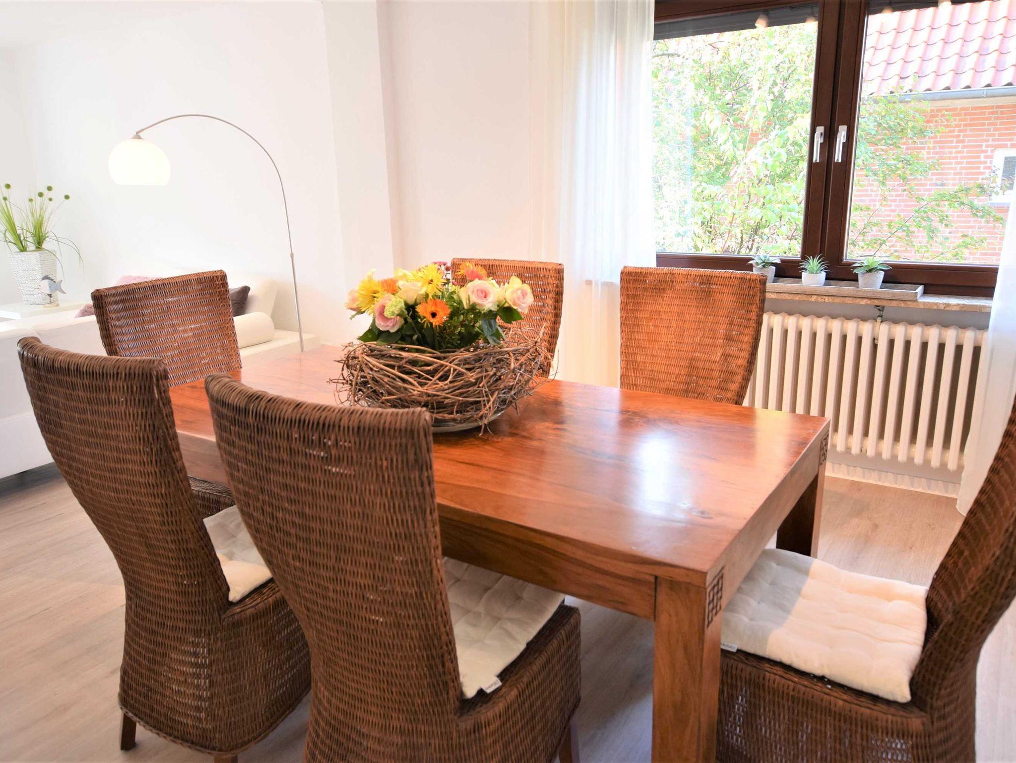 Die Ferienwohnung befindet sich in ruhiger Lage im Erdgeschoss eines freistehenden Hauses. Sie hat eine Größe von 90 m² und ist für bis zu 6 Personen ausgestattet (5. und 6. Person ist nur auf Anfrage buchbar): Wohnzimmer, Schlafzimmer mit Doppelbett, Schlafzimmer mit 2 ausziehbaren Einzelbetten, Duschbad mit WC, Gäste-WC, komplett ausgestattete Küche mit Essplatz, Terrasse und Garten mit Gartenmöbeln.