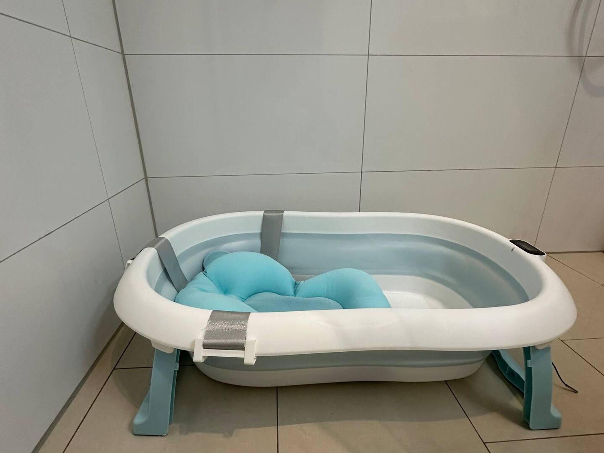 Für Babys befinden sich ein Baby-Reise-Bett, ein Babyphone, eine Babybadewanne, ein Bett-Rausfallschutz und Steckdosensicherungen in der Wohnung.