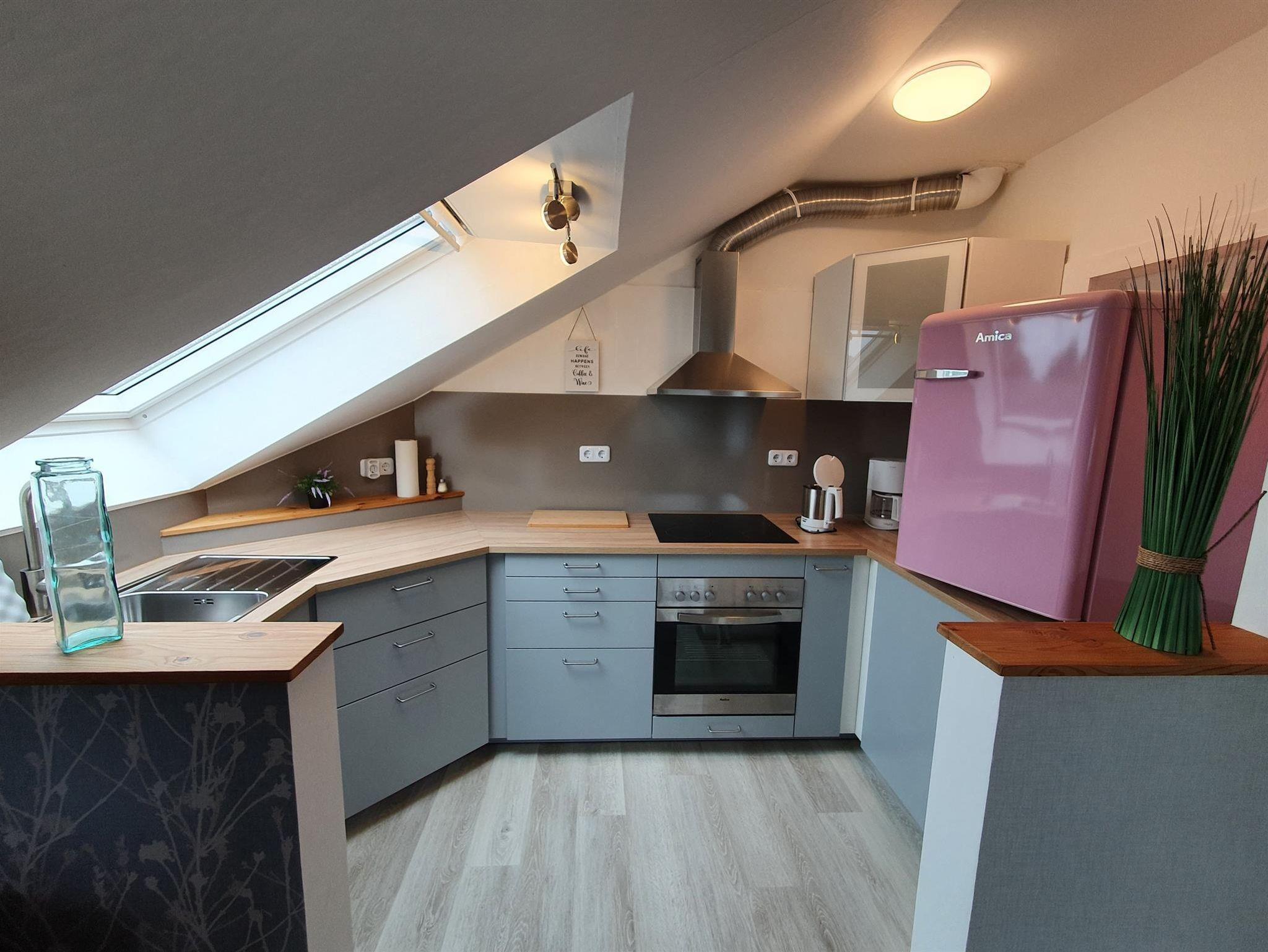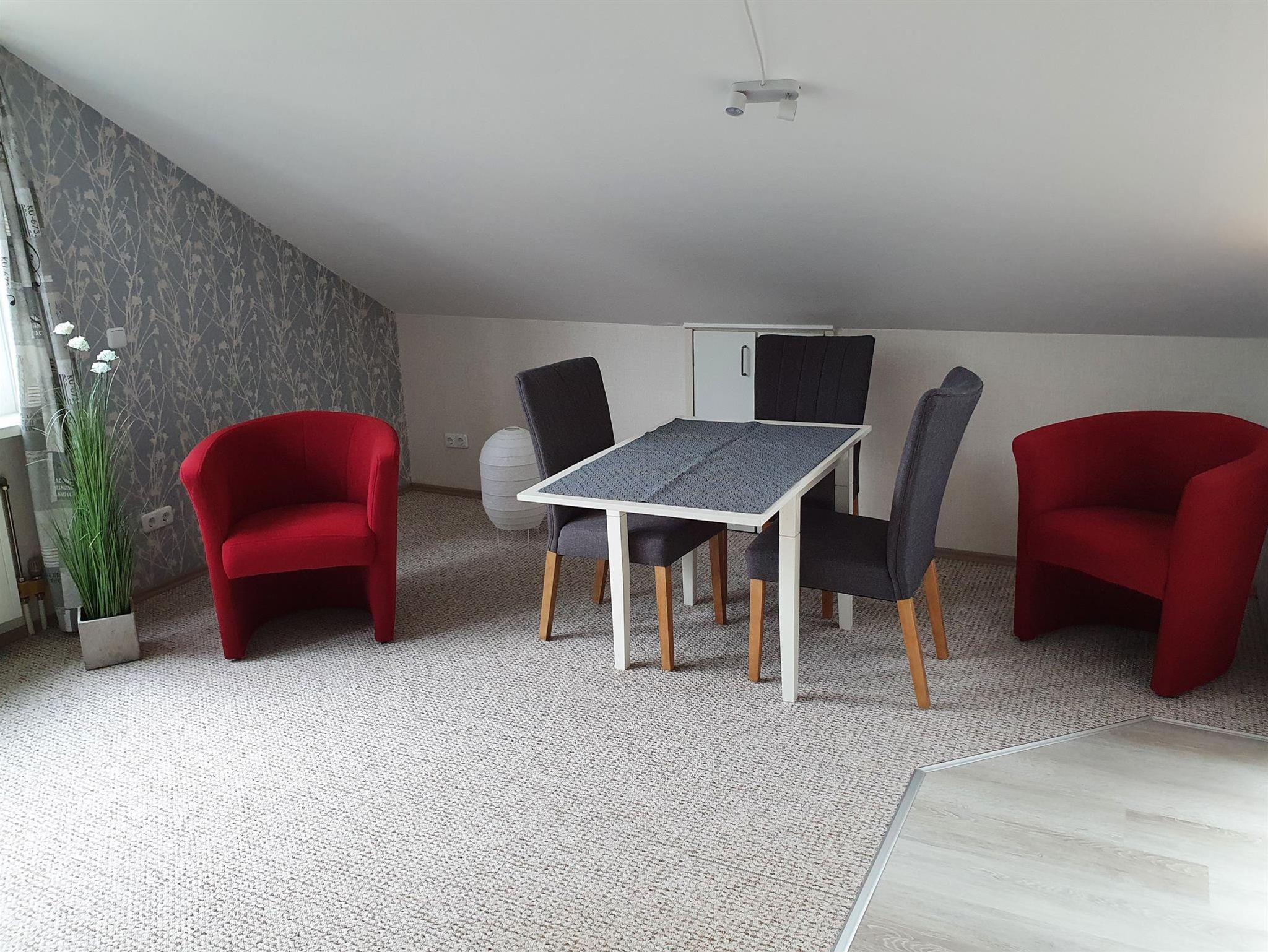 Die 52 m² große Ferienwohnung befindet sich im Obergeschoss in Südlage. Sie verfügt über ein Wohnzimmer mit Essbereich, eine offene Küche, ein separates Schlafzimmer sowie ein Duschbad. In Wohn- und Schlafraum sind Teppichböden verlegt, im Flur und in der Küche Vinyl-Parkett. Die Benutzung der Waschküche ist auf Anfrage möglich.