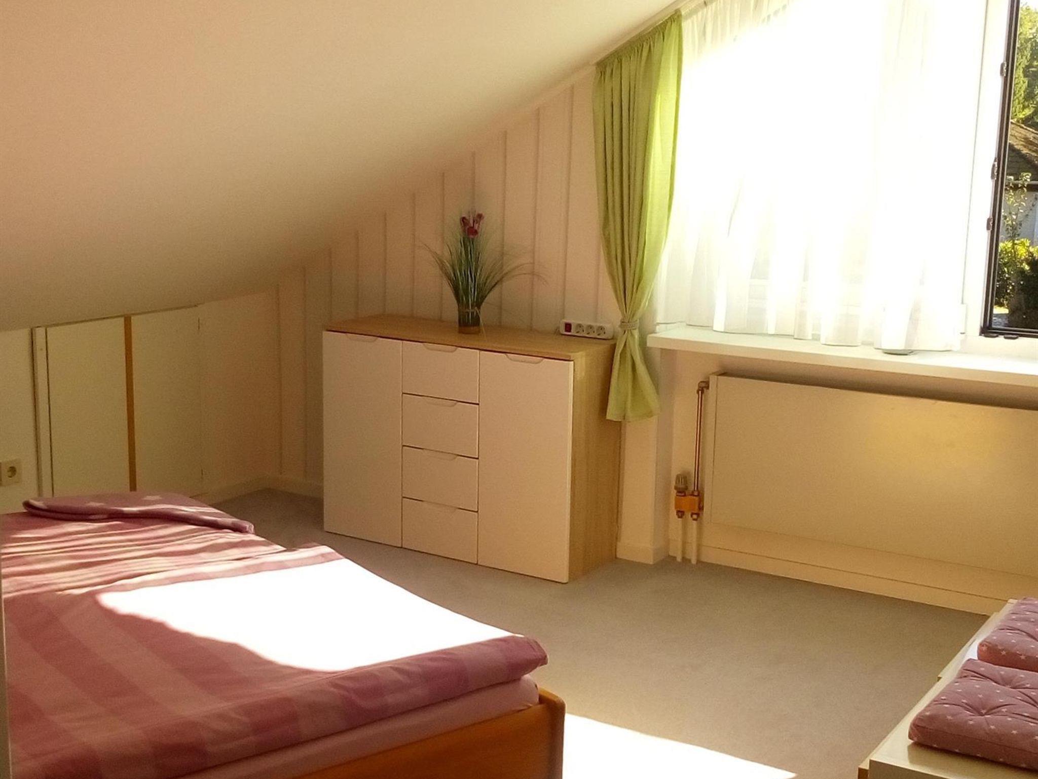Wir bieten für Gäste 1 Ferienwohnung in unserem Haus mit 5 Wohneinheiten an. Alle Wohnungen befinden sich auf einer eigenen Halbetage. Das Haus liegt am Ende einer Sackgasse und bietet mit eingewachsenem Grundstück und großem Garten mit Teich einen naturbetonten und erholsamen Aufenthalt nach einer langen Tagestour. Der Garten steht zur Mitbenutzung zur Verfügung.