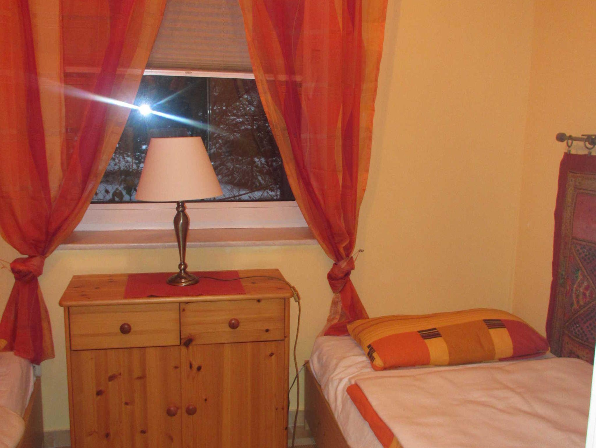 Es verfügt über eine ebenerdige Ferienwohnung im Bungalowstil mit separatem Eingang. Die Ferienwohnung ist ca 30 m² groß und bietet neben einem Wohnzimmer mit offener Küchenzeile einen Schlafraum mit zwei großen Einzelbetten und ein Badezimmer mit ebenerdiger Dusche und WC.