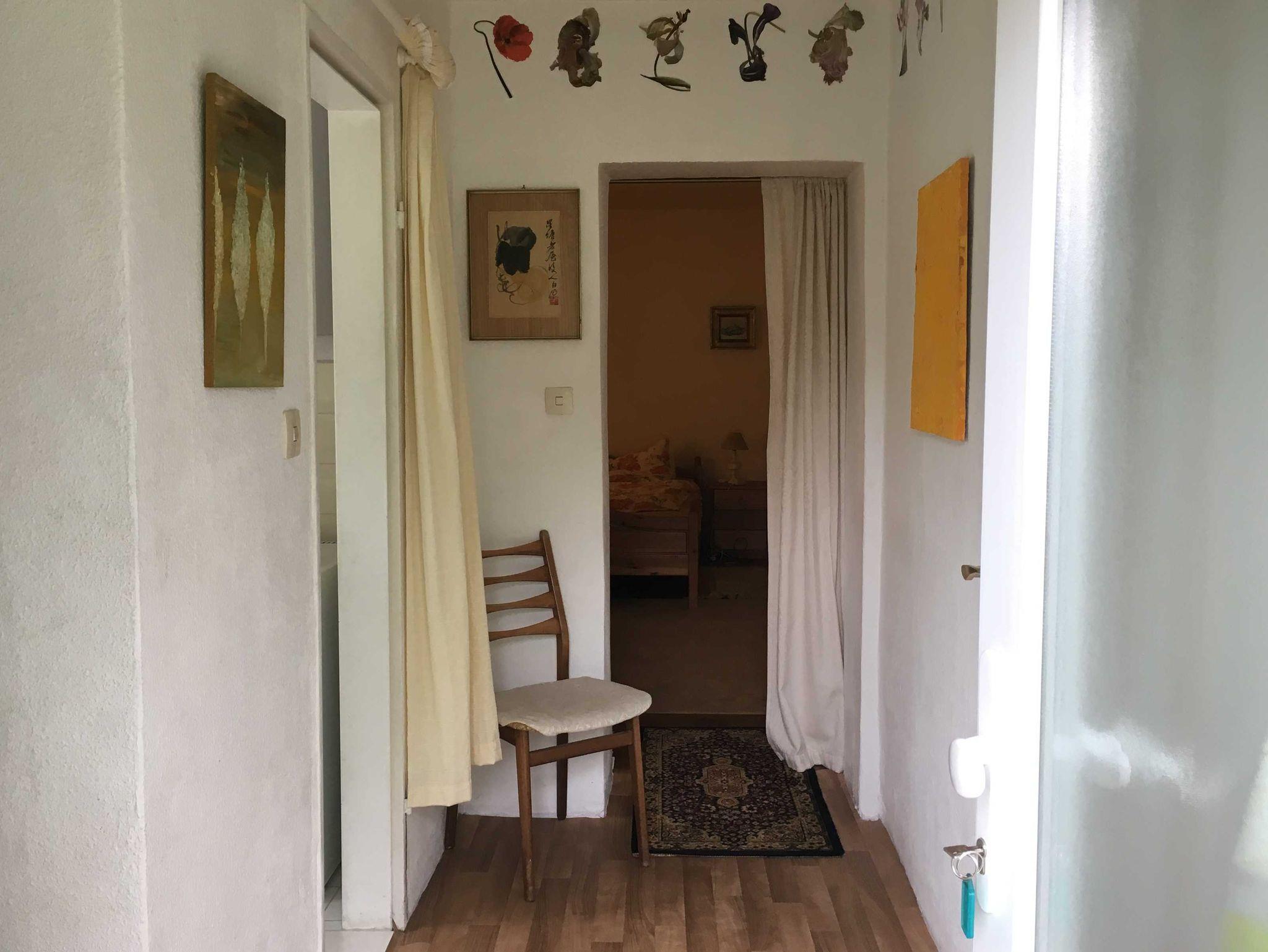 Das Appartement Nummer 2 ist für 2 Personen und befindet sich im Erdgeschoss. Ein kombinierter Wohn-/Schlafraum, ein Duschbad, eine kleine Küche und Gartenmöbel stehen zur Nutzung bereit.
