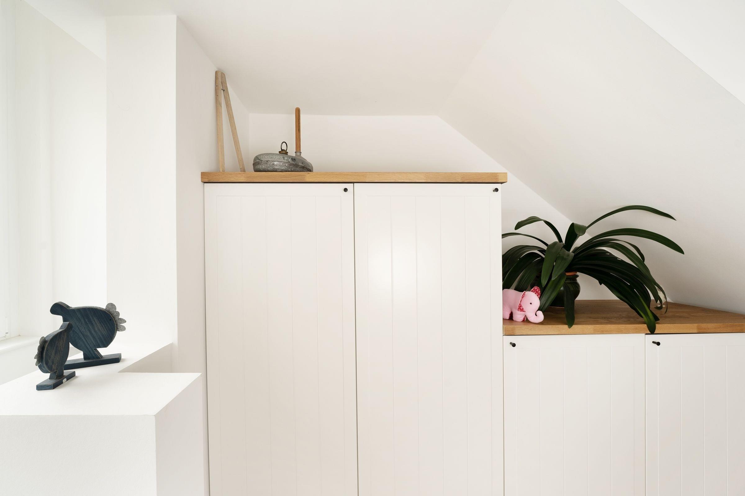 Schlafzimmer: 1 Doppelbett (2x 90x200 cm), Kleiderschrank, Rollo und Plissees, Platz für Babybett