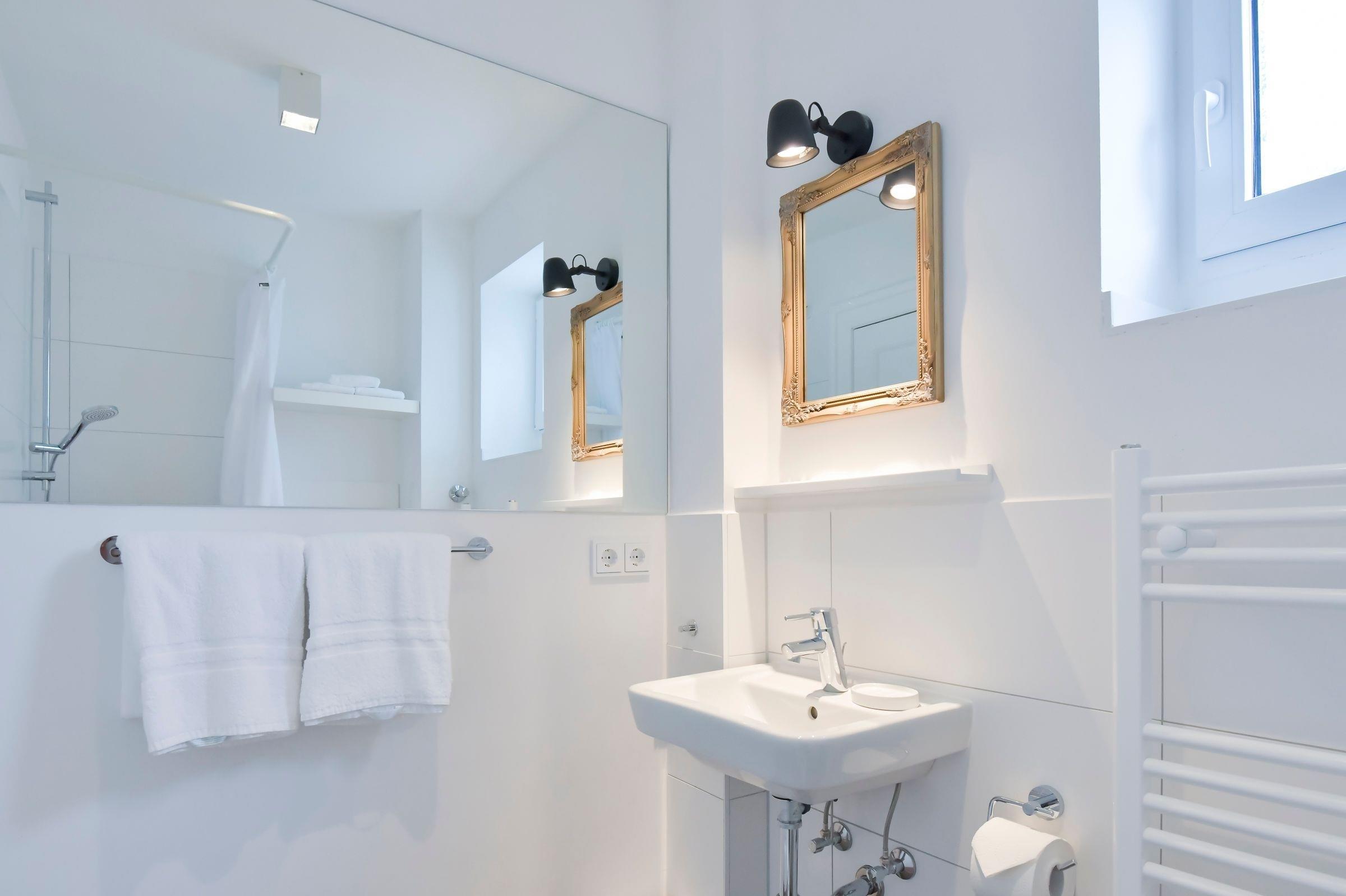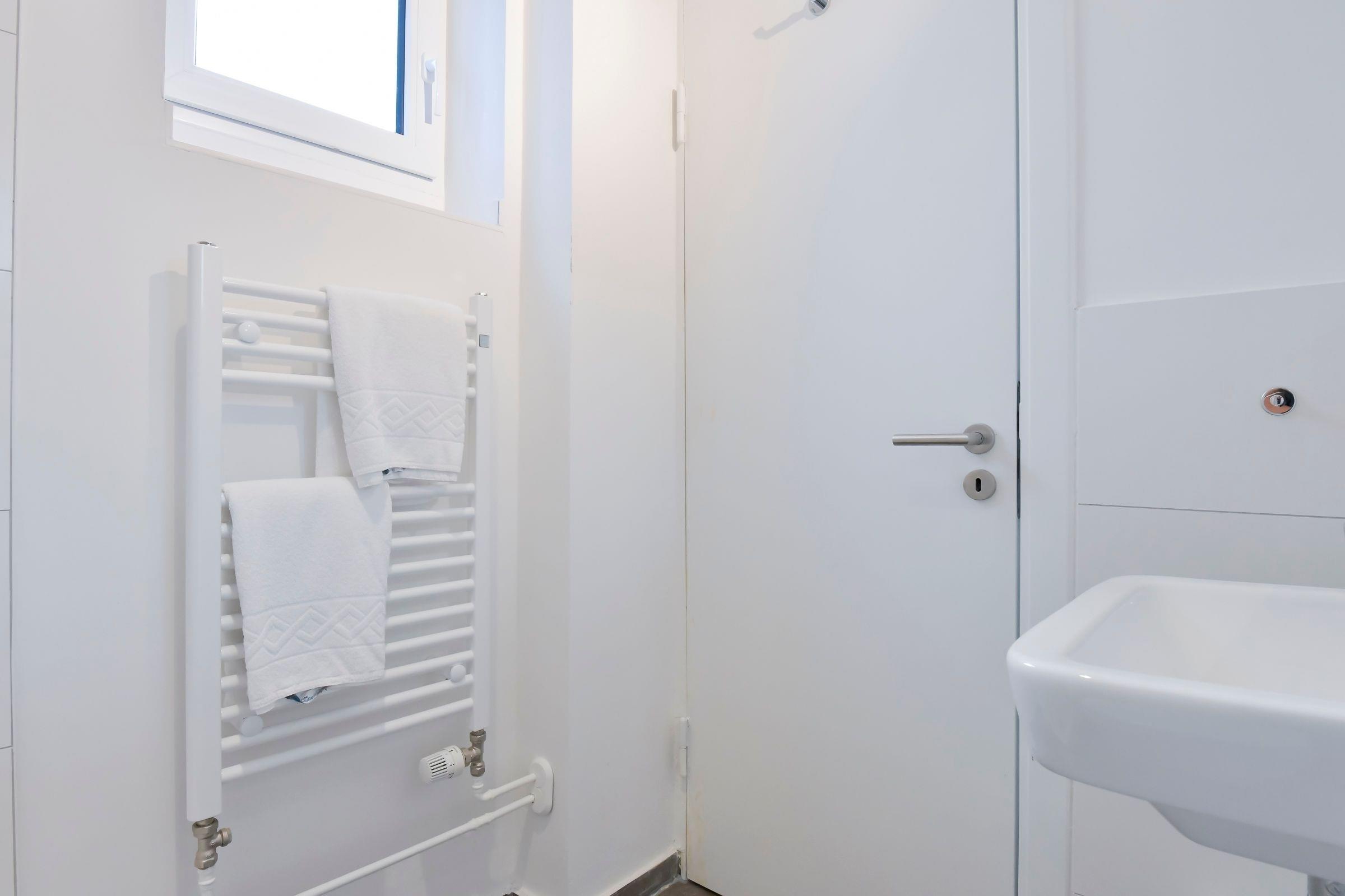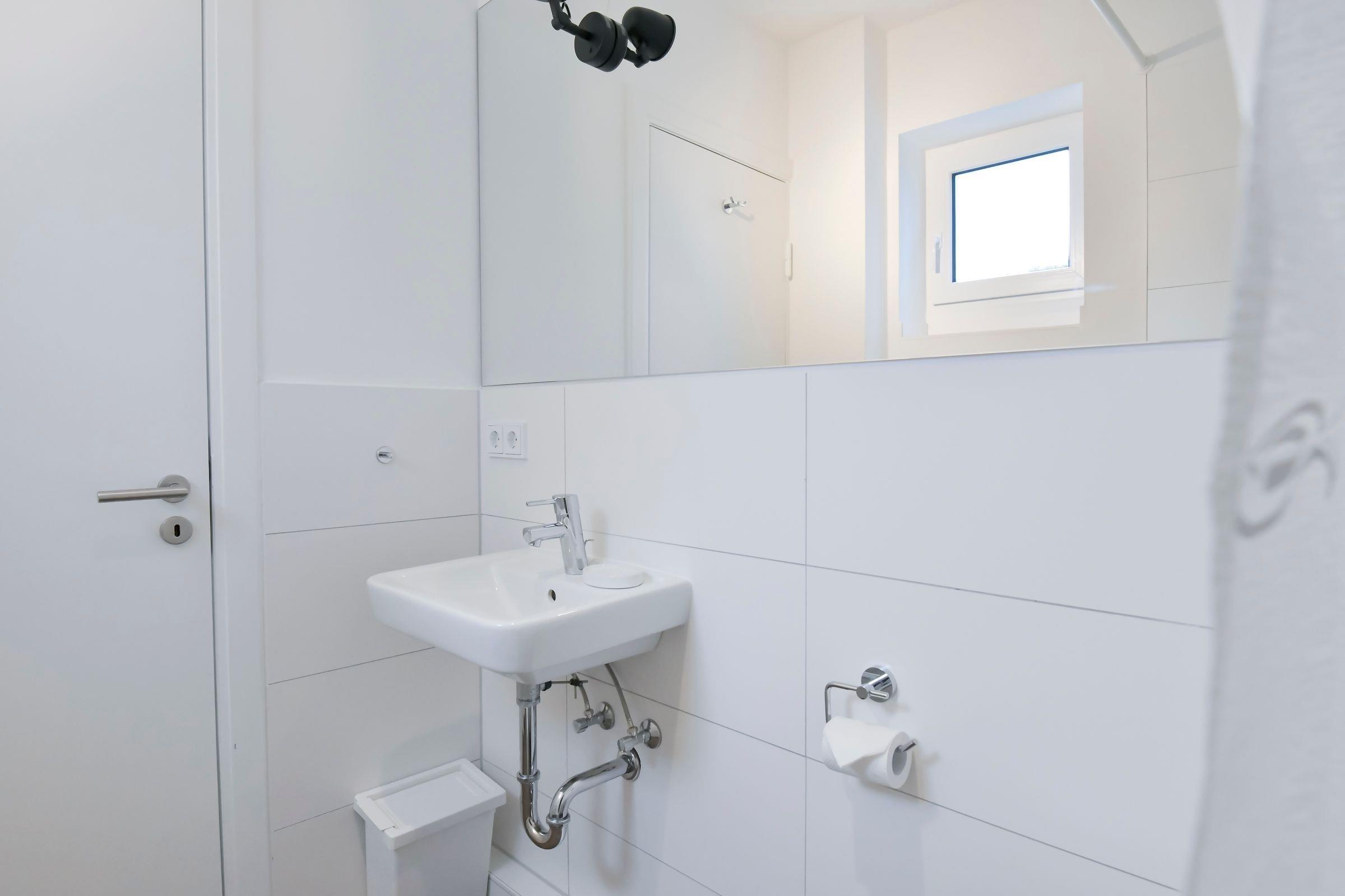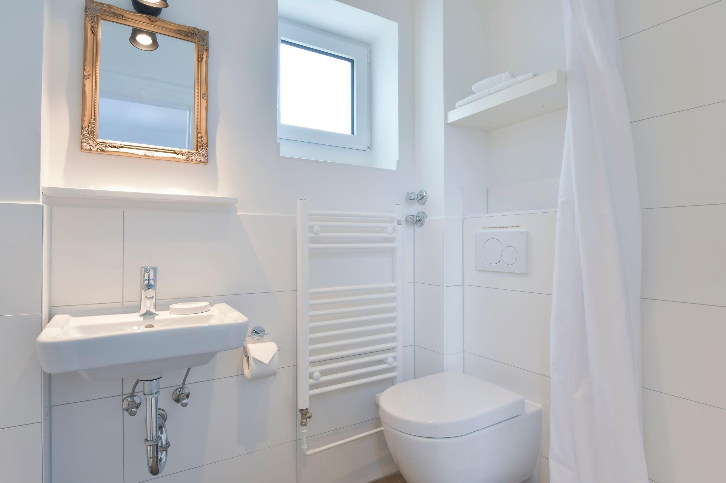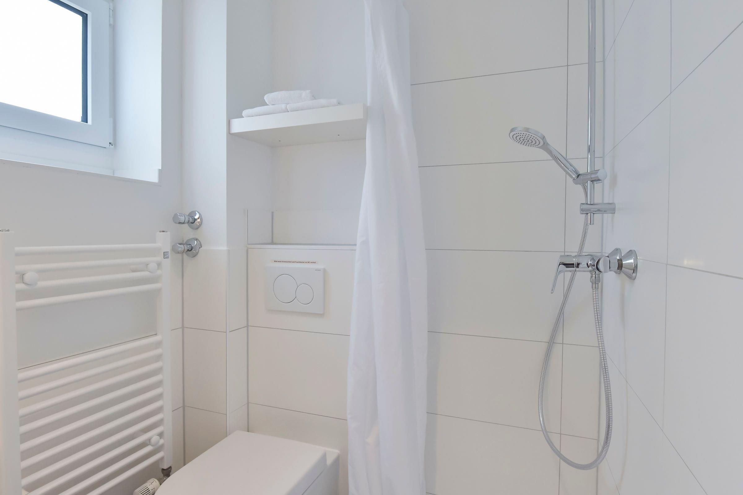 Auch das zweite Schlafzimmer ist mit einem bequemen Doppelbett (2 x 90x200 cm), Kleiderschrank und Flatscreen-TV ausgestattet, für Verdunkelung ist durch ein Black-out-Rollo gesorgt. Ein schönes Highlight ist das tageslichthelle Bad en Suite mit Dusche, Hänge-WC und Handtuchheizung.
