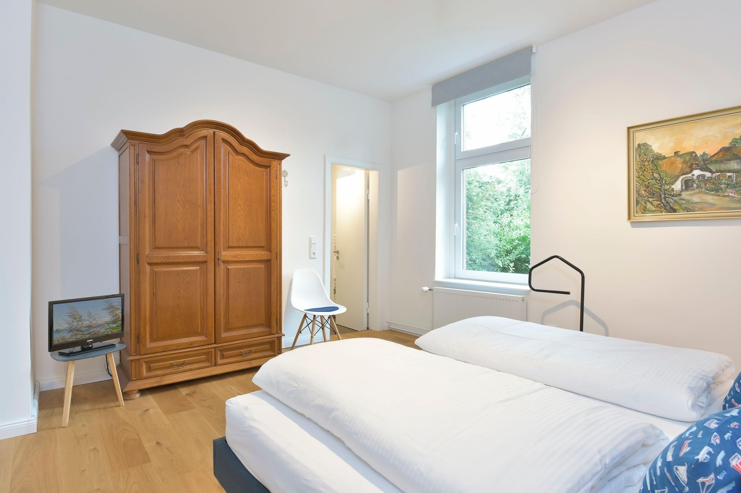 Schlafzimmer 2: 1 Doppelbett (2 x 90x200 cm), Kleiderschrank, TV, Verdunkelung (Black-out-Rollo).