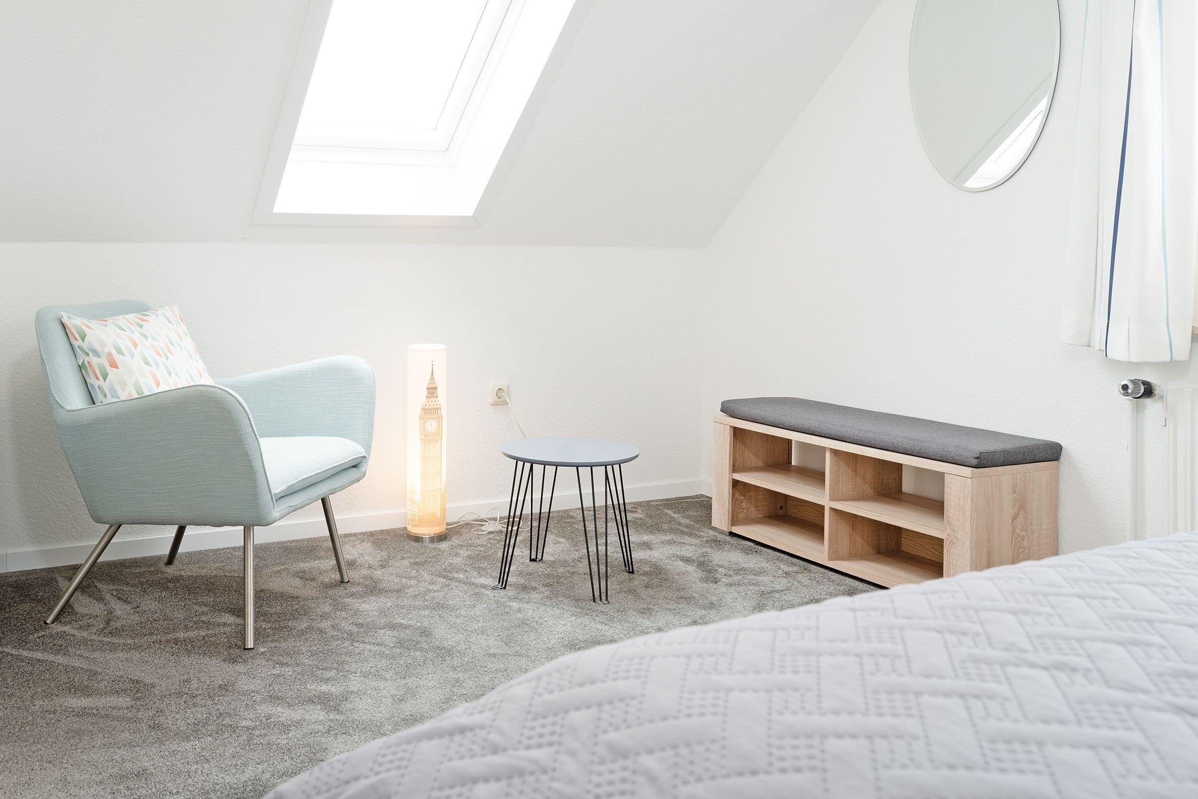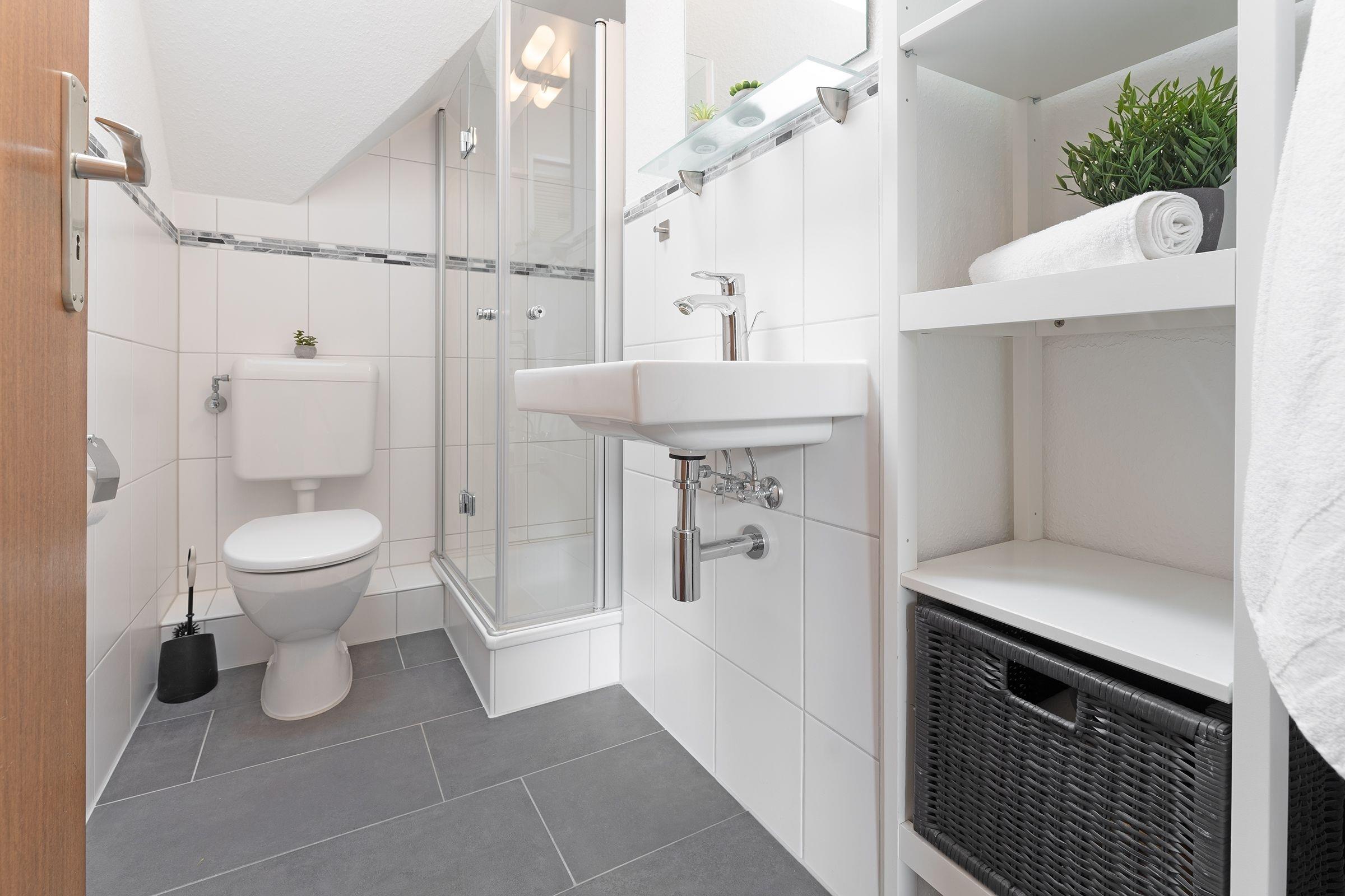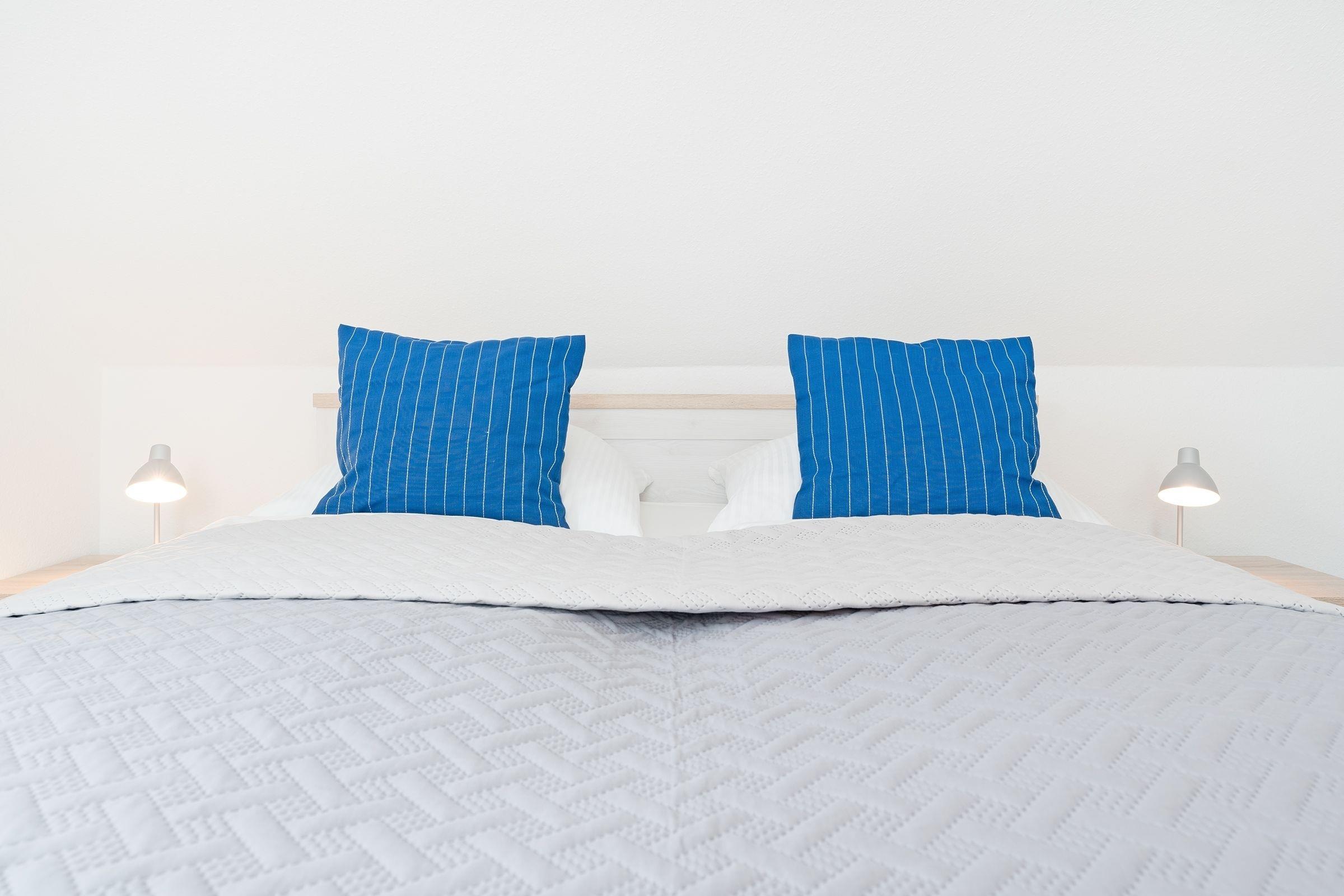 Der helle Wohnbereich wartet mit einer gemütlichen Couch, einem Smart-TV und einem zusätzlichen Bett (ca. 90x200cm) auf. Von hier aus gelangen Sie auch auf den 3,4 m² großen, möblierten Südbalkon, auf dem Sie zahlreiche Sonnenstunden genießen können. In der separaten kleinen Küche finden alles, was Sie für das Zubereiten Ihrer Mahlzeiten benötigen, die Sie anschließend im angrenzenden Esszimmer gemeinsam einnehmen können. Das Schlafzimmer ist mit einem Doppelbett (2x 90x200 cm) und einem Kleiderschrank ausgestattet. Frisch ausgeruht können Sie dann im Tageslicht-Duschbad in den neuen Urlaubstag starten.