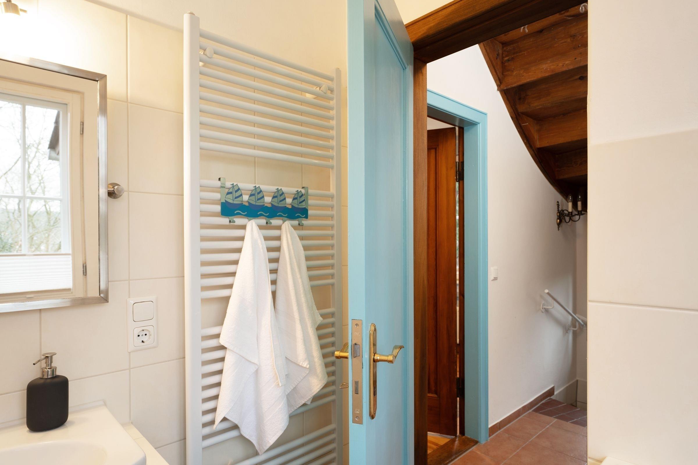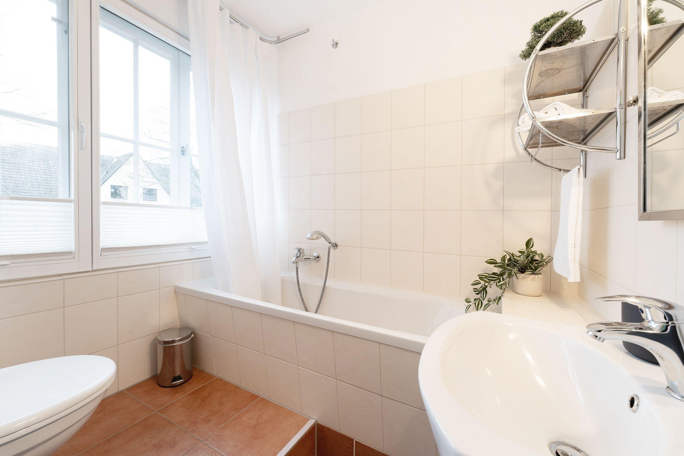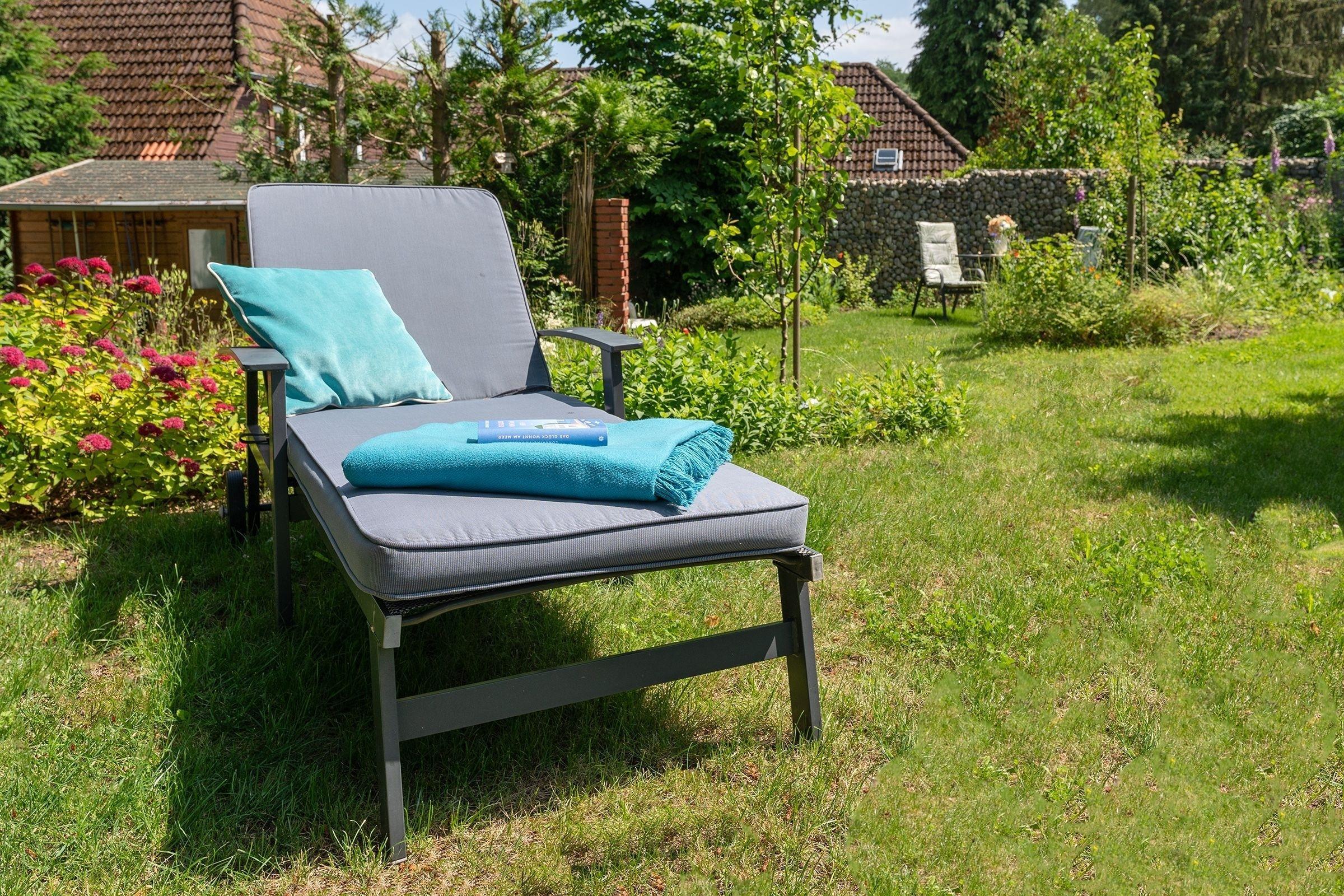 Es empfängt Sie ein gemütlicher Wohnbereich, in dem Sie Ihre Urlaubstage auf den bequemen Sofas vor dem TV-Gerät ausklingen lassen können. Von hier gelangen Sie auch in den großzügigen Garten zur Eigennutzung. Erholen Sie sich auf der Sonnenliege bei einem guten Buch oder lassen Sie einfach Ihre Seele baumeln. Planen Sie ausgiebige Grillabende? Die Terrasse mit Süd-Ausrichtung bietet hierfür jede Möglichkeit und garantiert Ihnen viele sonnige Stunden im Freien. Bereiten Sie sich leckere Speisen in der separaten Küche, die über eine gute Grundausstattung verfügt. Der schöne Essraum bietet viel Platz für gesellige Abende. Verbringen Sie nach einem ereignisreichen Urlaubstag erholsame Stunden im bequemen Doppelbett (2x 80x200 cm). Die übrigen Urlaubsgäste finden Ihre Nachtruhe in einem weiteren Schlafzimmer mit Doppelbett (160x200 cm). Abgerundet wird dieses Feriendomizil durch ein schönes Badezimmer, das mit beheizbarem Handtuchhalter für einen kuscheligen Start in den neuen Tag sorgt, sowie einem Gäste-WC im Obergeschoss.