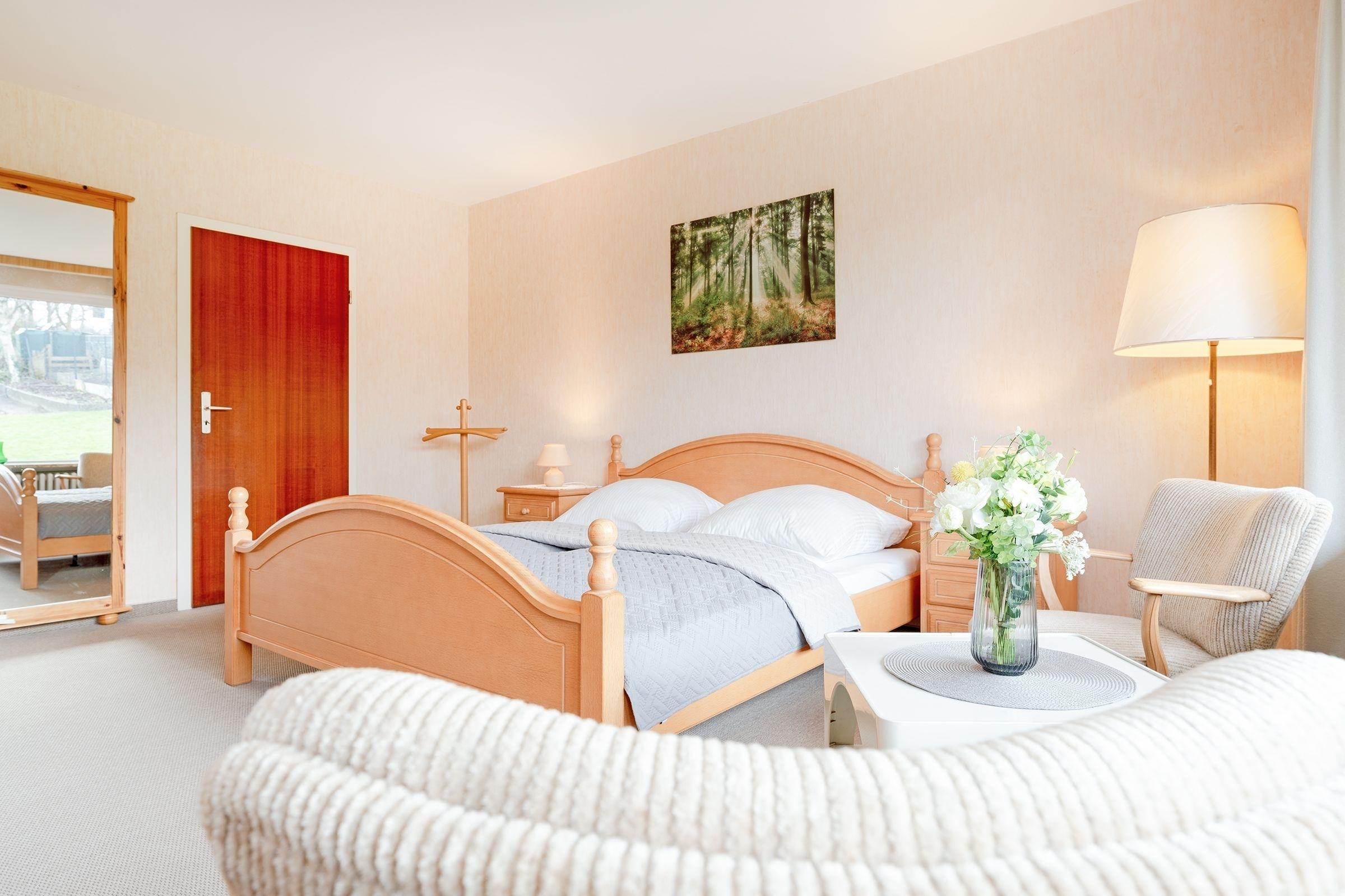 Wohnzimmer: Doppelbett (2x 90 x 200 cm), Kleiderschrank, Verdunkelung: Rollos, Platz für Babybett