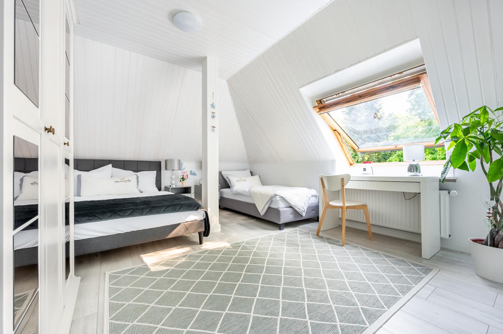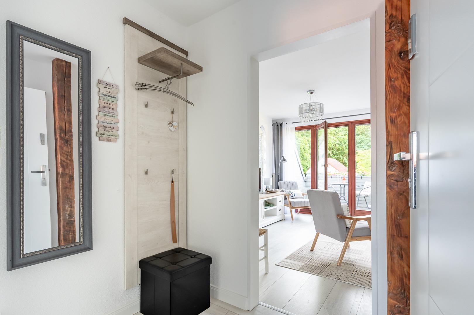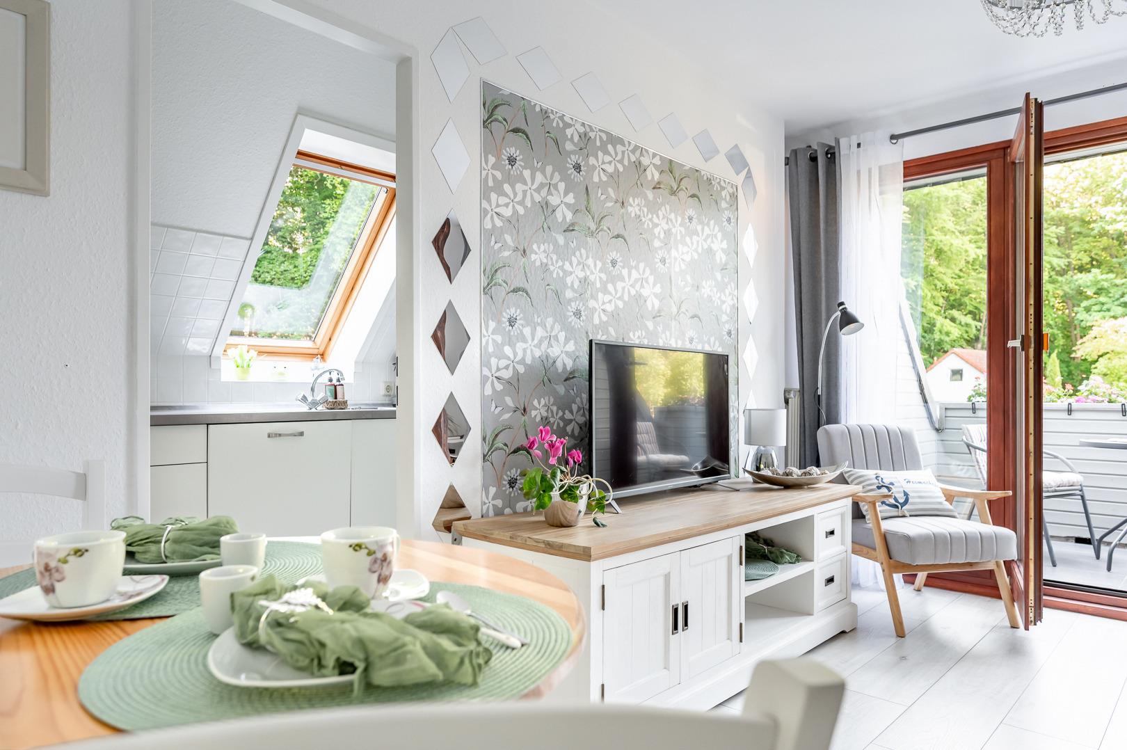 Die lichtdurchflutete und modern ausgestattete Ferienwohnung "Kalina", mit viel Liebe zum Detail eingerichtet bietet auf 53 m² für ein bis vier Gäste Komfort und Gemütlichkeit. Hier können Sie die Seele baumeln lassen. Die stillvolle und modern eingerichtete Ferienwohnung ist ruhig gelegen und bietet damit Erholung pur! Das Highlight ist das gemütliche, helle Wohnzimmer mit Südbalkon, von welchem Sie einen Blick auf herrlich erholsamen Wald genießen können. Im Wohnraum steht ein Smart-TV zur Verfügung und das WLAN ist für Sie inklusive, div. Bücher und Spiele ebenso. Die Küche ist vom angrenzenden Essplatz schnell erreicht. Die Küche ist vollständig ausgestattet und beinhaltet unter anderem zusätzlich auch Espresso Kaffeemaschine, Geschirrspülmaschine, Waschmaschine, Abstellraum und ist damit die Ferienwohnung auch für längere Zeiträume geeignet. Ein großes Schlafzimmer mit einem bequemen Doppelbett (1,60er Breite) und einem zweiten zusätzlichen Bett( 90er Breite), gibt die Möglichkeit zum erholsamen Schlaf. Der Schrank im Schlafzimmer bietet reichlich Stauraum . Das Badezimmer mit Fenster und der großen Dusche, Handtuchtrockner, Föhn und WC rundet diese stylische Ferienwohnung ab. Abstellmöglichkeit für Fahrräder in einer Garage ist vorhanden.