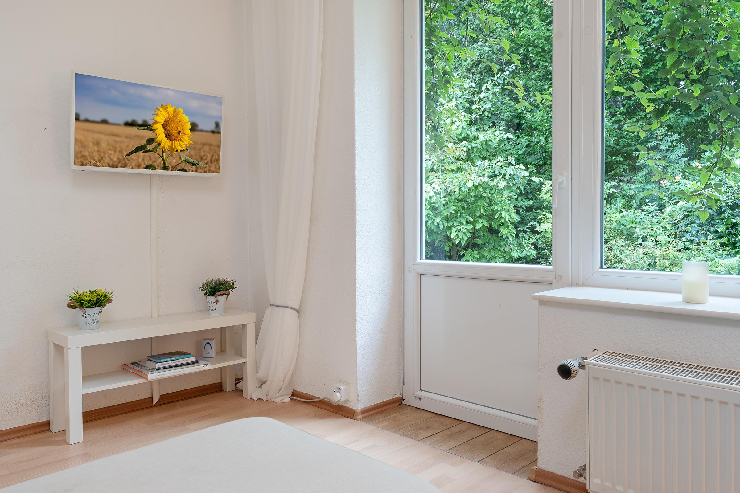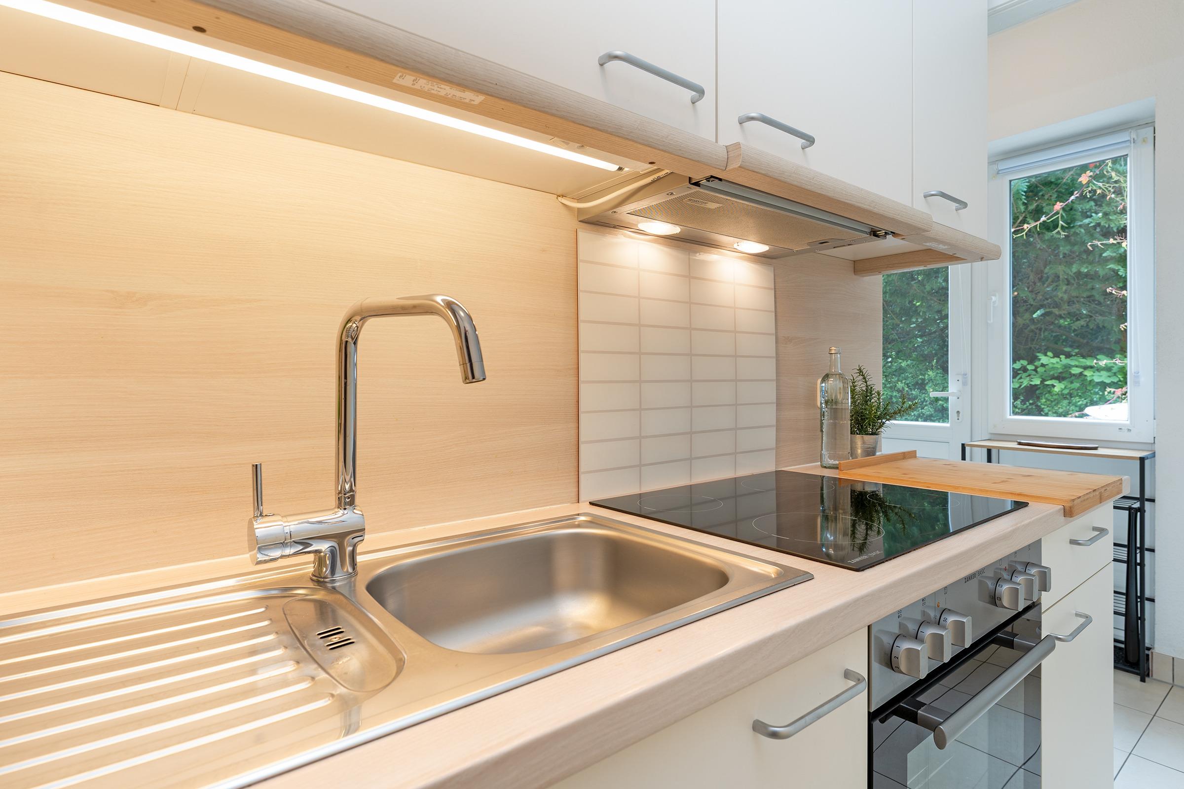 Diese liebevoll eingerichtete Erdgeschosswohnung empfängt Sie mit einem hellen Wohnbereich, der zum Entspannen einlädt. Ausgestattet mit einem gemütlichen Sofa, Flachbild-TV und Radio, bietet er alles für entspannte Stunden. Vom Wohnraum gelangen Sie direkt in den idyllischen Garten, ausgestattet mit Gartenmöbeln und Elektrogrill – ein herrlicher Ort für entspannte Abende im Grünen. Die offene Küche lässt mit Cerankochfeld, Backofen, Kaffeemaschine, Toaster, Wasserkocher, Eierkocher und Kühlschrank mit Gefrierfach keine Wünsche offen. Der angrenzende Essbereich eignet sich ideal für gemeinsame Mahlzeiten. Im Schlafzimmer erwartet Sie ein komfortables Doppelbett und ein geräumiger Kleiderschrank. Das Badezimmer verfügt über eine moderne Dusche sowie ein WC.