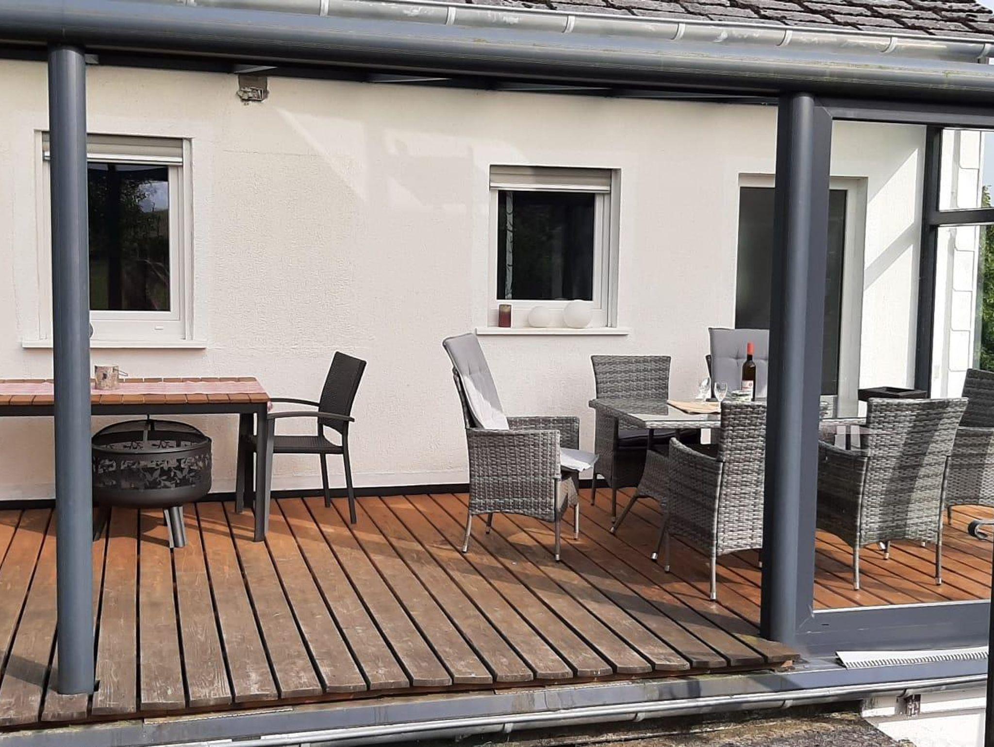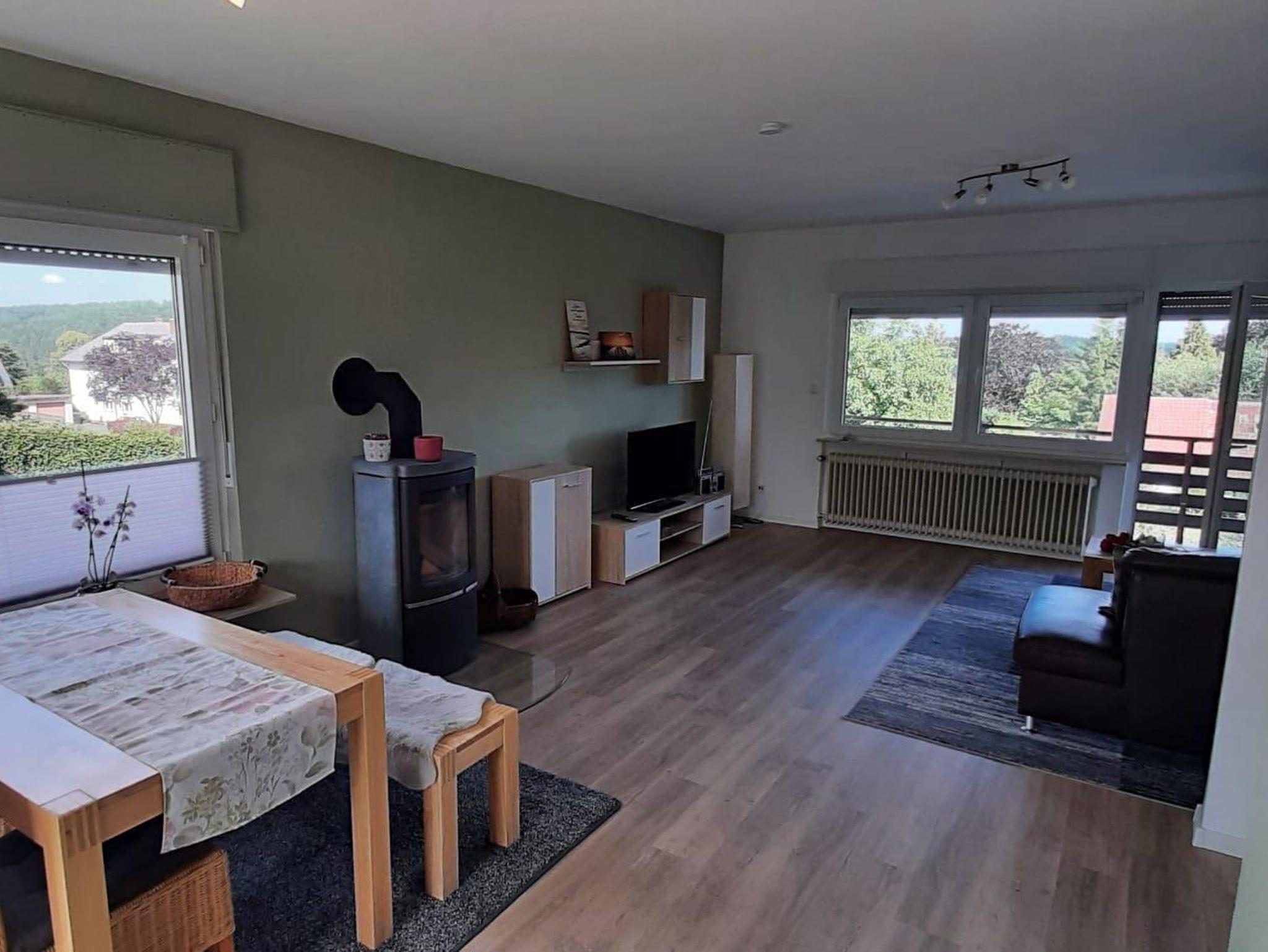 Schöne, renovierte 70 qm große Nichtraucher-Ferienwohnung am Ortsrand von Manderscheid. Sie bietet großzügigen Platz für 2 Personen. Morgens vom Balkon den Sonnenaufgang und abends von der überdachten Terrasse den Sonnenuntergang genießen.