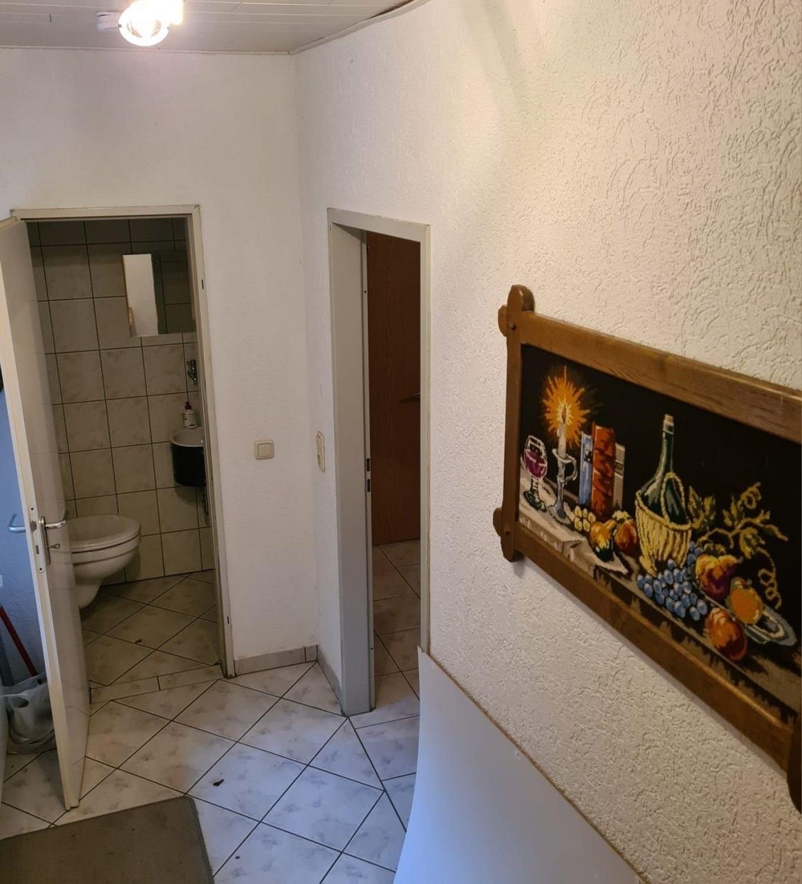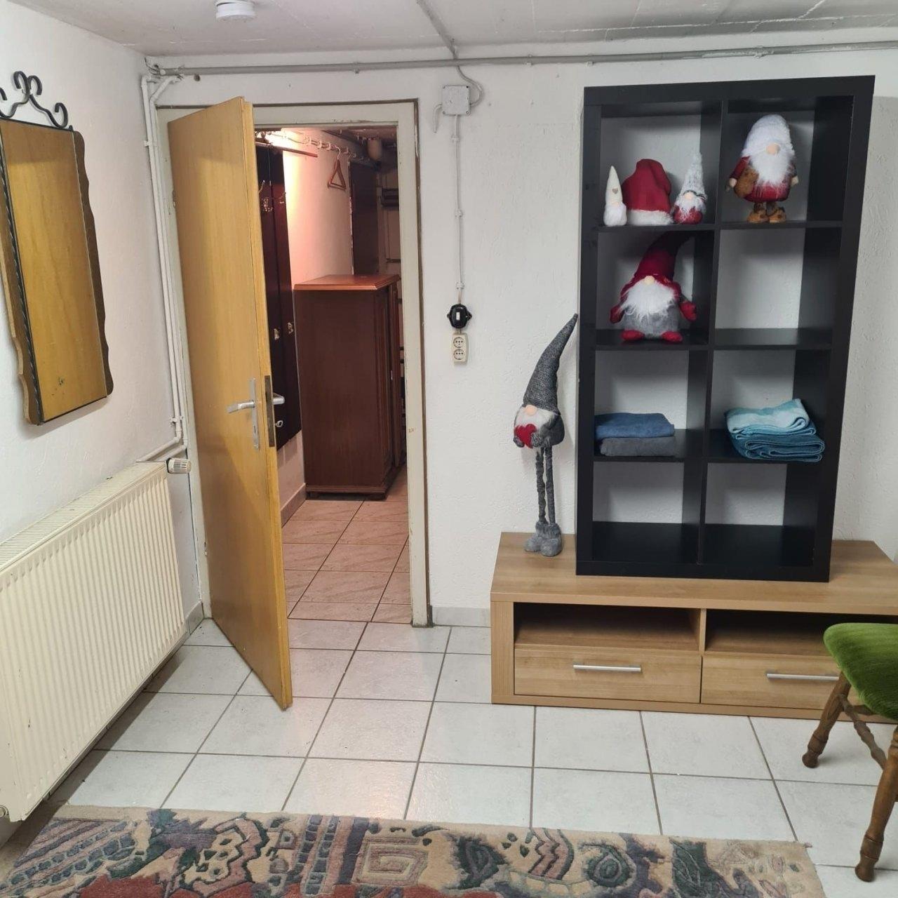 Die Doppelhaushälfte steht komplett oberirisch. Daher ist die Wohnung über 10 Stufen von der Strassenebene zu erreichen. Die Wohnung selbst ist ebenerdig ohne Stufen und besteht aus Schlafzimmer Bad, Küche mit Essbereich und geräumigem Wohnzimmer mit Fernseher und WLAN.