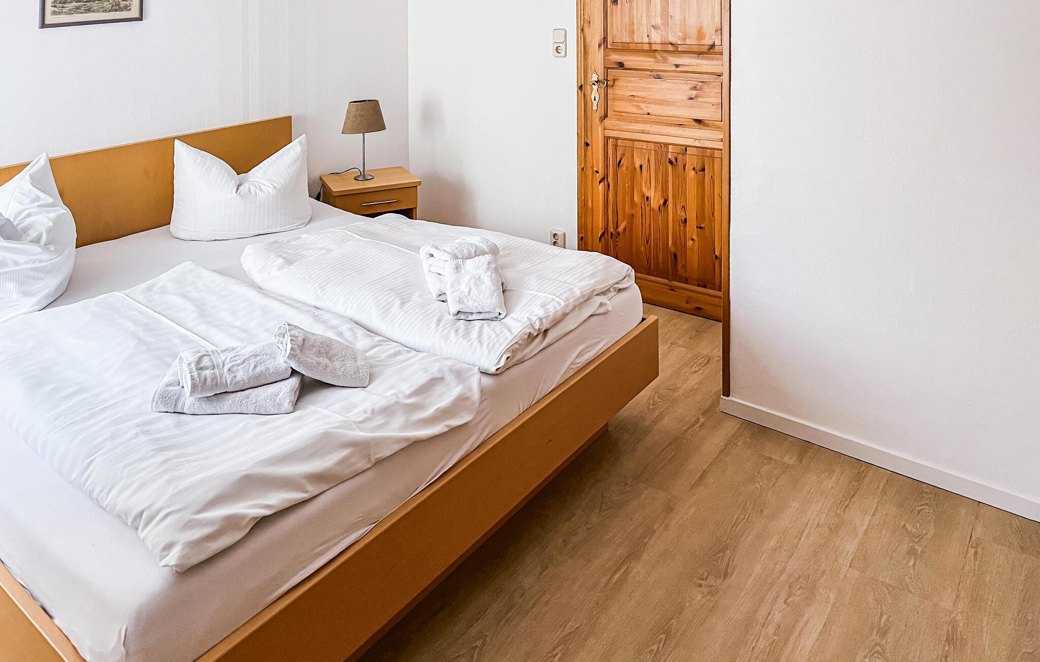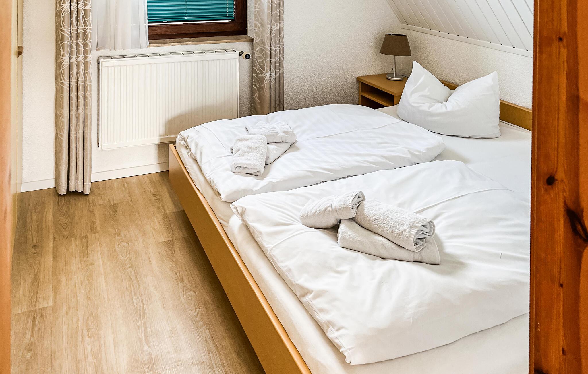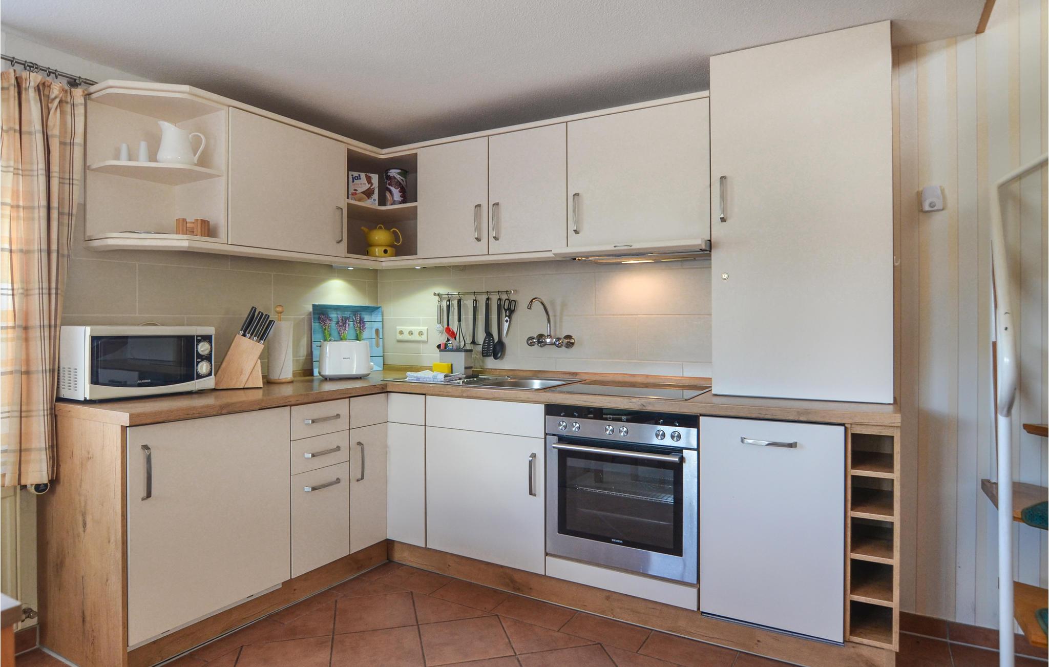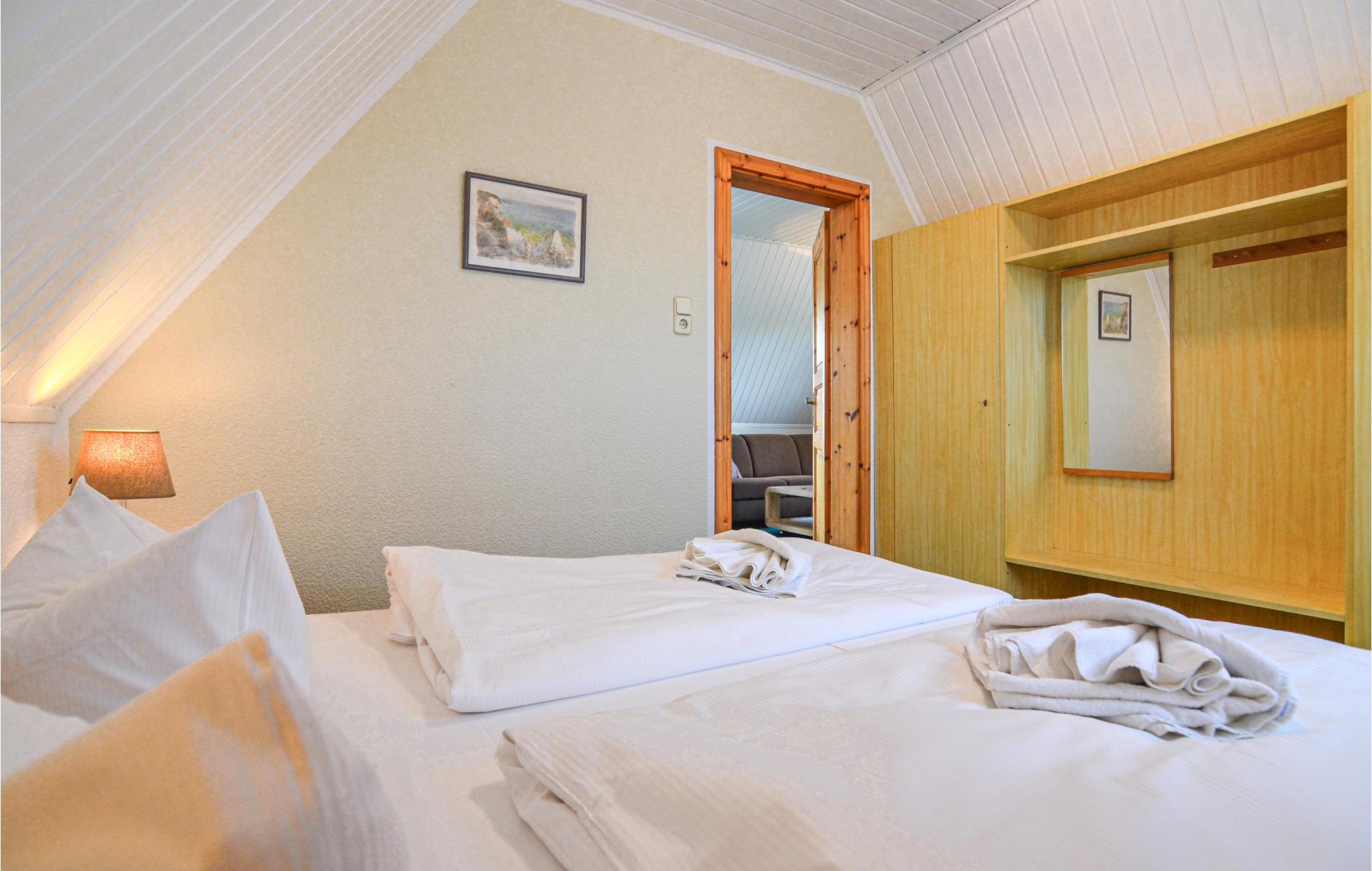 Dette dejlige feriehus med plads til fire personer ligger i centrum af Mönchgut-halvøen, kun 350 meter fra Hagensche Wiek, som adskiller Greifswalder Bodden fra Østersøen. Et fuldt udstyret køkken venter i stueetagen af ??dette hus, der er indrettet med en hyggelig spiseplads, et smukt soveværelse med dobbeltseng og to badeværelser, begge med bruseniche. En trappe fører til øverste etage, som har yderligere et soveværelse med dobbeltseng samt en smagfuld og behagelig opholdsstue.