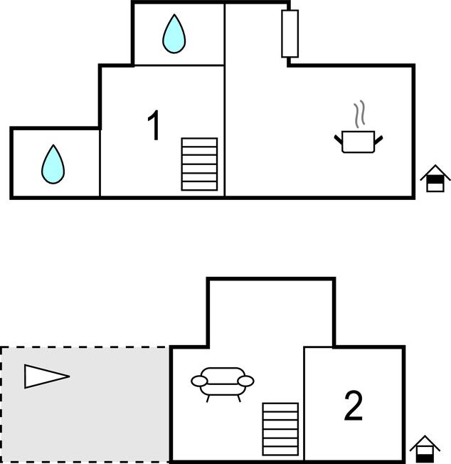 Herfra kommer I til terrassen, hvor I kan begynde dagen med en omfattende morgenmad eller afslutte aftenen med grillmad i haven. Der er opbevaringsplads til cykler i skuret. Arealet på den anden side af vejen er til fælles brug inklusive havemøbler og et strandkurvemøbel.