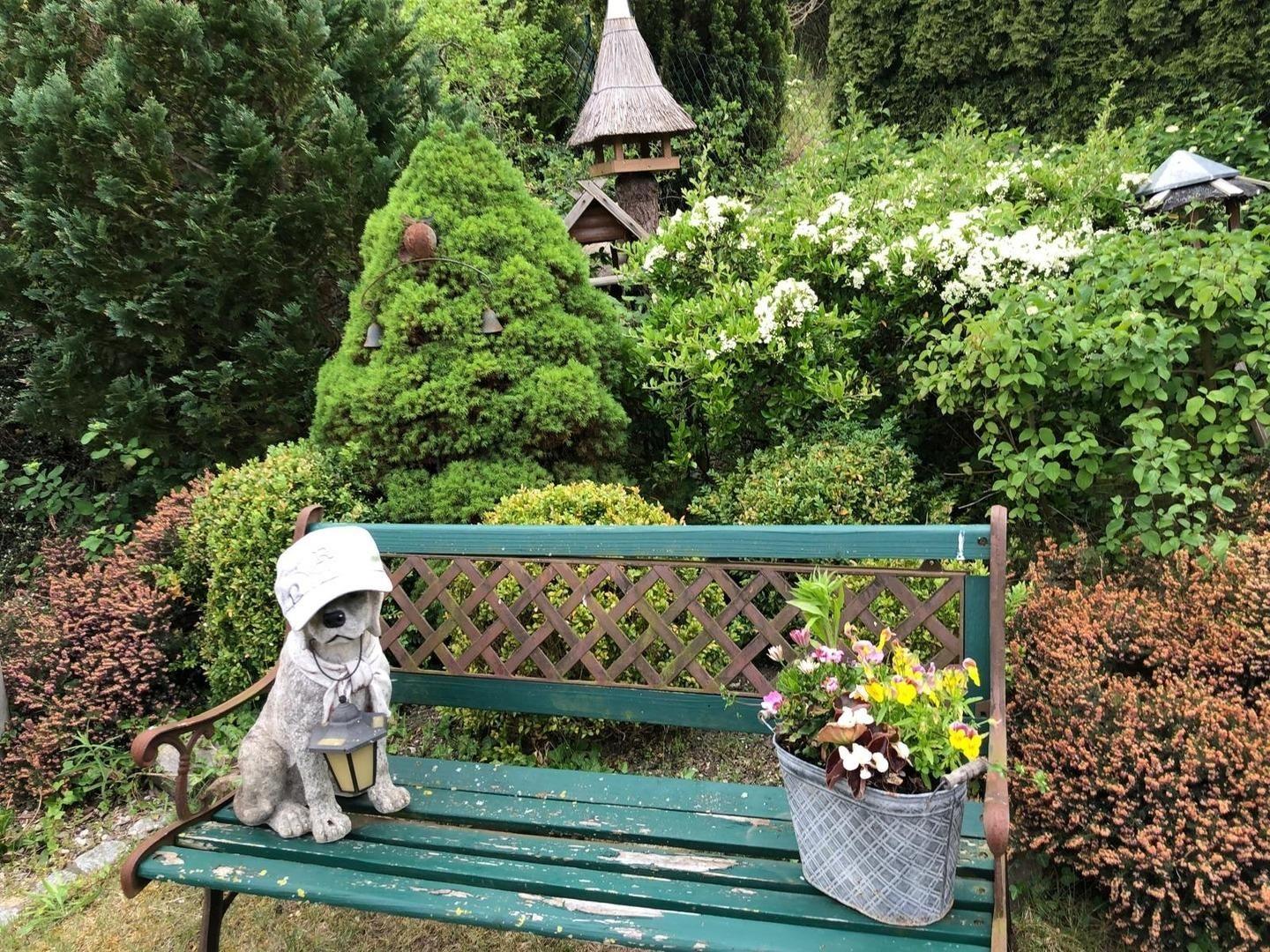 Zur Wohnung gehört der komplett einezäunte Garten mit einem Gartenhaus und traumhafter Aussicht.