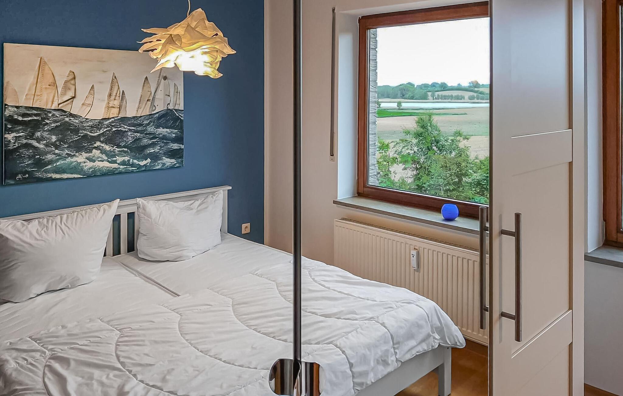 Enhver, der søger fred, natur og hav, vil føle sig hjemme i denne store, lyse og nænsomt indrettede ferielejlighed. Ferielejligheden Marina imponerer med en fantastisk udsigt over vandet på begge sider.