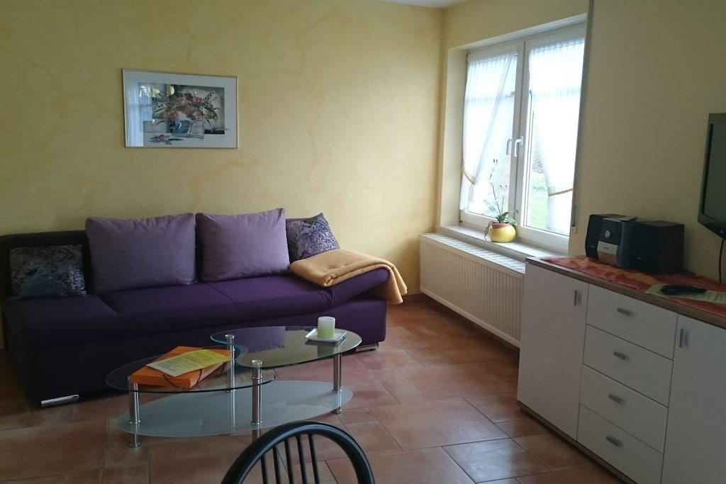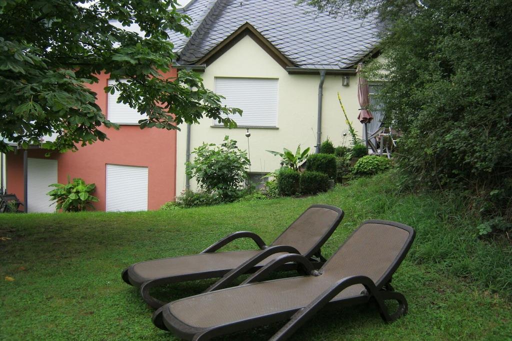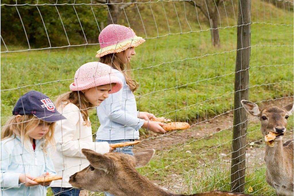 Schöne Ferien und gute Erholung zwischen Wiesen, Bäumen und Wein, in schönen Ferienwohnungen mit allem Komfort. Die ruhige Lage am Ende der Straße ohne Durchgangsverkehr garantiert Ihnen erholsamen Schlaf. Die exklusive Bauweise unseres Hauses lässt in allen Räumen die Sonne scheinen. Allergiker gerechte Wohnräume, komplett ausgestattete Blockküche, großzügiges Esszimmer, bequeme Couchgarnitur, Balkon oder Terrasse lassen den Urlaub bereits beim betreten der Wohnung beginnen. Genießen Sie bereits beim Frühstück auf der Terrasse die ersten Sonnenstrahlen, beobachten Sie Ihre Kinder wenn diese das letzte Brötchen an die Rehe am angrenzenden Damwildgehege verfüttern. Ihre Kinder erreichen Spielplatz, Spielwiese und Wildgehege direkt vom Ferienhaus. Unser Service für Sie:: Am Morgen bringen wir Ihnen frische Brötchen an die Wohnungstür. Weine, Sekt, Traubensaft, Liköre, Weintraubengelee, Balsamessig, Honig , alles halten wir im benachbarten, familieneigenen Weingut für Sie bereit.