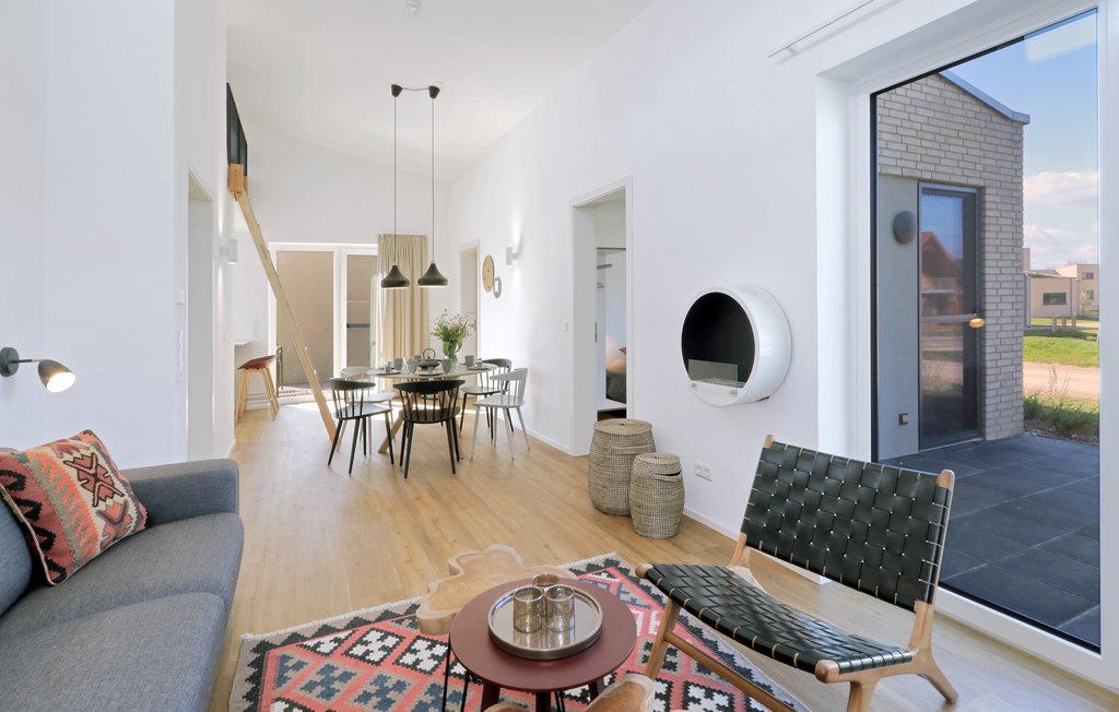 Velkommen til jeres feriehus, som tilbyder en børnefamilie eller en lille gruppe venner en hyggelig og hjemlig atmosfære med møbler i skandinavisk design. De to terrasser til at sidde og spise i solen, biopejsen og jeres egen sauna er med til at opfylde jeres ferieønsker. Det åbne køkken indbyder til madlavning og hygge. Der er et åbent soveværelse på galleriet.