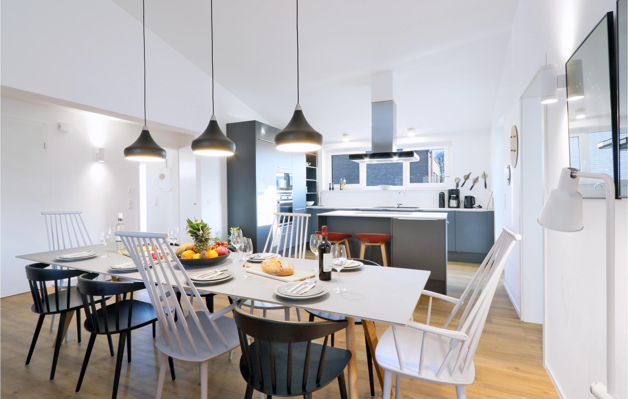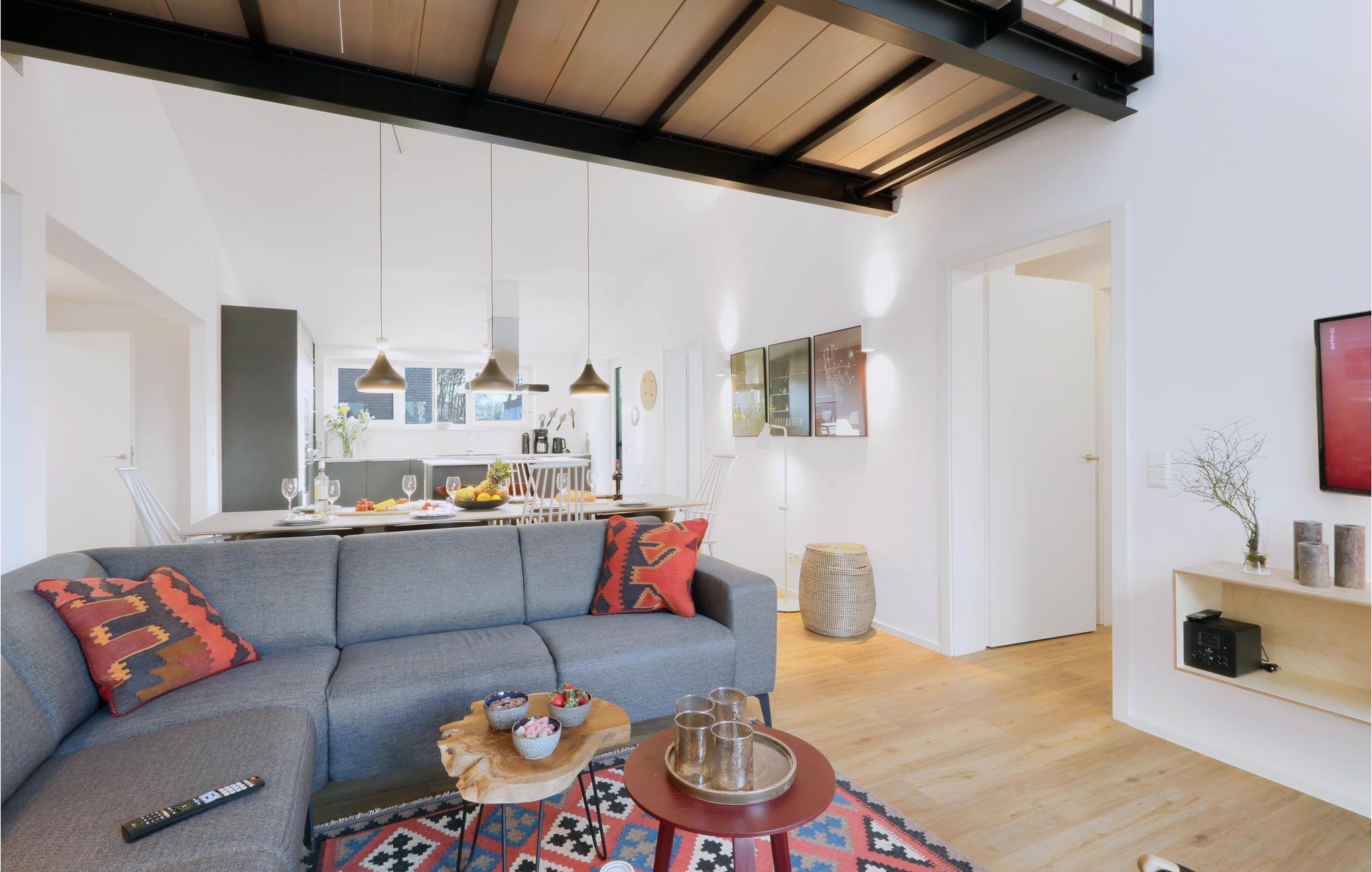 Velkommen til dette feriehus, der giver jer som børnefamilie eller som vennegruppe en hyggelig, hjemlig stemning i skandinavisk indretningsstil. Takket være sin egen indendørs pool og sauna svæver et strejf af luksus gennem dette hus, hvis opholds- og spiseområde på første sal byder velkommen takket være det åbne galleri med loftskarakter. Det åbne køkken lægger op til at lave mad og dvæle, mens I altid kan finde et solrigt sted på de to terrasser - op til 10 gæster vil altid finde nok privatliv her, takket være 5 soveværelser og 4 badeværelser. Indretningen bærer præg af skandinavisk design og giver jer gode rammer til at nyde ferien.